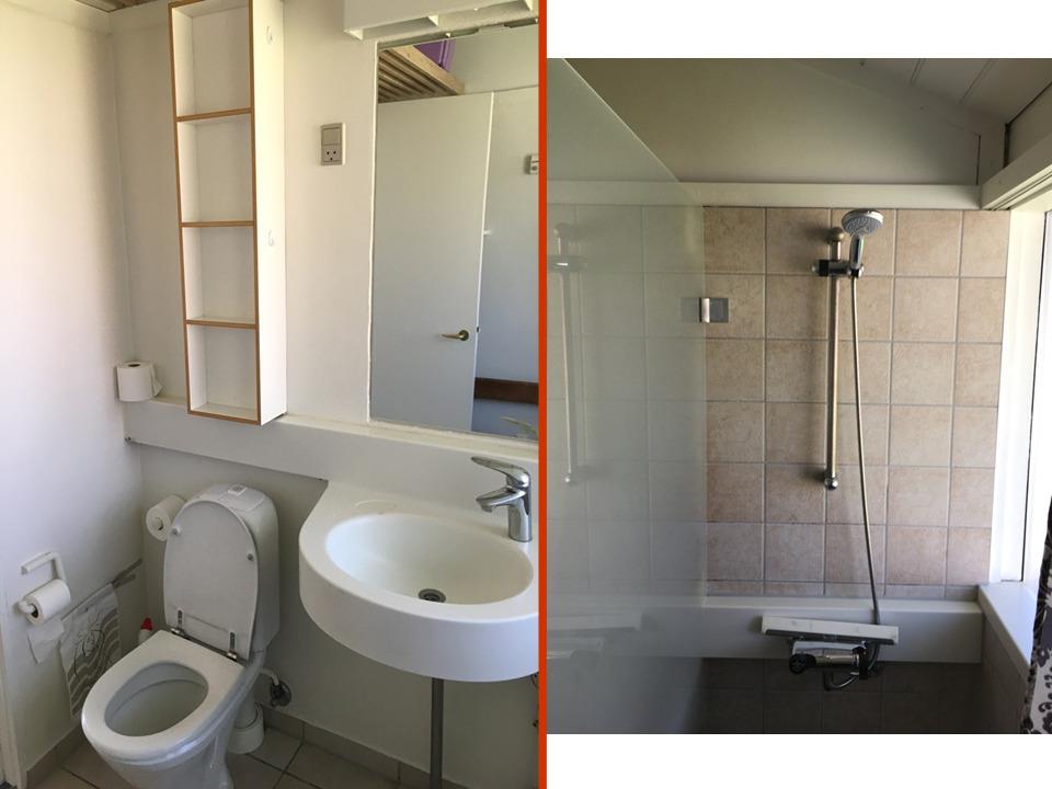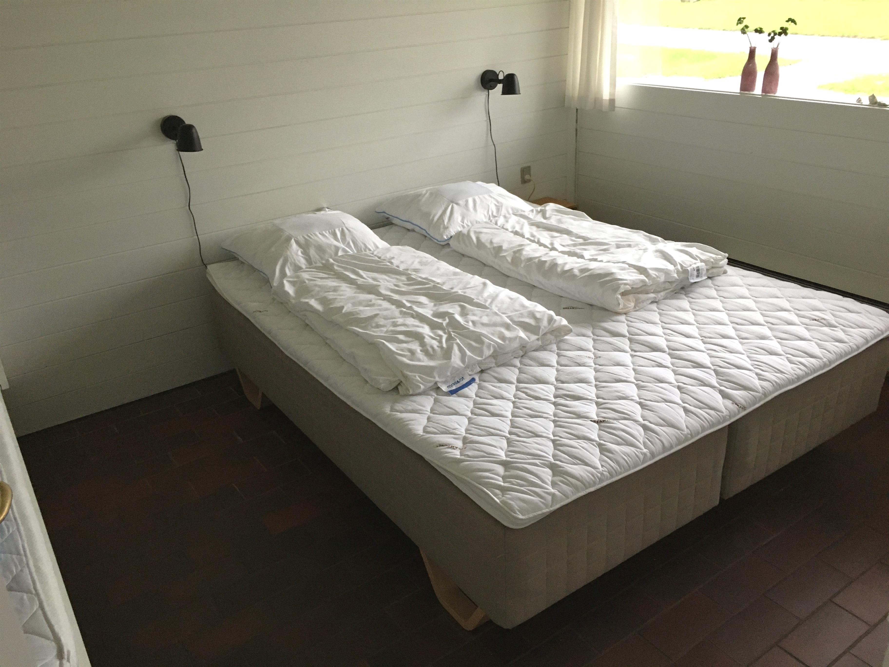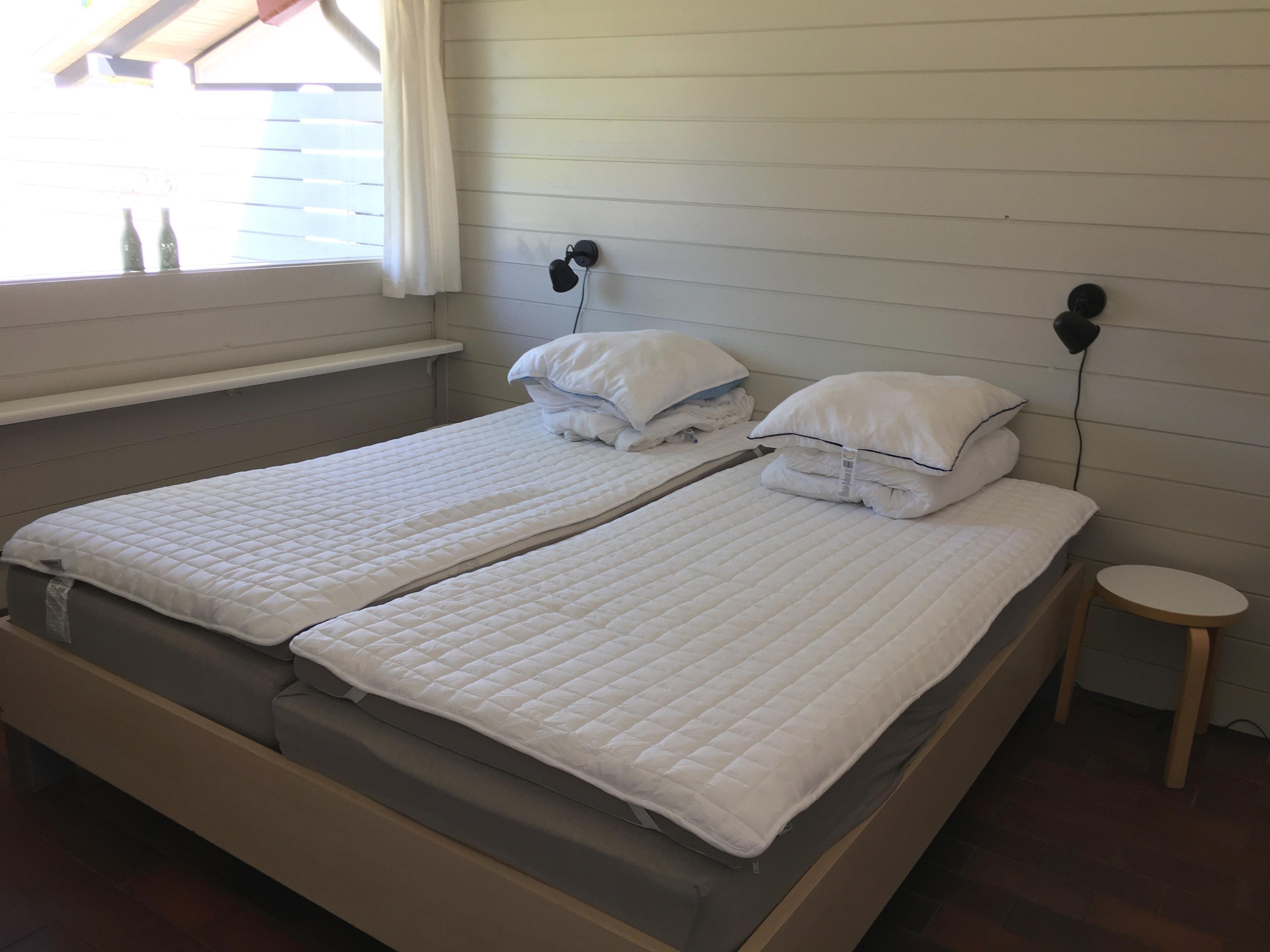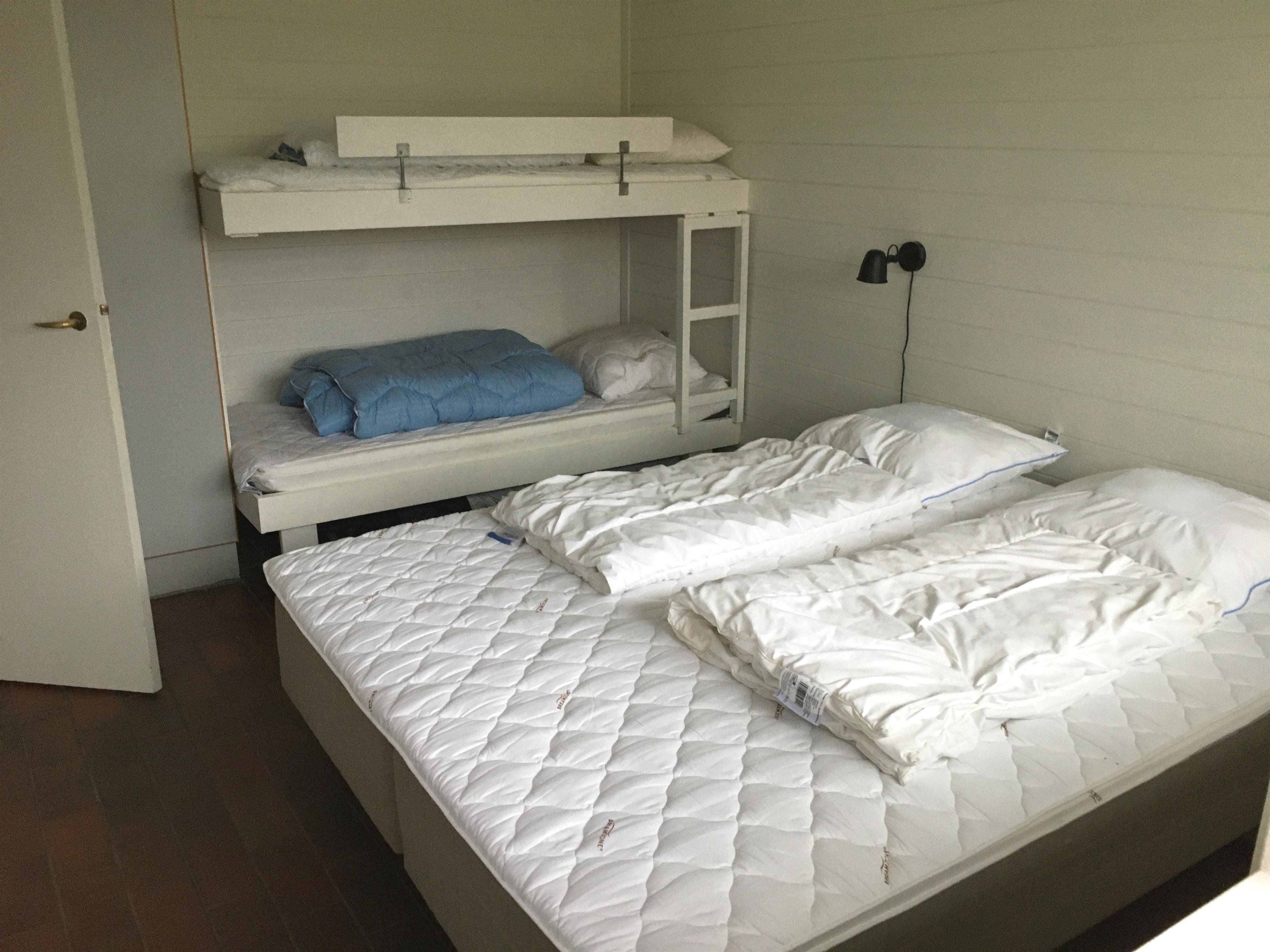 Insgesamt verfügt das Ferienhaus über sechs Schläfplätze verteilt auf Zimmer mit Doppelbett und Zimmer mit vier Betten, davon ein Doppelbett und ein Etagenbett. Eine Leiter im Wohnzimmer führt zum gemütlichen Loft, das bei Kindern sehr beliebt ist. Das Badezimmer in hellen Farben ist mit Dusche ausgestattet.