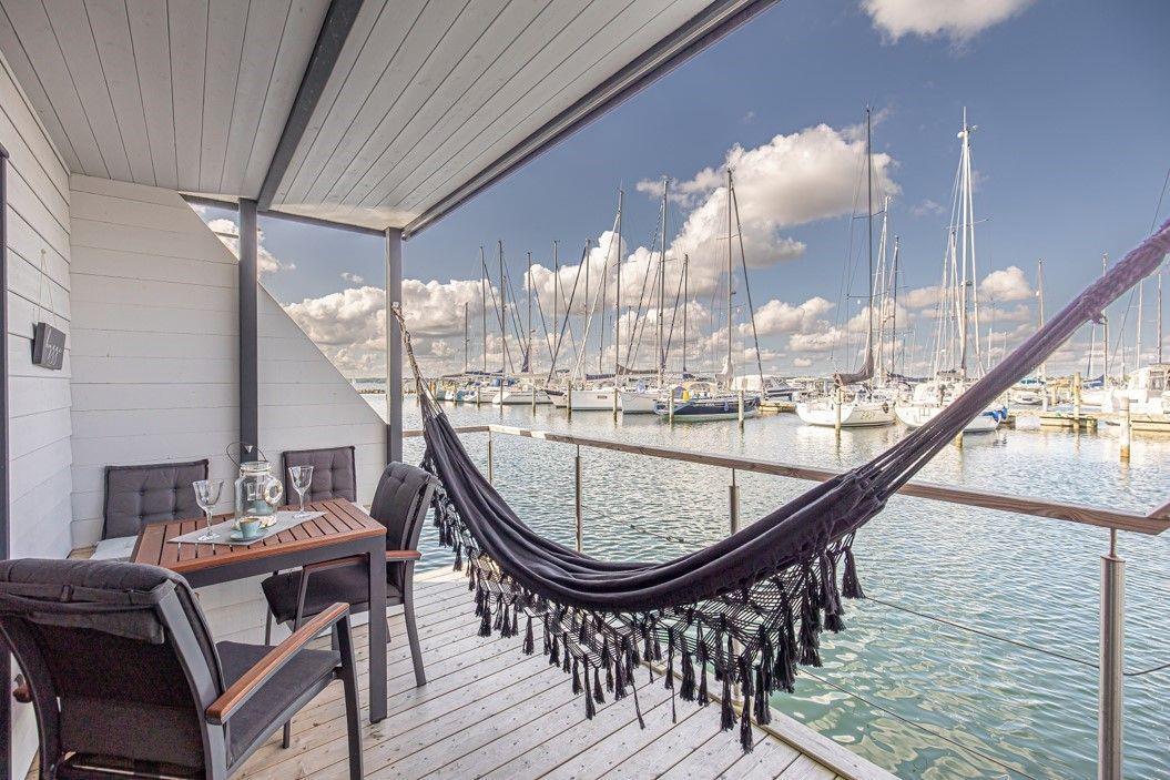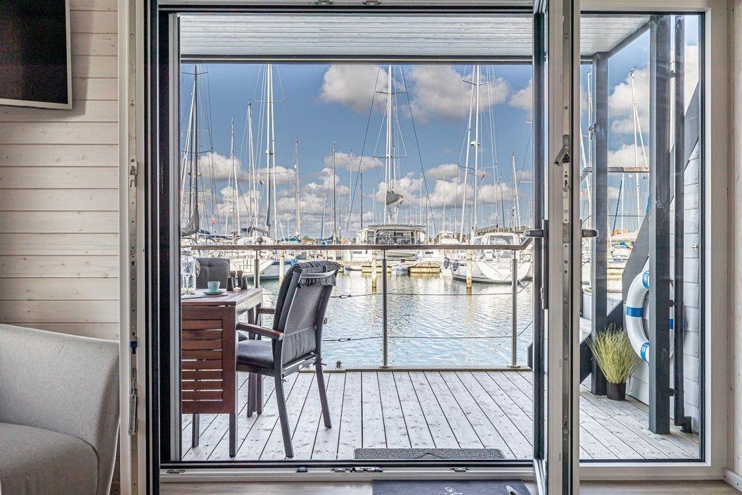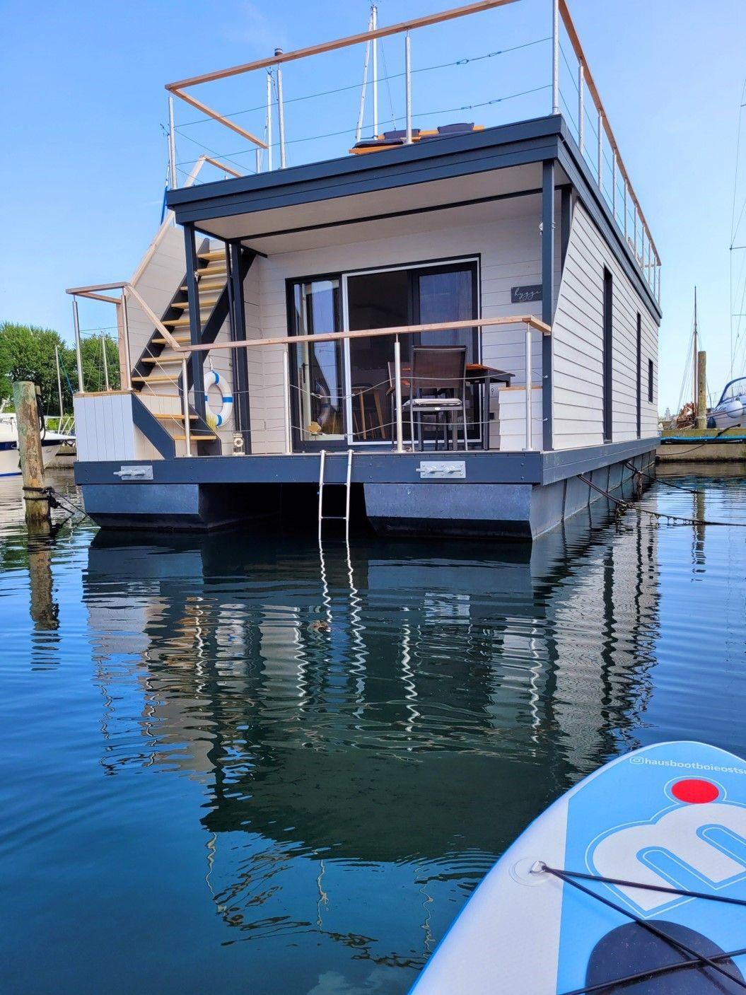 Maritimes Hausboot mit Ostseeblick an der Förde