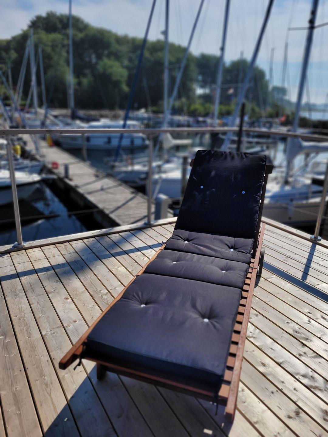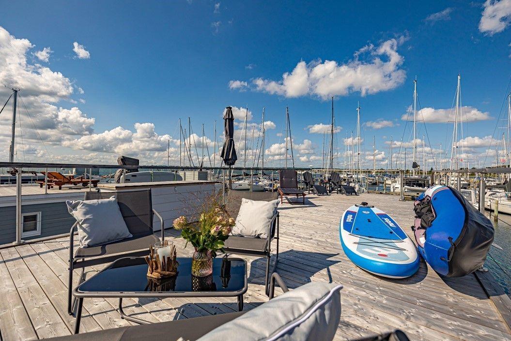 Erleben Sie maritimen Urlaub auf dem modernen Hausboot BOIE in erster Reihe der Flensburger Förde mit Ostseeblick und Sonnendachterrasse.