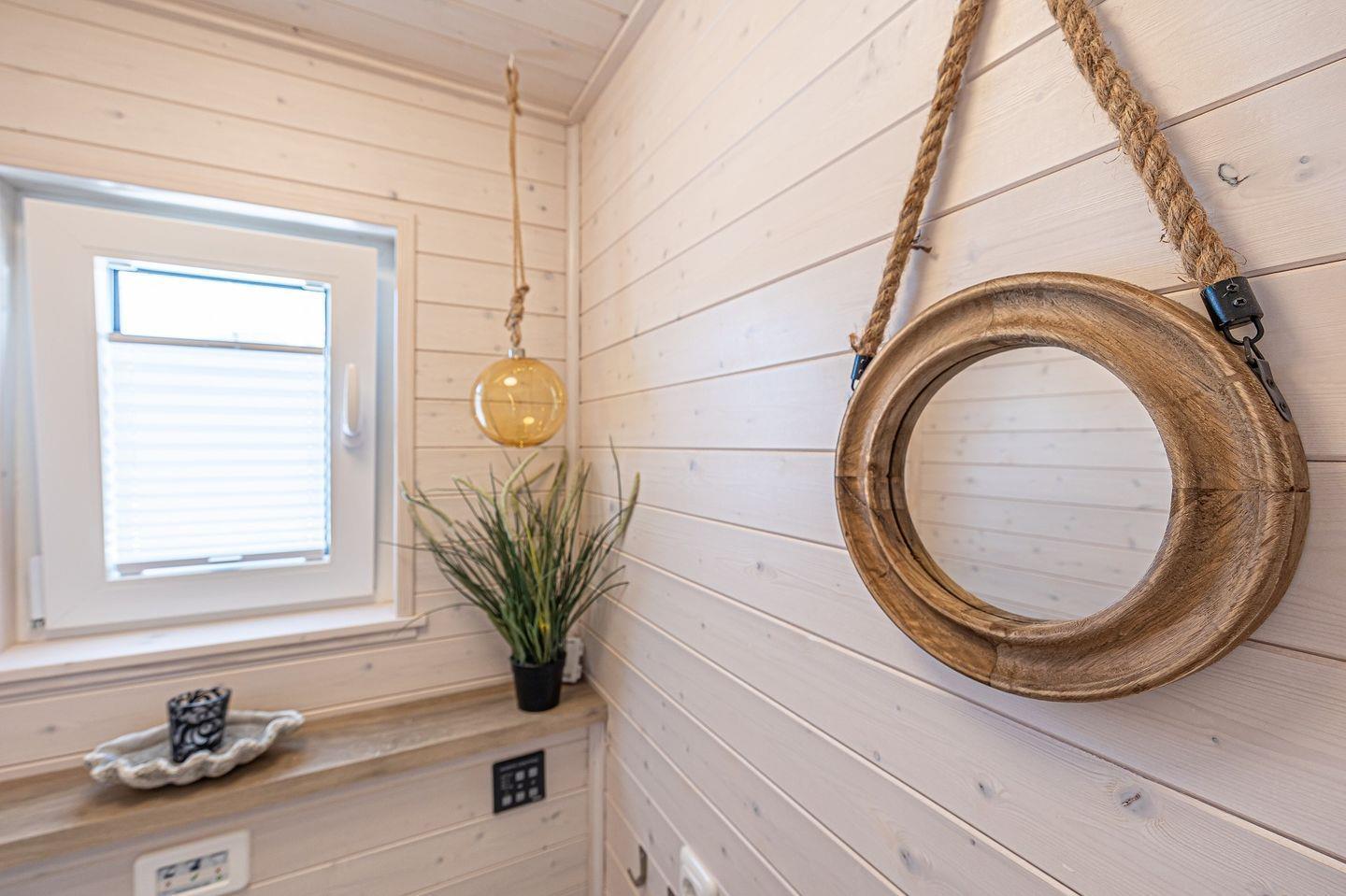 Mal einen Blick in die Ostsee werfen? Kein Problem, das Glasfenster (beleuchtet!) im Wohnbereich lässt dich zu Seestern & Co schauen.