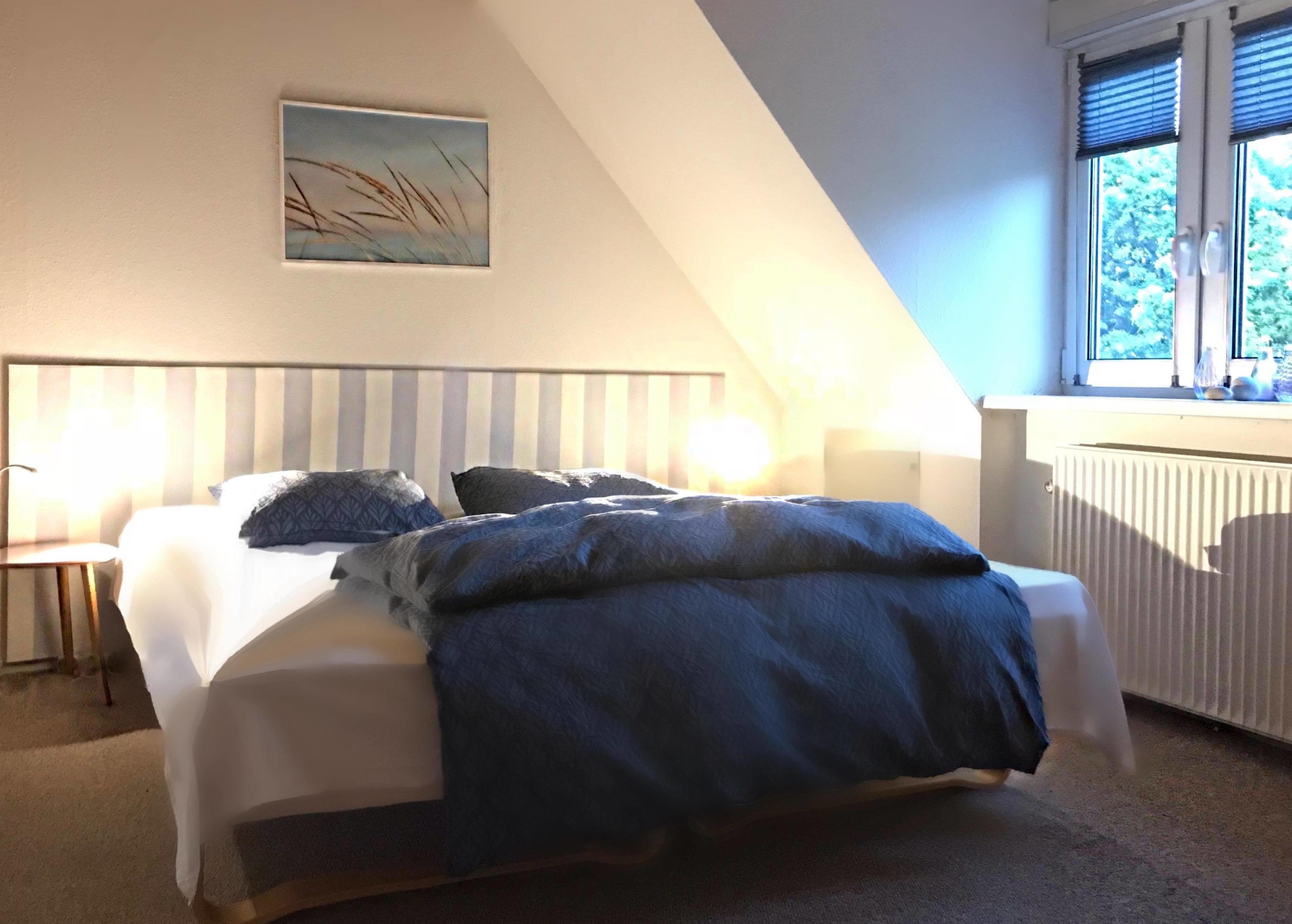Die Ferienwohnung "Gudhjem" befindet sich im Dachgeschoss, verfügt über einen eigenen Eingang und ist über eine Treppe zugänglich.