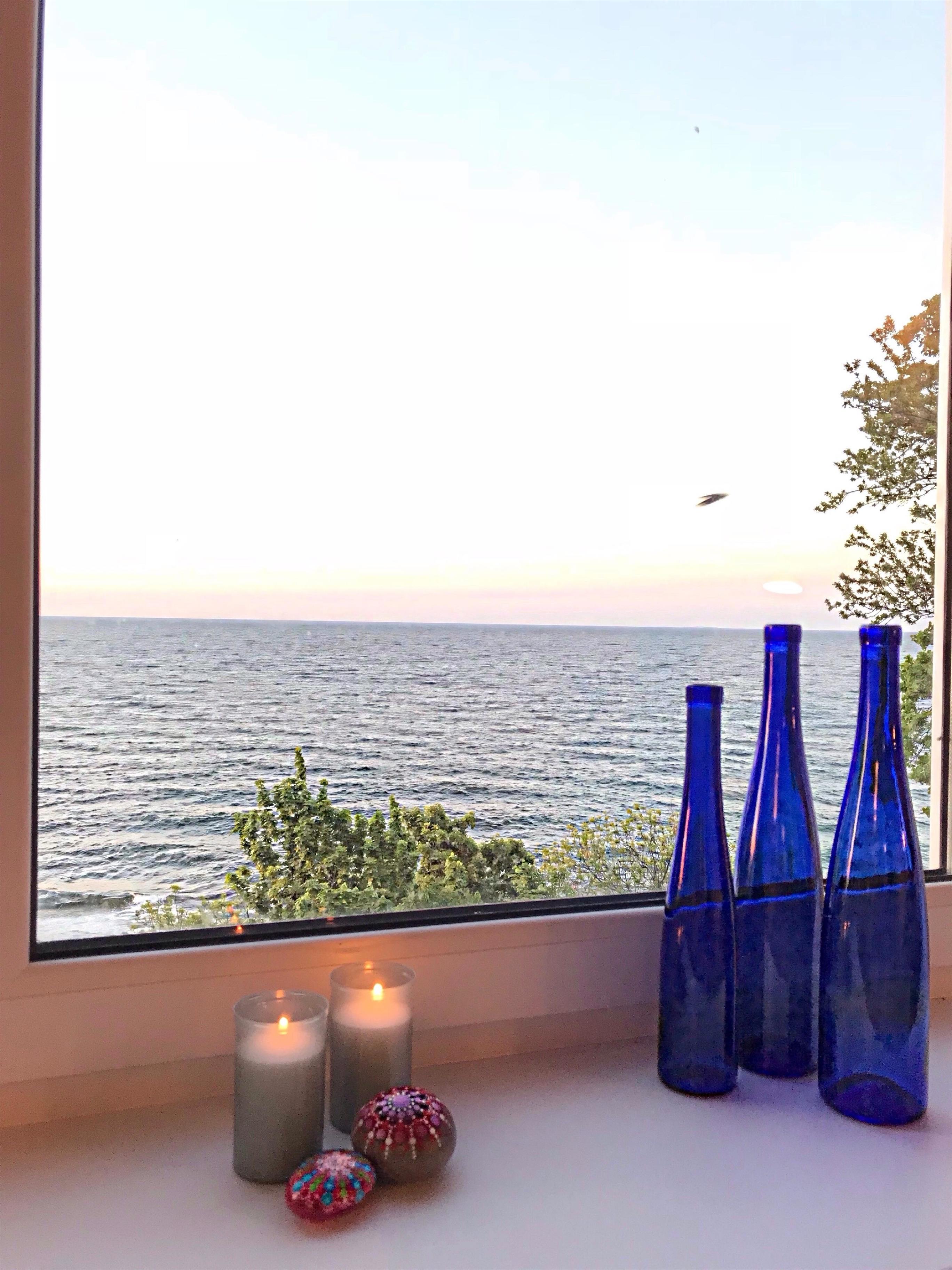 Vom Wohnzimmerfenster aus genießt ihr einen einzigartigen Blick auf die Ostsee und die Erbseninseln Christiansø und Frederikssø, während Segelschiffe vorbeiziehen – ein buntes Farbenspiel.
