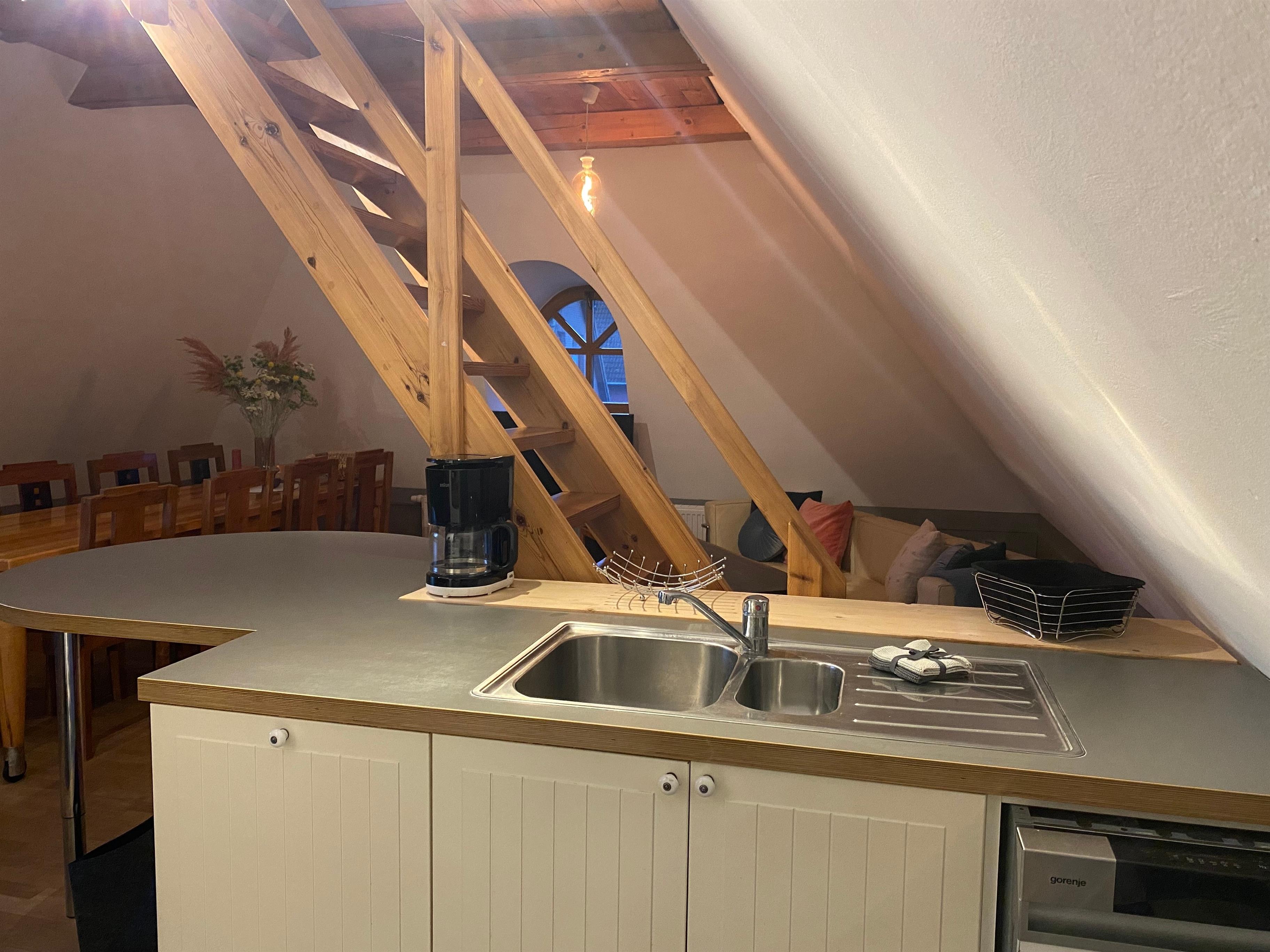 Mit dem Charme des Gebäudes unterm Reetdach zu wohnen, haben wir die große individuelle Ferienwohnung für bis zu acht Personen hergerichtet.