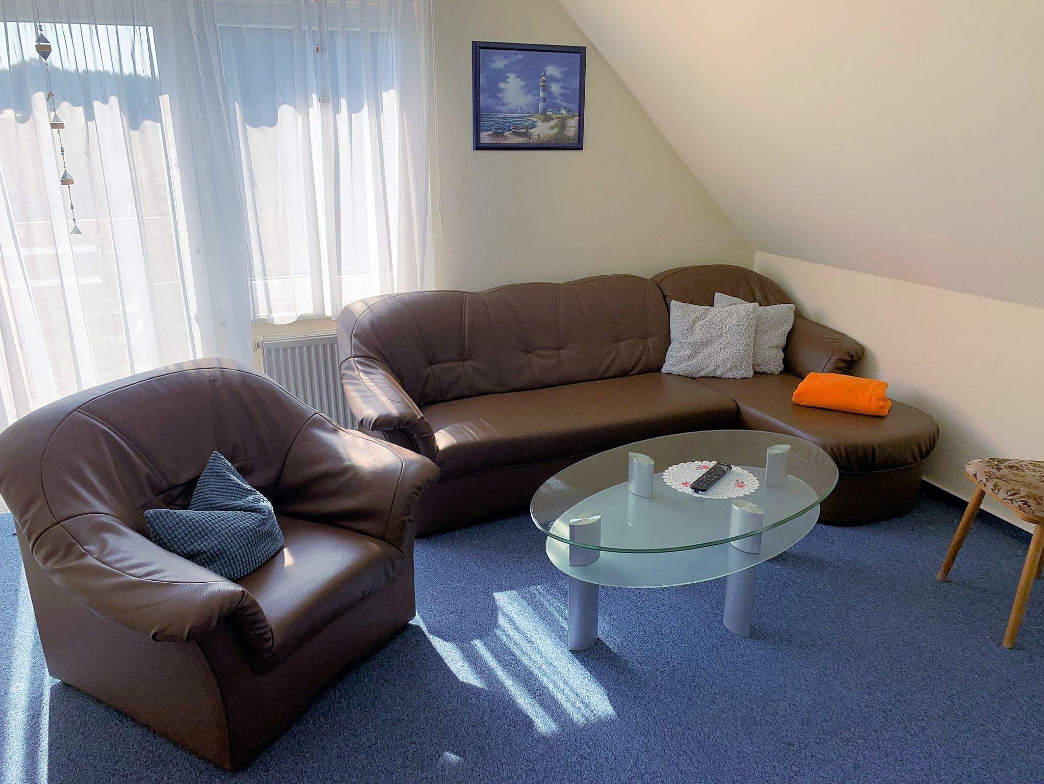 • 1 Wohnraum mit Anbauwand, Couch, Couchtisch und Sessel