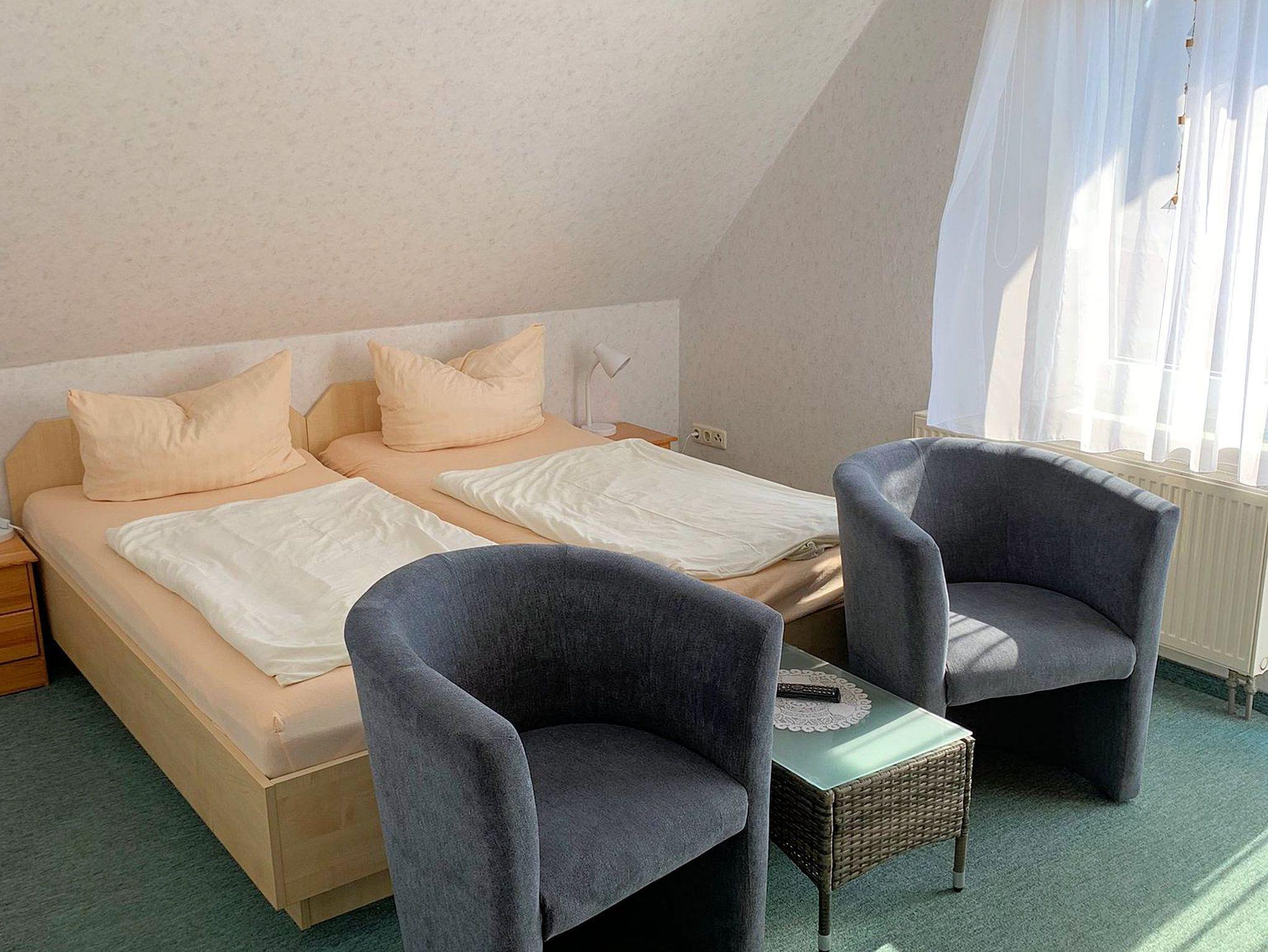 • 1 Schlafraum für 2 Personen (Doppelbett) , der 2. Schlafraum ist für 3 Personen geeignet (Einzelbetten), auf Wunsch ist für ein Kleinstkind ein Kinderbett vorhanden
