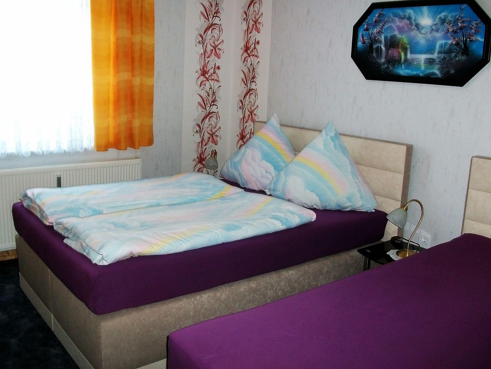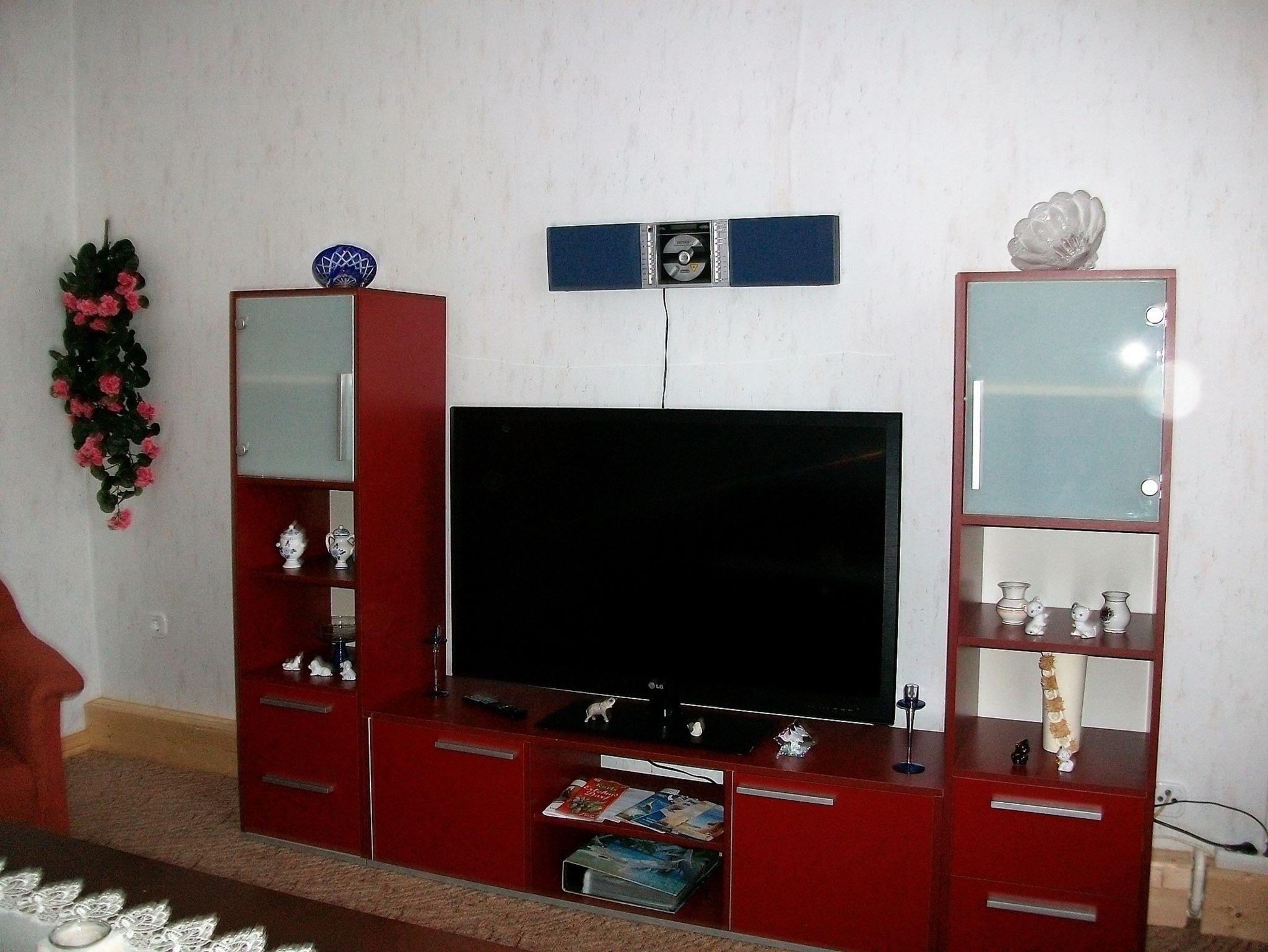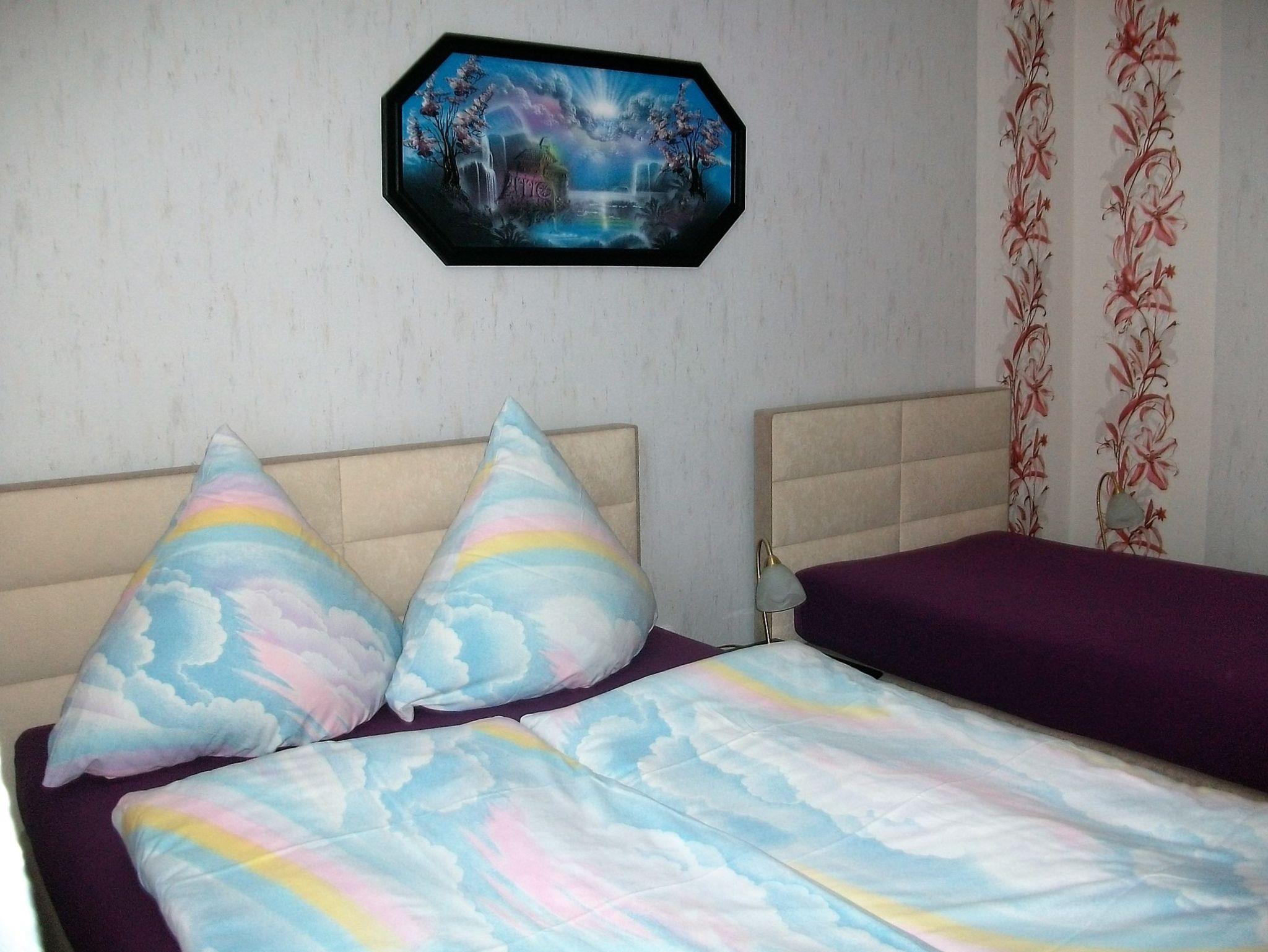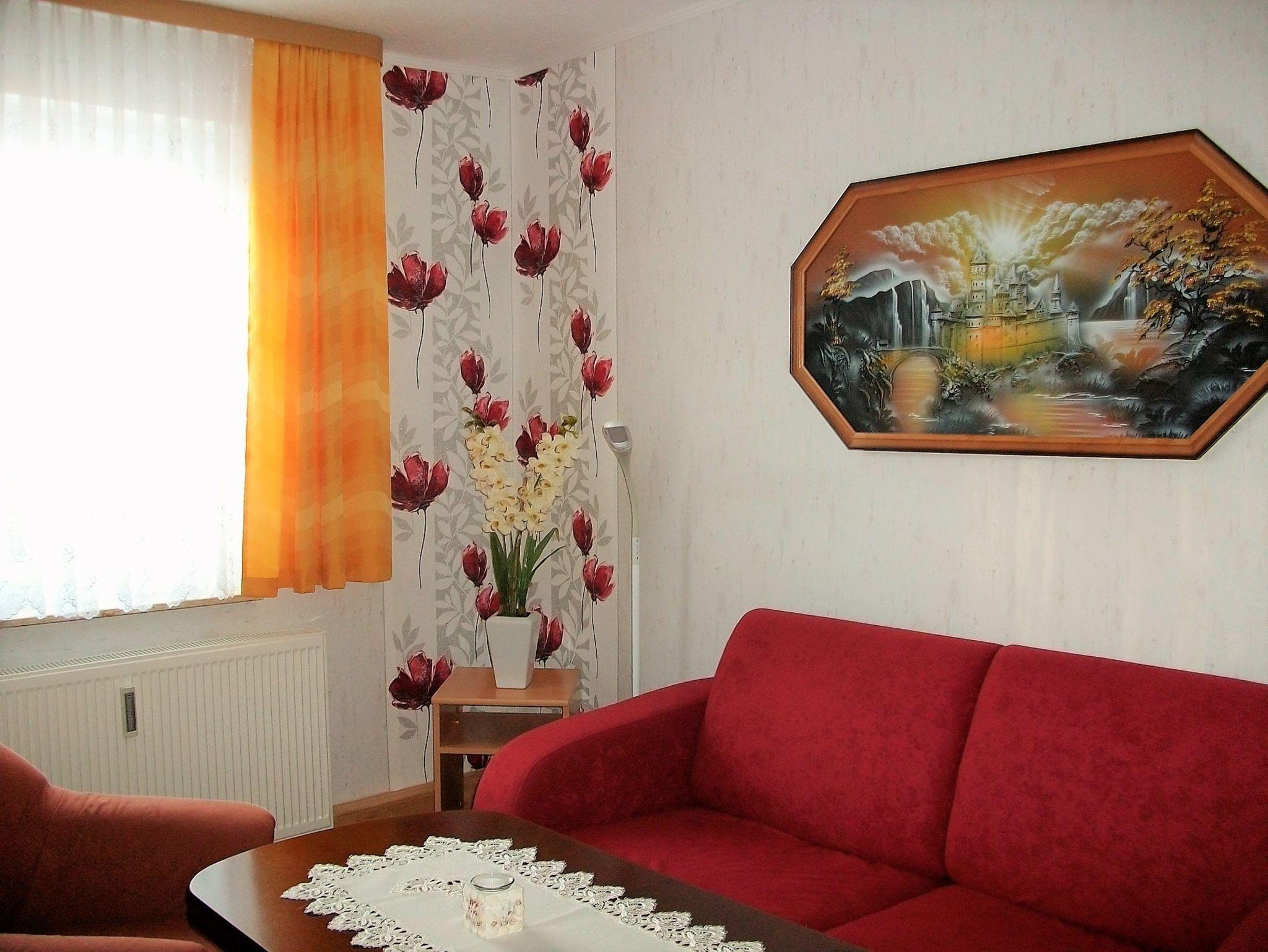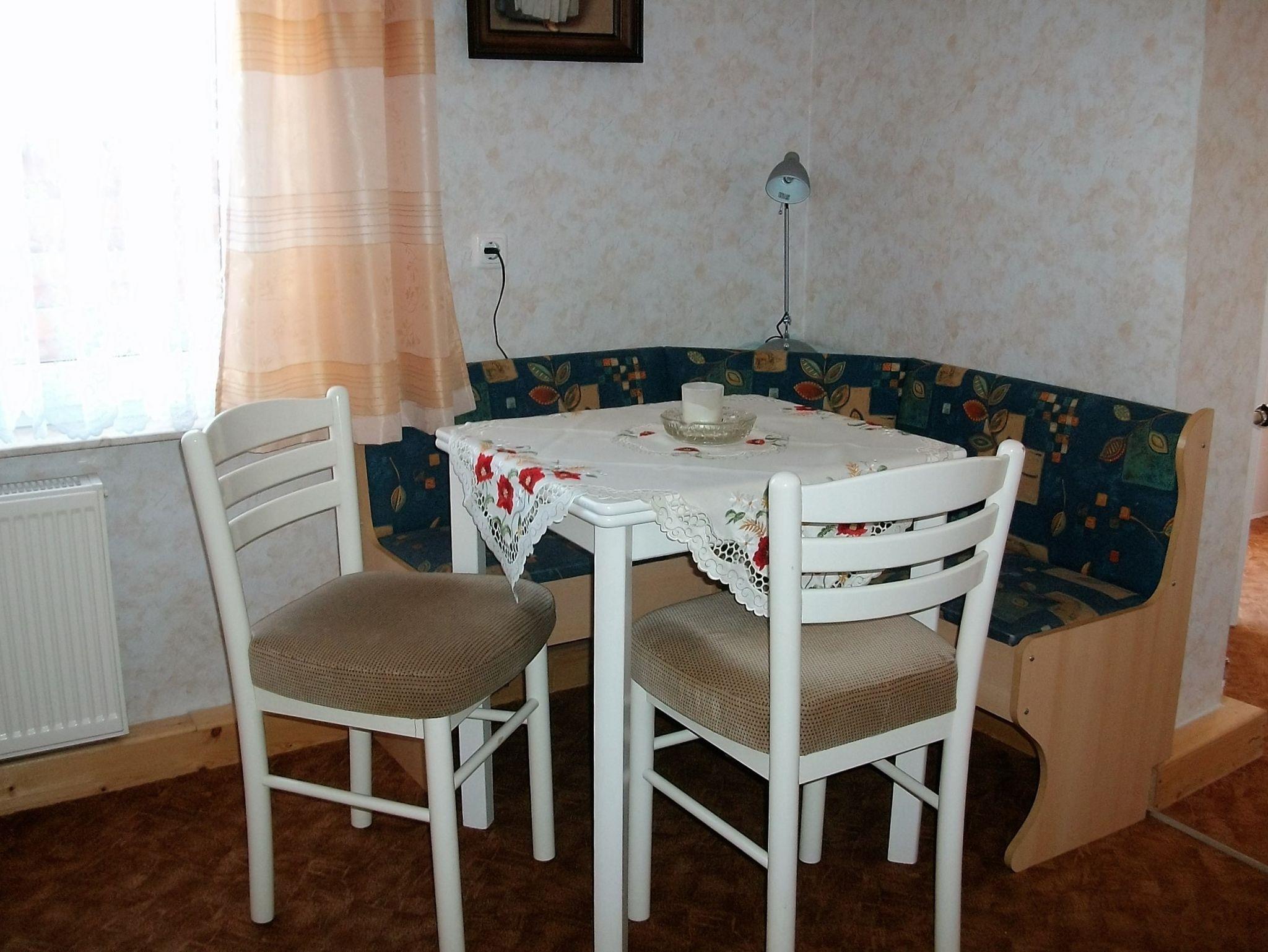 Ferienwohnung im Erdgeschoss, Größe ca.44qm, 1 Wohnzimmer mit Radio und TV, 1 Schlafzimmer mit 3 Betten, 1 Küche mit Essecke, Geschirr, Kühlschrank, Kaffeemaschine, Toaster, Dusche/WC. Handtücher sind nicht im Preis enthalten.
