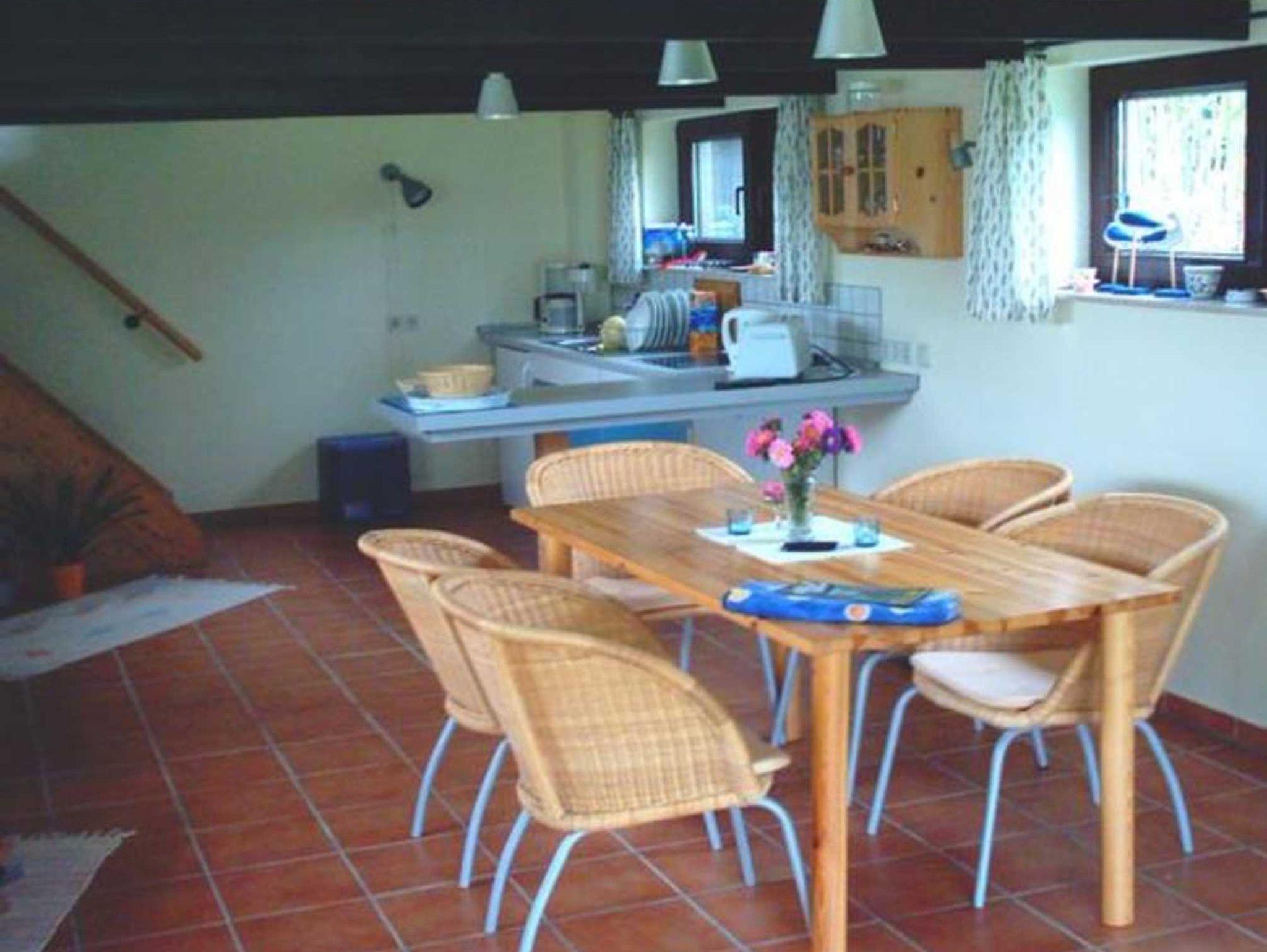 Im unteren Bereich des Hauses haben Sie eine Wohnküche mit 4-Platten-Ceranfeld, Geschirrspüler, Esstisch mit sechs Korbstühlen, 2 Sessel und Beistelltisch zum Relaxen und TV, davor eine Terrasse. In der Mitte des Hauses, im Wohn-Schlaf-Bereich, ein Doppelbett, Einbauschrank, gemütliche Ledersitzgruppe und Balkon mit herrlichem Blick auf das Achterwasser. Endreinigung und Erstausstattung Bettwäsche inklusive. Bitte bringen Sie Handtücher mit.