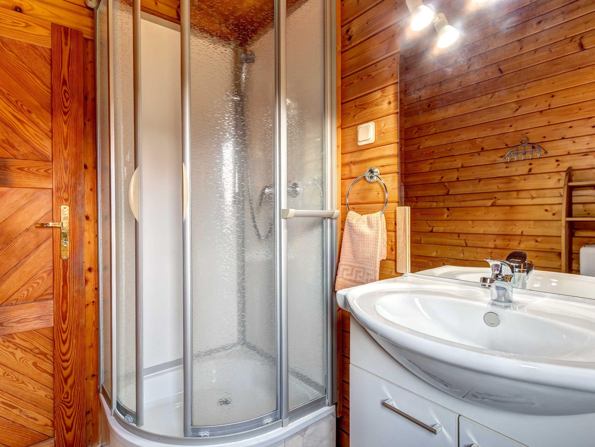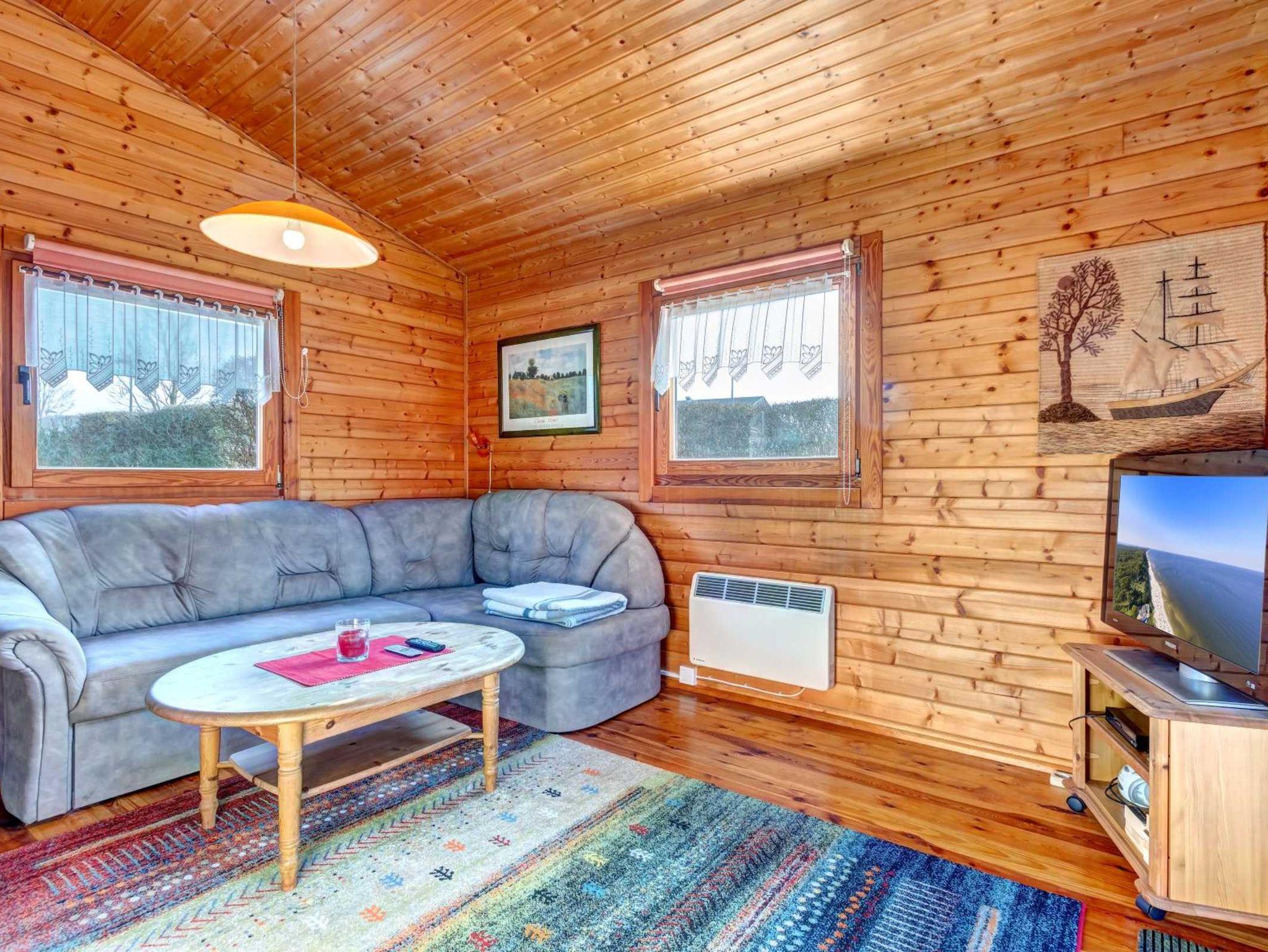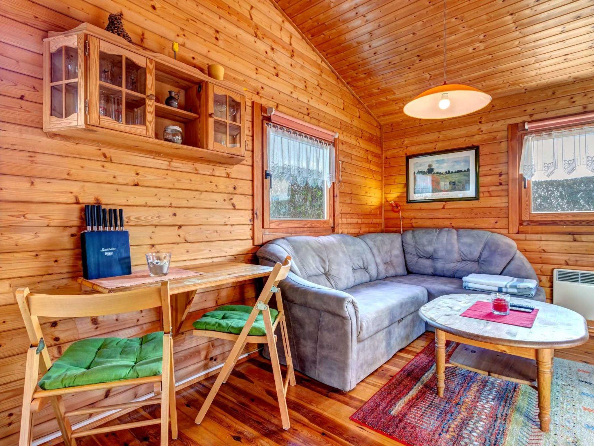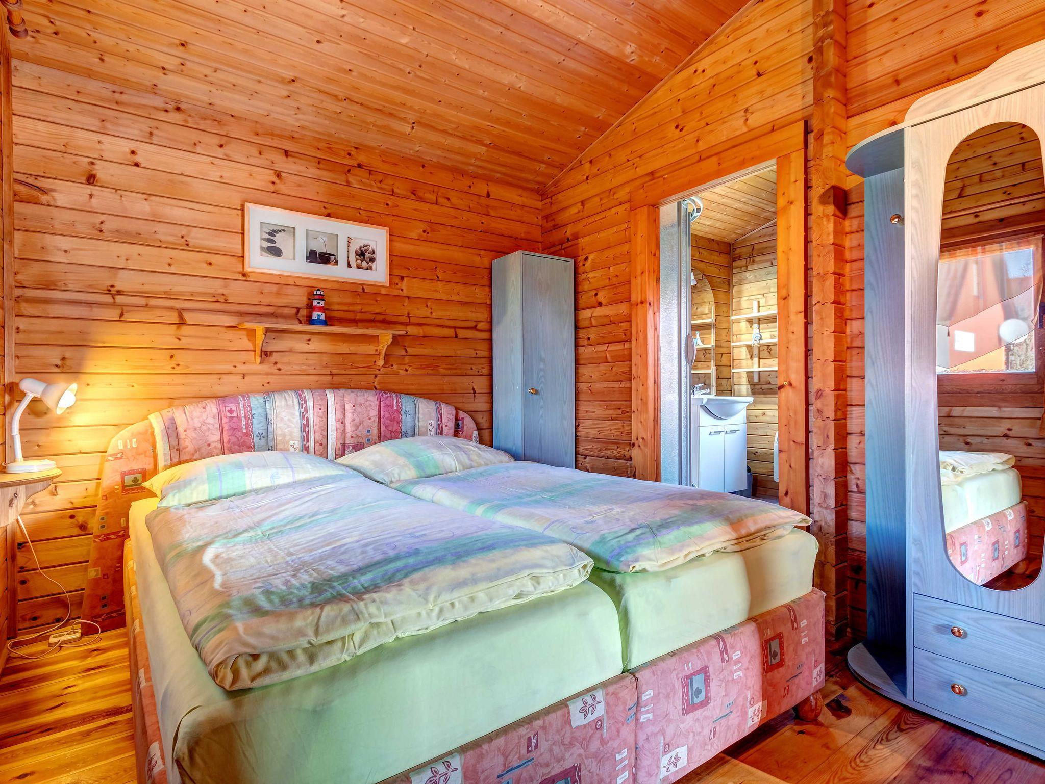 Holzblockhaus bestehend aus einem Wohnzimmer mit integrierter und komplett ausgestatteter Küchenzeile (inkl. Geschirrspüler), einem Schlafzimmer (Doppelbett 1,60 x 2,00 m) sowie Du/WC.