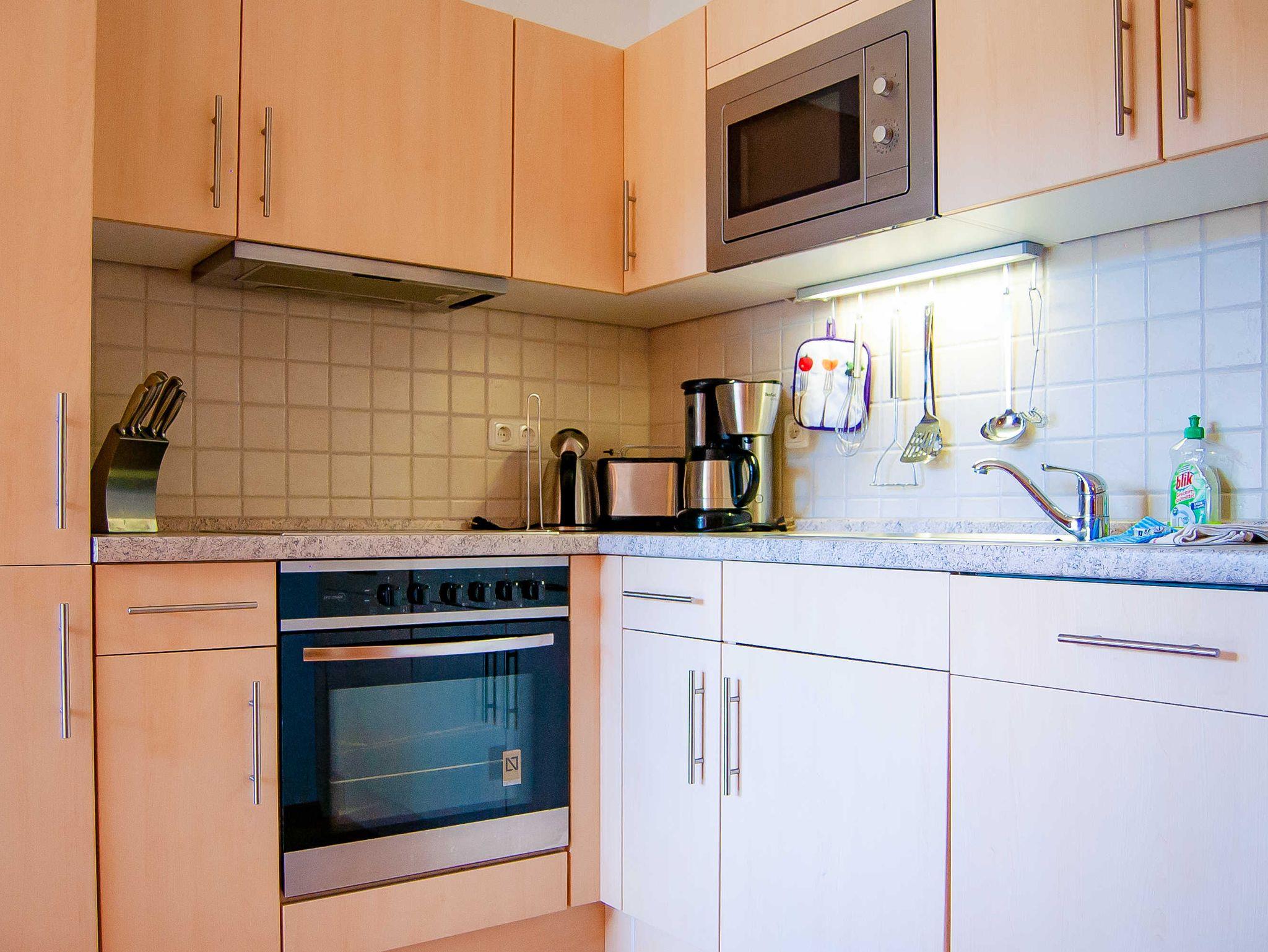 Die komplett ausgestattete moderne Küche mit Herd, Ofen, Geschirrspüler, Kühl- und Gefrierschrank, Kaffeemaschine, Toaster, Wasserkocher und Kücheninventar bietet ausreichend Möglichkeit zum Kochen. In allen Zimmern ist Fußbodenheizung vorhanden.