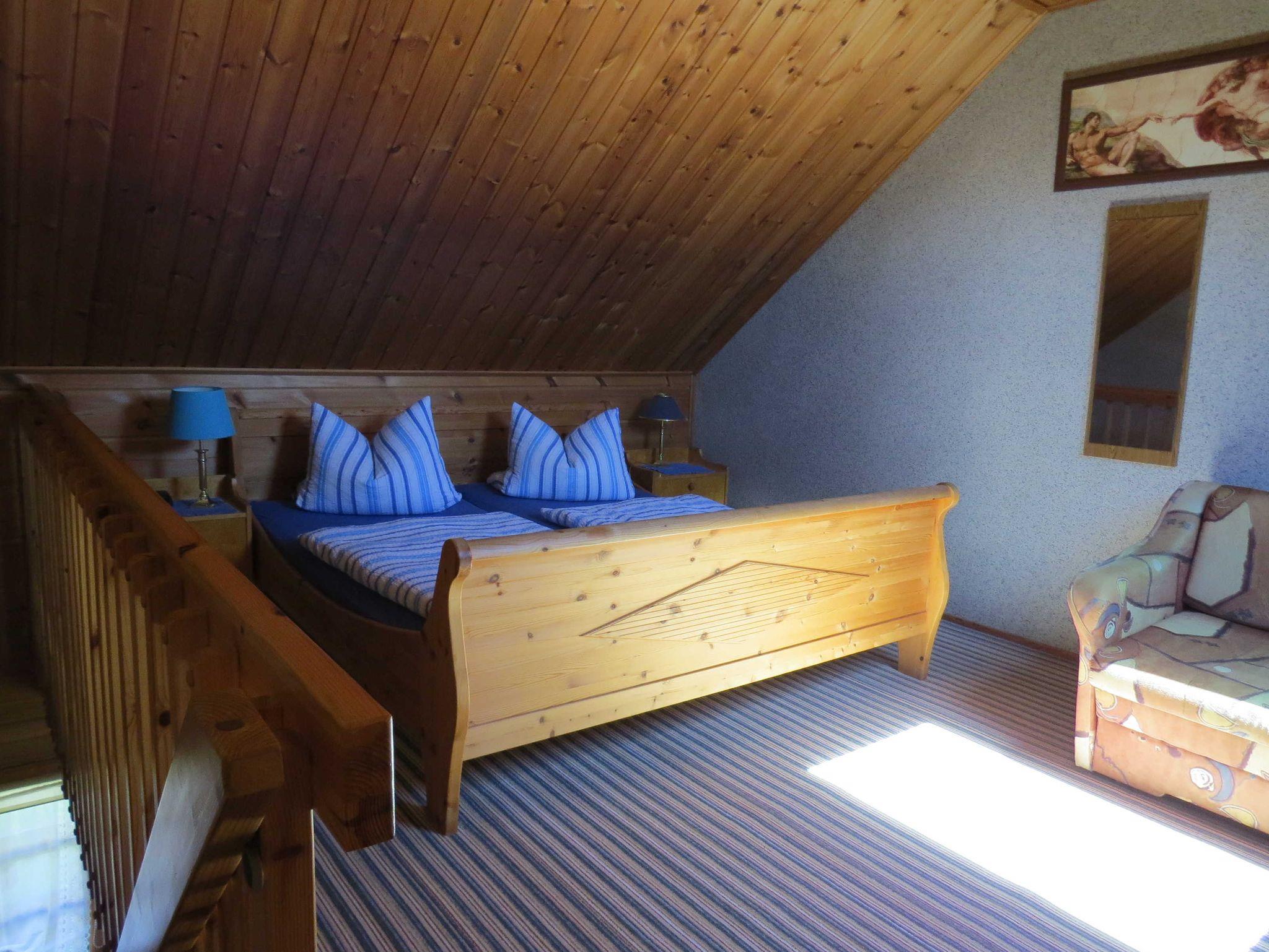 Maisonetten-Ferienwohnung für 3 Personen mit separatem Eingang. Die Fewo besteht aus 1 Schlafzimmer mit einem Doppelbett und einem Einzelbett in der oberen Etage, sowie einem Wohnzimmer mit Küchenzeile (TV, Couch, Küchentisch mit 3 Stühlen), Du/WC in der unteren Etage. Bettwäsche ist inklusive. Handtücher bitte mitbringen. Nichtraucher sind erwünscht (Rauchmöglichkeit auf überdachter Eingangsterrasse). Haustiere nicht erlaubt.