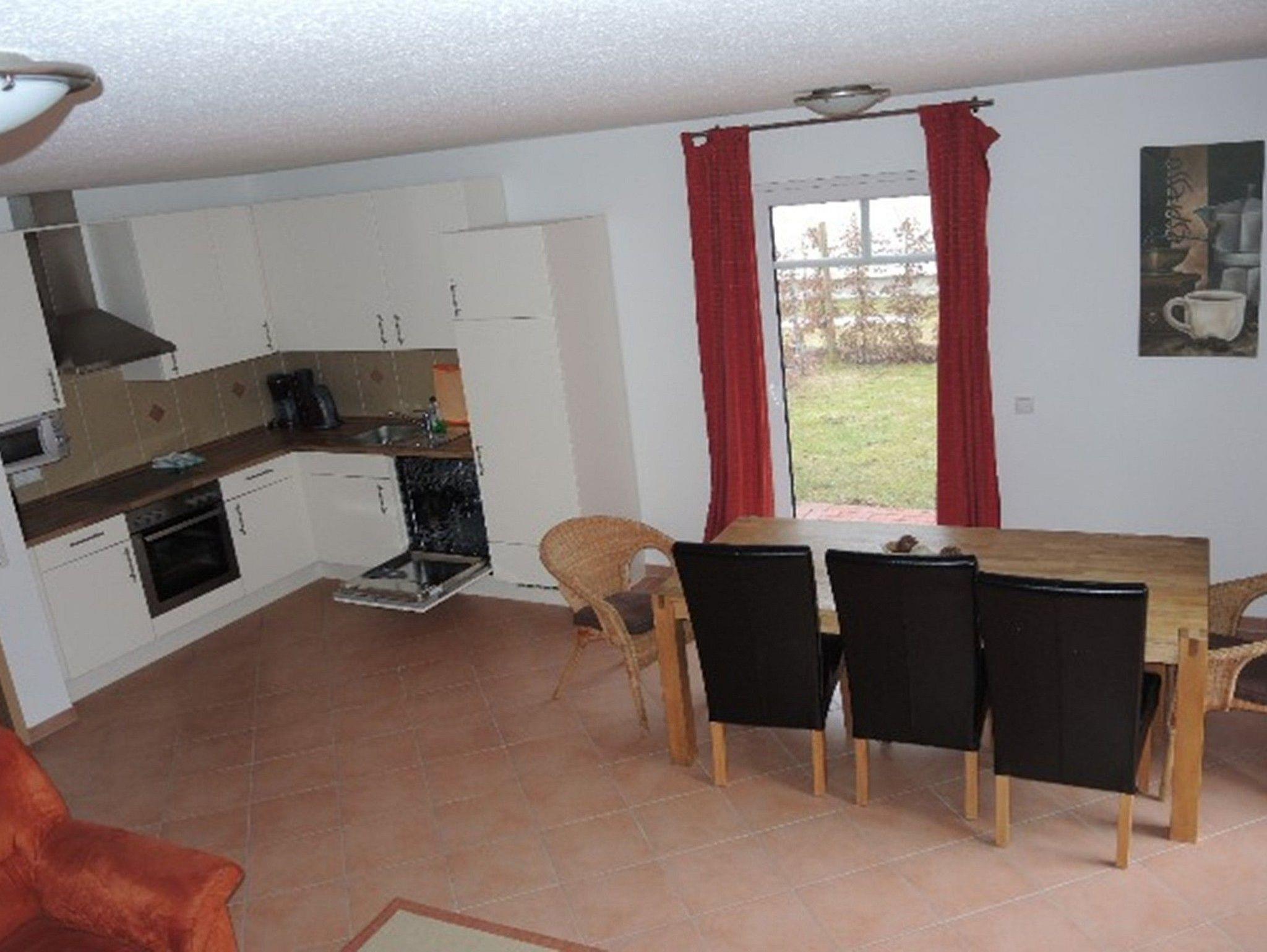 Sie verfügt über ein großzügiges Wohnzimmer mit Essecke, Couchgarnitur und Fernseher. Eine Küchenzeile mit Spülmaschine ist in den Wohnbereich integriert. Die Couch kann als Schlafcouch genutzt werden.