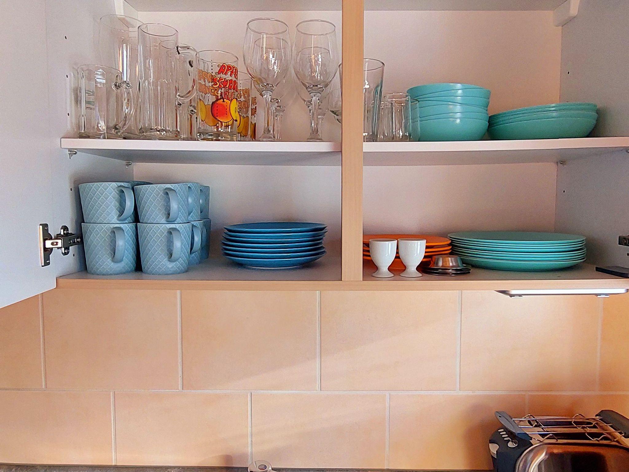 Die Ferienwohnung besteht aus einem Wohnzimmer mit integrierter Küchenzeile (inkl. Geschirrspüler, 2 Kochfeldern, Kühlschrank mit Tiefkühlfach), einem Schlafzimmer (Doppelbett 1,60 x 2,00 m) sowie Du/WC.
