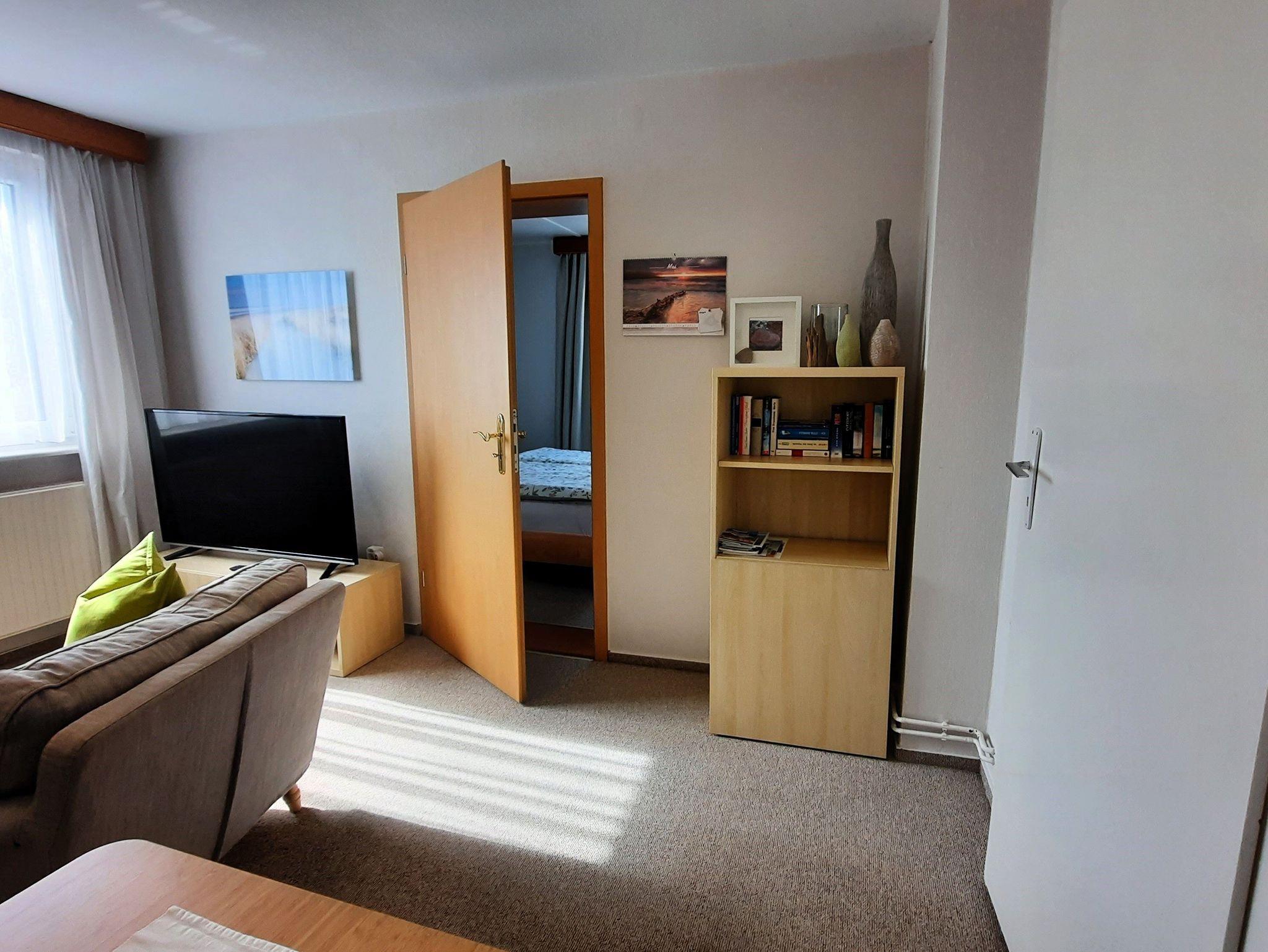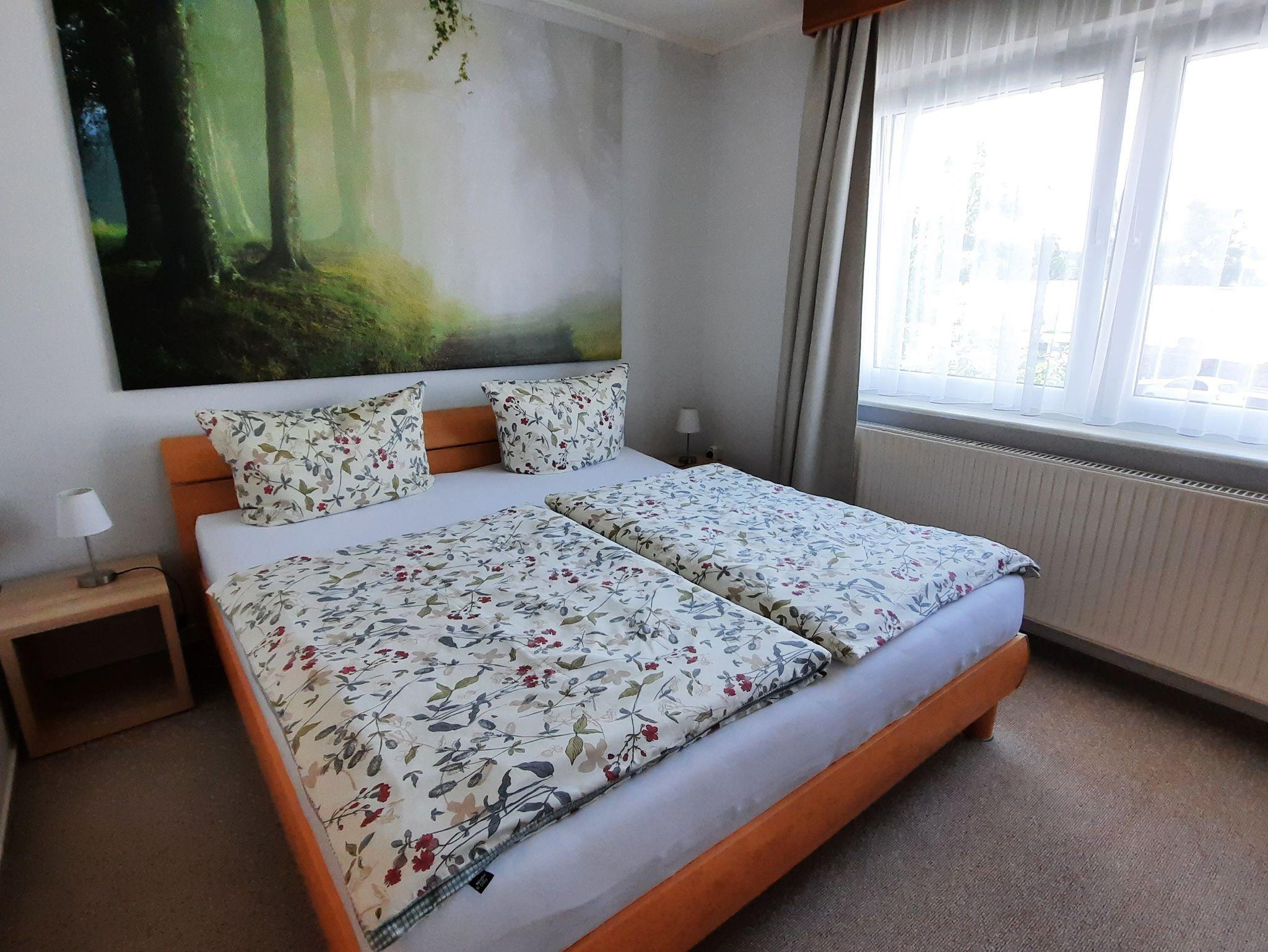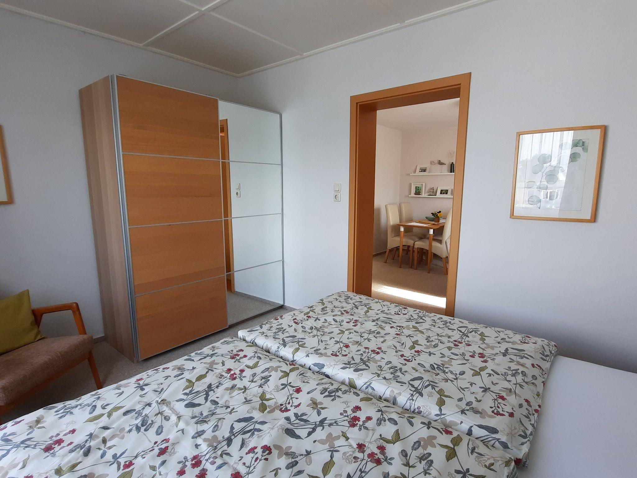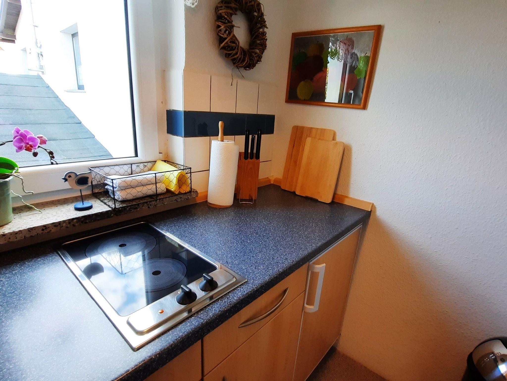 Die Nichtraucher-Ferienwohnung besteht aus einem Wohnzimmer (Couch, Sessel, Couchtisch, Essplatz, Sat-TV), einem Schlafzimmer (Doppelbett, Kleiderschrank und Sessel), einer separaten kleinen Küche (Einbauküche mit Kühlschrank, zwei Ceran-Kochfeldern, Spüle) und einem Bad mit Dusche/ WC. Die Erstausstattung Bettwäsche ist inklusive. Bitte bringen Sie Handtücher mit. (Achtung: Die Treppe zur Wohnung hat an einer Stelle eine niedrige Durchgangshöhe ca. 1,70m) Keine Haustiere!