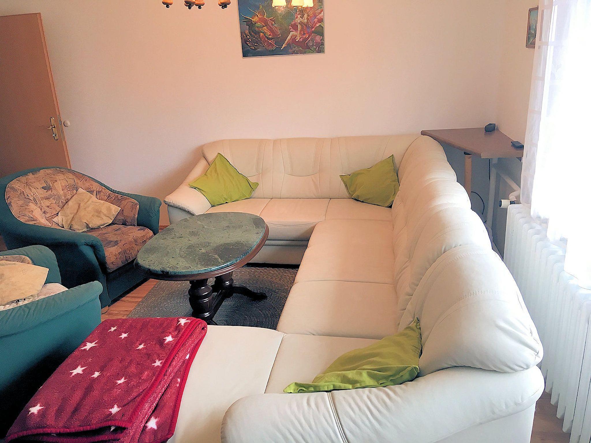 • 1 Wohnraum mit Anbauwand, Eckcouch, Sessel, Couchtisch