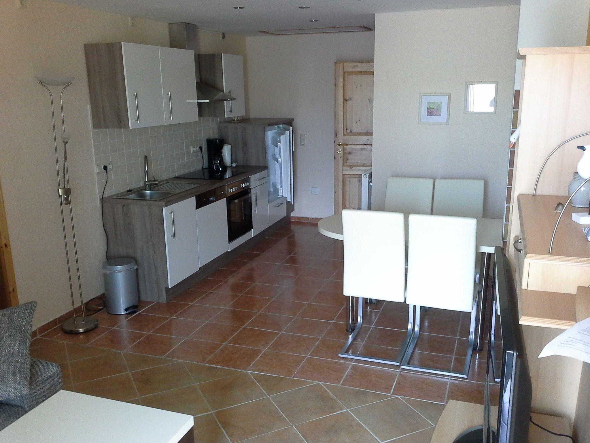Die Wohnung ist ausgestattet mit Küche, Sitzecke,