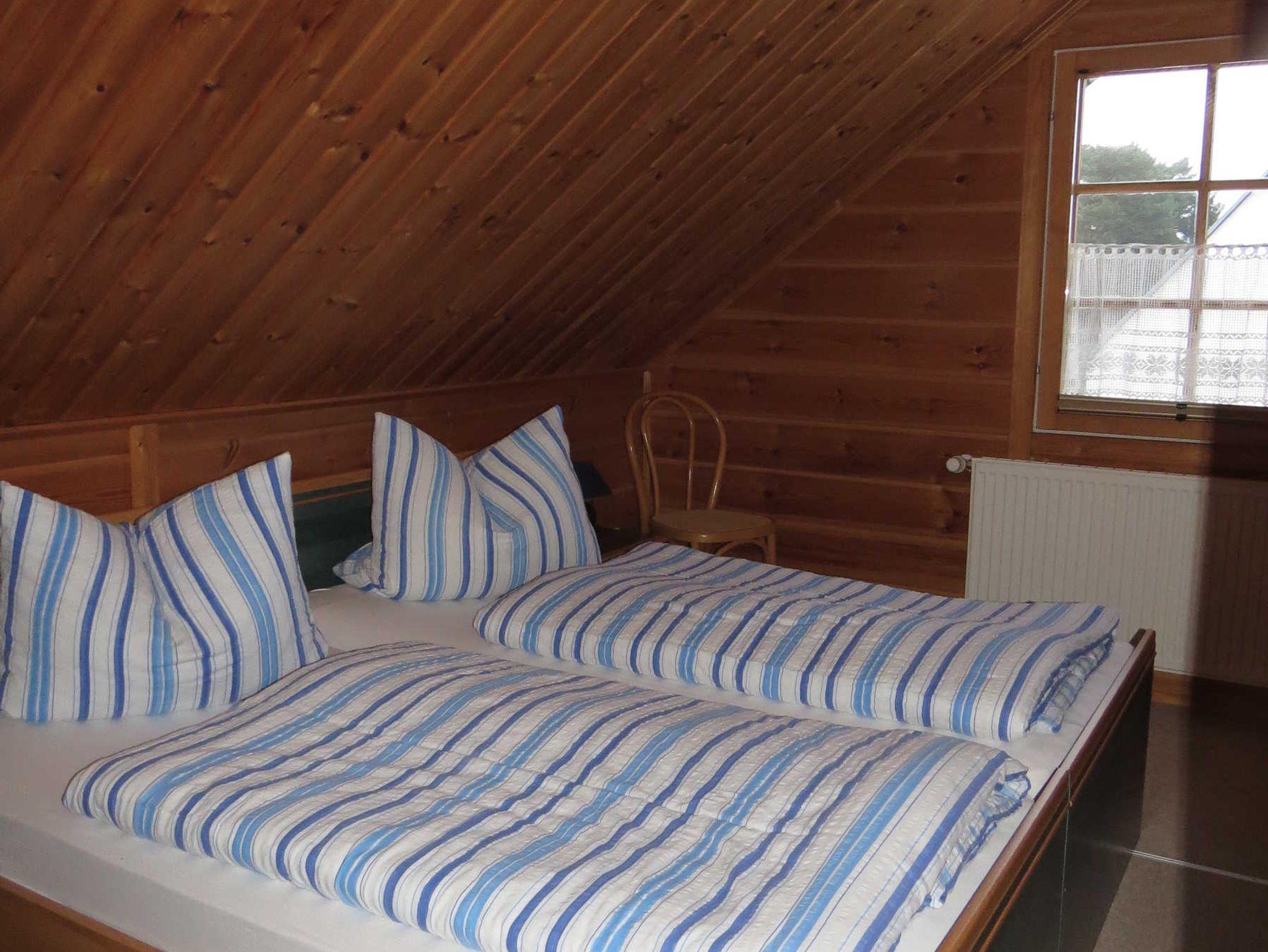 Maisonetten-Ferienwohnung für 5 Personen (Aufbettung für eine weitere Person möglich-Zustellbett) mit separatem Eingang. Die Fewo besteht aus 2 Schlafzimmern mit je einem Doppelbett und einem Schlafzimmer mit Einzelbett in der oberen Etage. Der Wohnraum mit Eckcouch, Sessel und TV und intergrieter Küchenzeile mit Spülmaschine sowie einem Tisch für 6 Personen, Bad mit Du/WC befinden sich in der unteren Etage. Ebenfalls ist die Nutzung einer Waschmaschine möglich( 2€ je Waschgang). Bettwäsche ist inklusive. Handtücher bitte mitbringen. Nichtraucher sind erwünscht (Rauchmöglichkeit auf überdachter Eingangsterrasse). Haustiere sind nicht erlaubt.