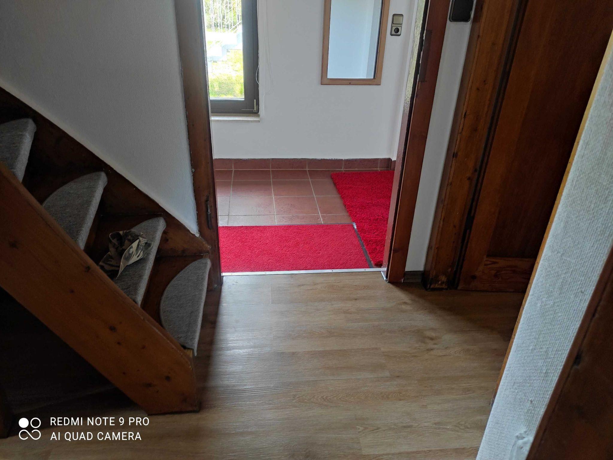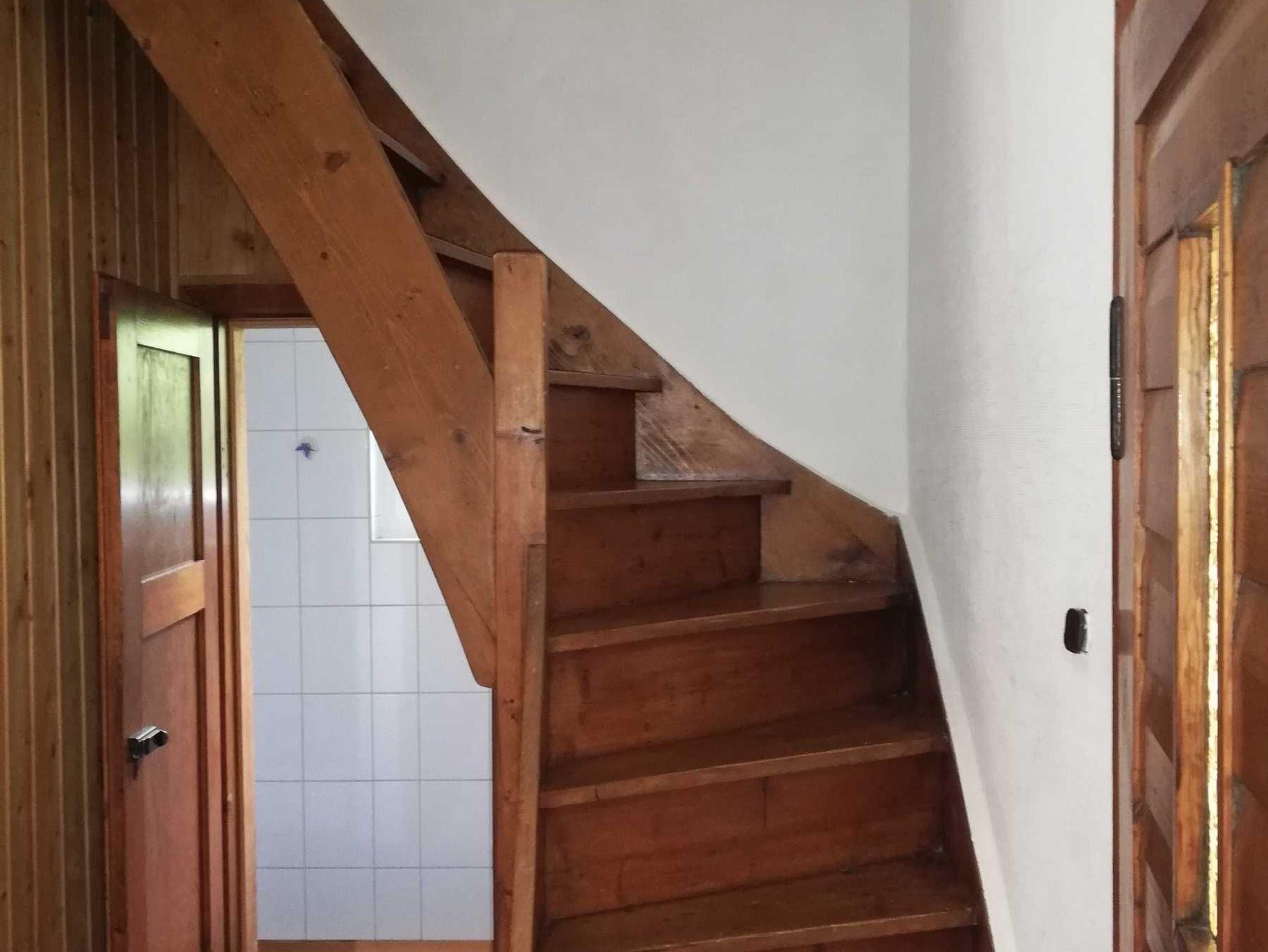 Das Schlafzimmer befindet sich im Dachgeschoß und ist über eine Treppe (siehe Foto) zu erreichen.