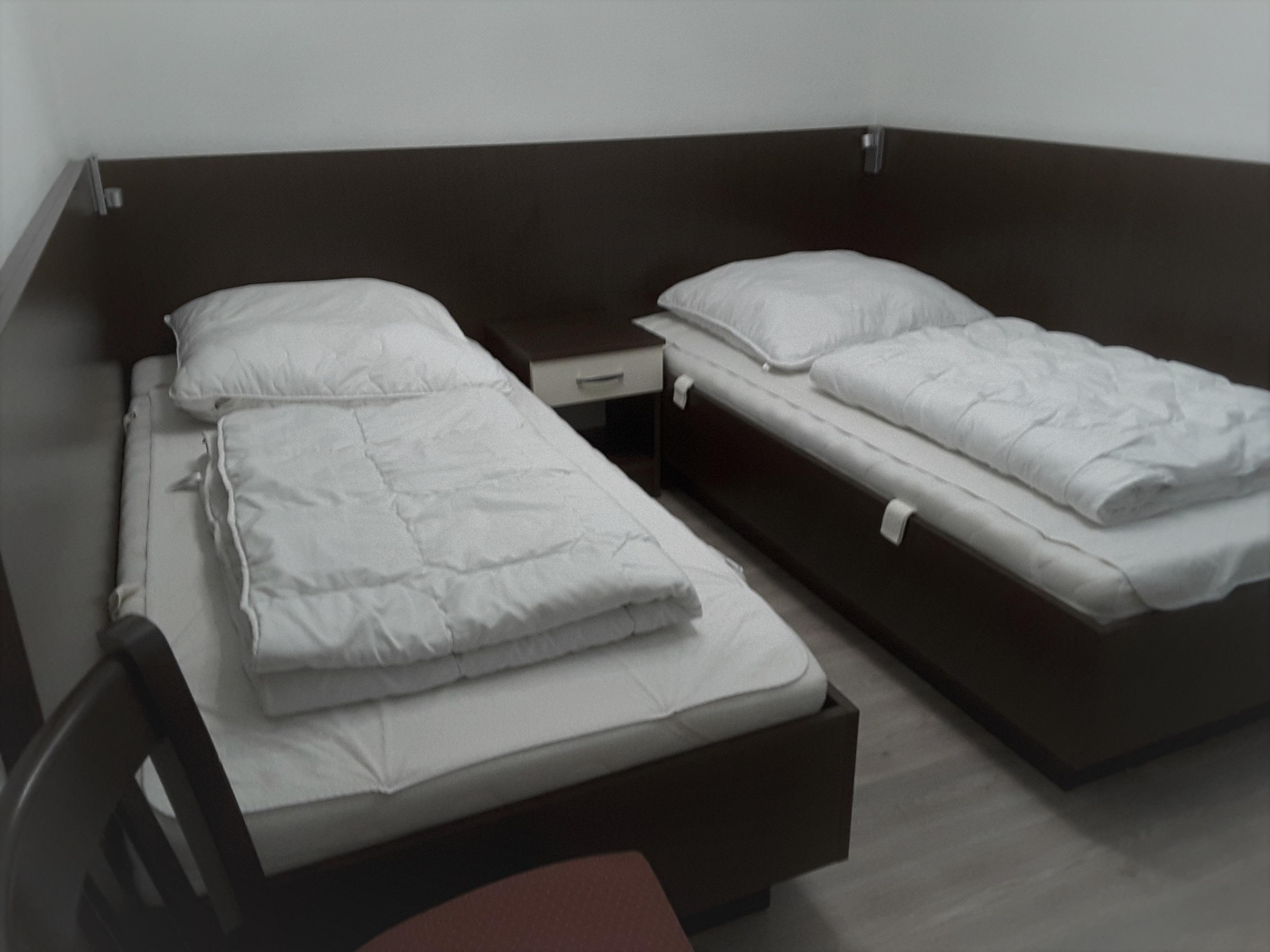 Ferienwohnung für 6 Personen mit kombiniertem Ess/Wohnbereich sowie zwei separate Schlafzimmer und einem Bad mit Dusche.