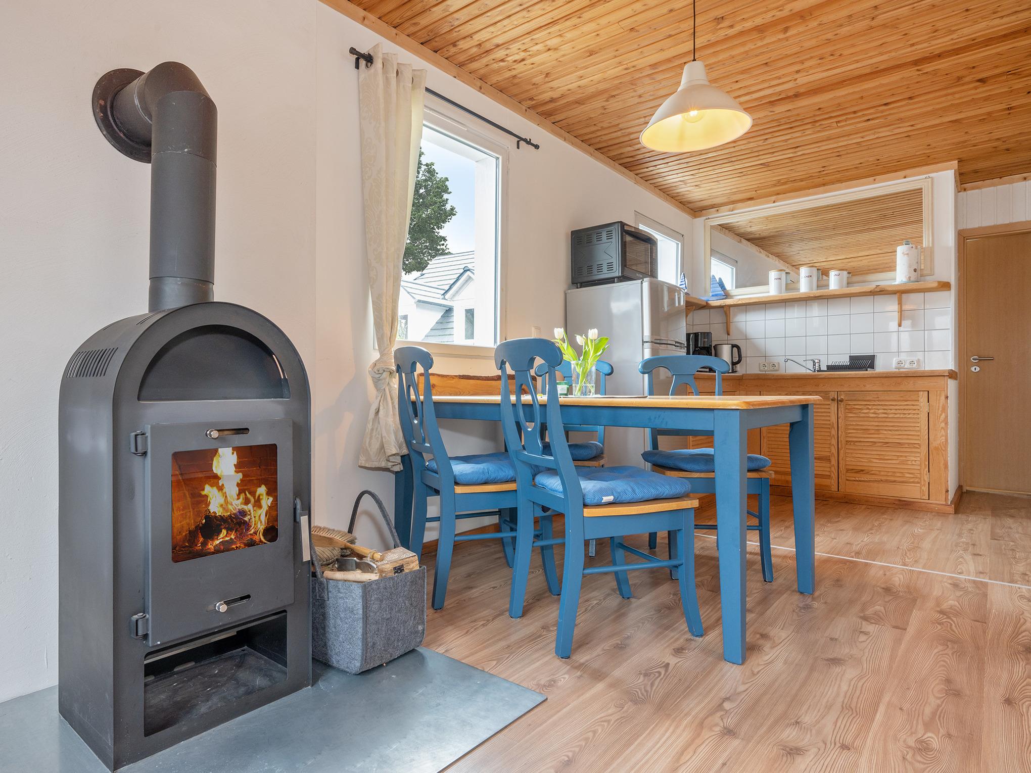 - ein gefüllter Kaminholzkorb mit Anzündholz und Anzünder (Nachschub gegen Gebühr vor Ort erhältlich)