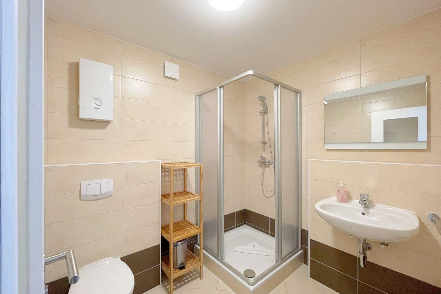 Das gemütliche Schlafzimmer ist der ideale Ort, um nach einem erlebnisreichen Tag zu entspannen und neue Energie zu tanken. Das Badezimmer ist modern gestaltet und verfügt über eine Dusche mit Wanne, in der Sie sich nach einem langen Tag bei Wellness und Natur wieder erholen können. Zu den weiteren Annehmlichkeiten zählen Handtücher, Bettwäsche ohne die Notwendigkeit für ein Auto, da alles in der Nähe gut zu Fuß erreichbar ist.