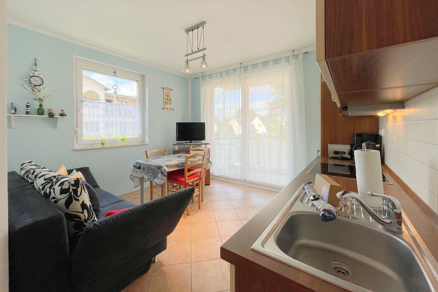Charmante Ferienwohnung in Ückeritz, 800 m vom Sandstrand, mit Balkon, moderner Küche und gemütlichem Ambiente.