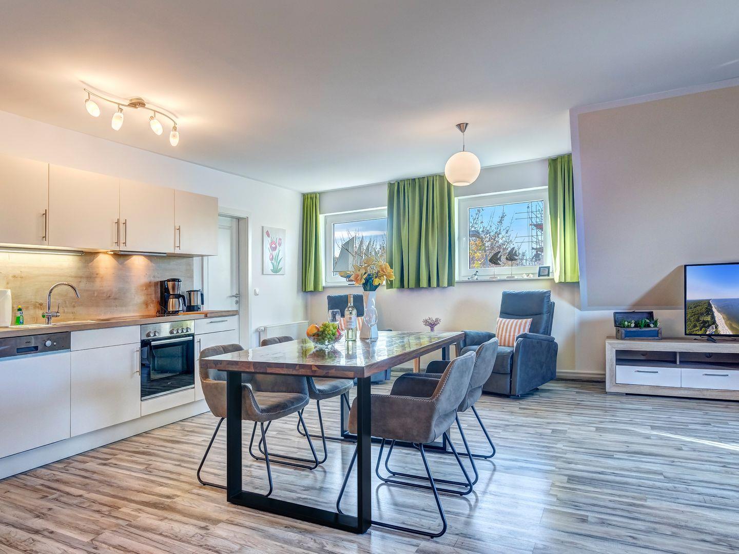 Erleben Sie erholsame Tage im Haus zum Achterwasser, Whg. 2 in Ückeritz, nur 1500 Meter vom Strand entfernt. Diese moderne Ferienwohnung im ersten Stock bietet Platz für bis zu vier Personen und ist ideal für Familien. Genießen Sie den Komfort einer voll ausgestatteten Küche, ein gemütliches Wohnzimmer mit Kamin sowie einen Balkon zur Entspannung. WLAN steht Ihnen ebenso zur Verfügung wie ein Privatparkplatz. Einkaufsmöglichkeiten und Restaurants sind in der Nähe. Ihre Auszeit beginnt hier.