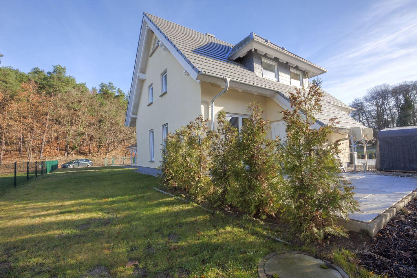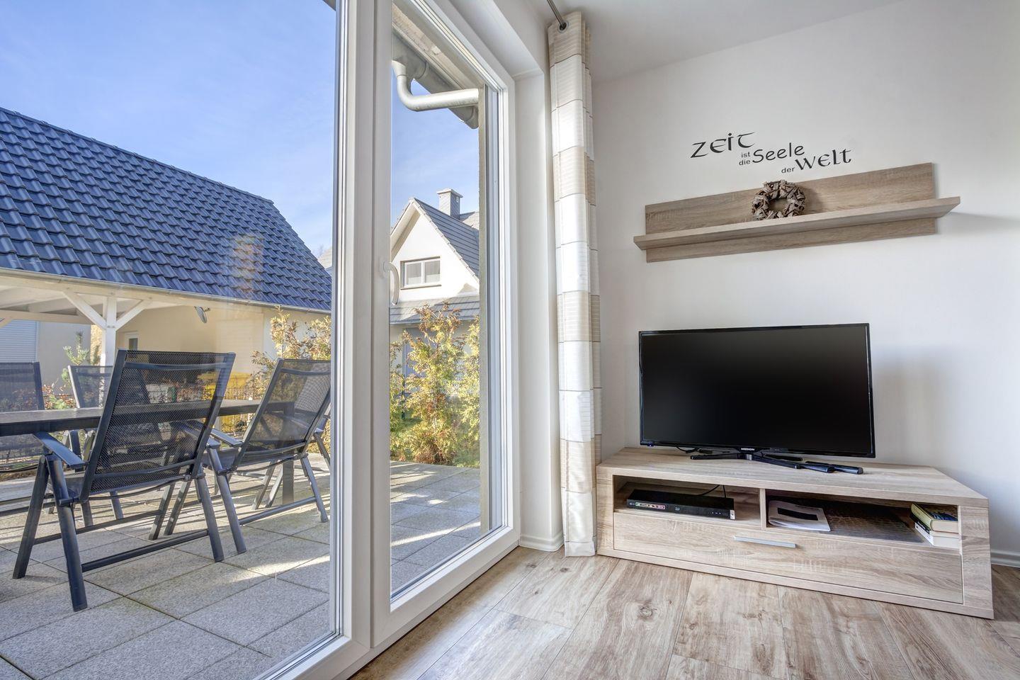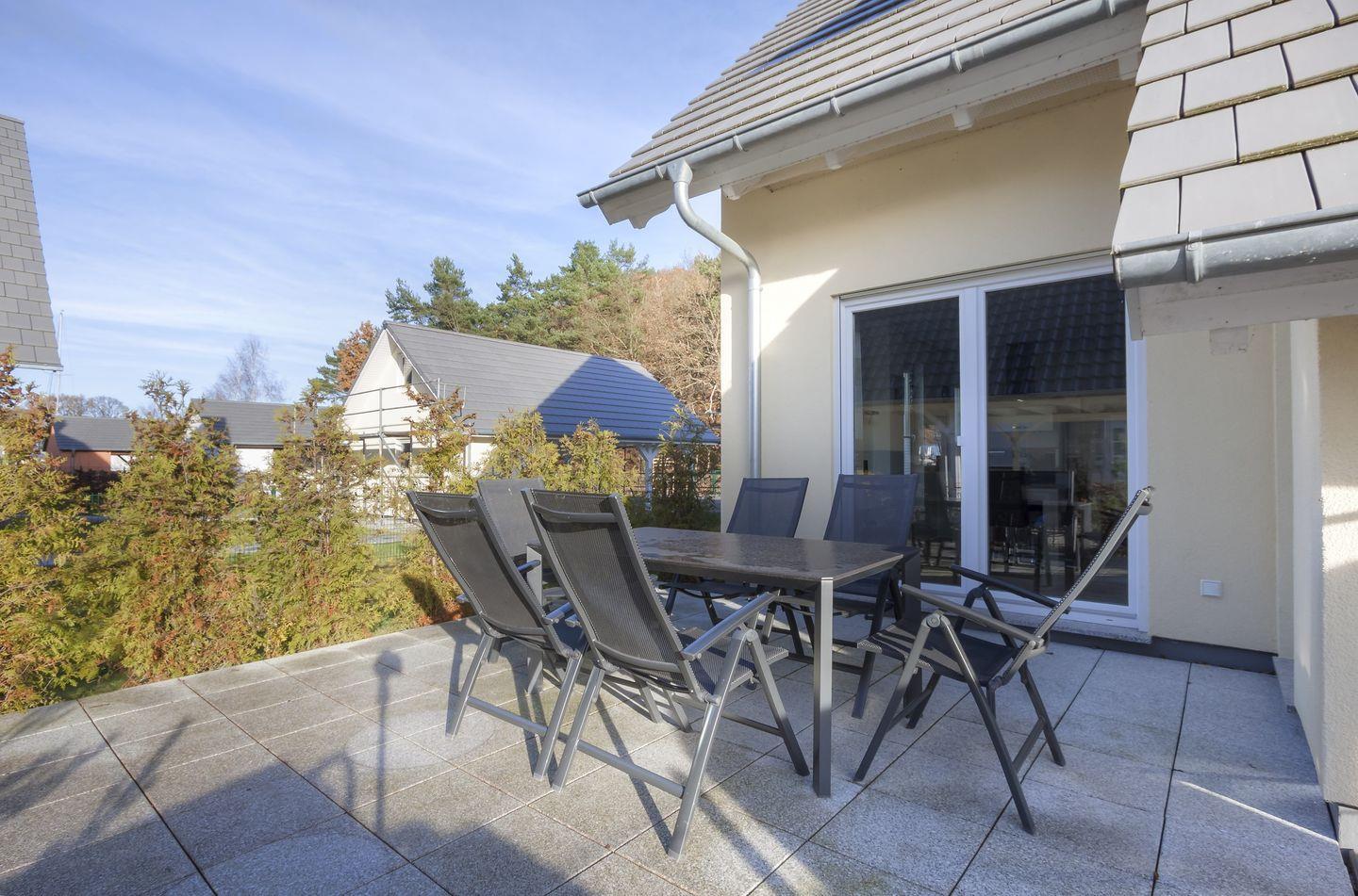 Ferienhaus Störtebeker in Ückeritz bietet modernen Komfort mit Kamin, Terrasse und Panoramablick für erholsame Urlaubstage.
