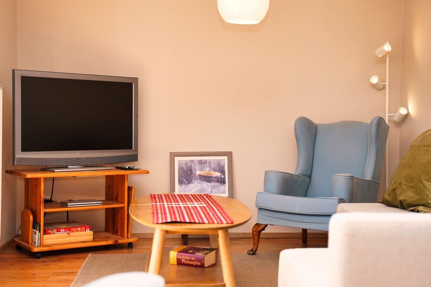 Die Wohnung verfügt über zwei komfortable Schlafzimmer, die mit gemütlichen Betten ausgestattet sind, ideal für erholsame Nächte. Das hell gestaltete Wohnzimmer ist der zentrale Treffpunkt der Wohnung. Hier lädt eine bequeme Sofaecke zum Verweilen ein, während Sie die digitale Unterhaltung von dem großen Fernseher genießen oder die wärmende Abendsonne im Essbereich in voller Pracht erleben. Der offene Küchenbereich ist bestens ausgestattet – mit einem Herd, Backofen, Mikrowelle, Geschirrspüler und allen notwendigen Küchenutensilien sind Sie bestens für gemeinsames Kochen gerüstet.