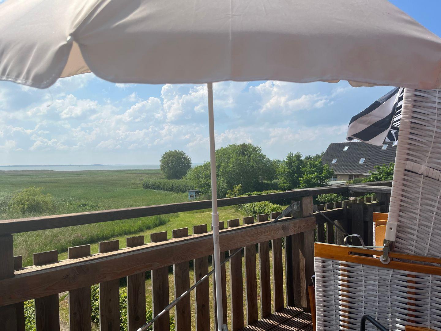 Ein besonderes Highlight ist der 15 m² große Südbalkon, von dem aus Sie einen beeindruckenden Blick auf das Achterwasser genießen können.