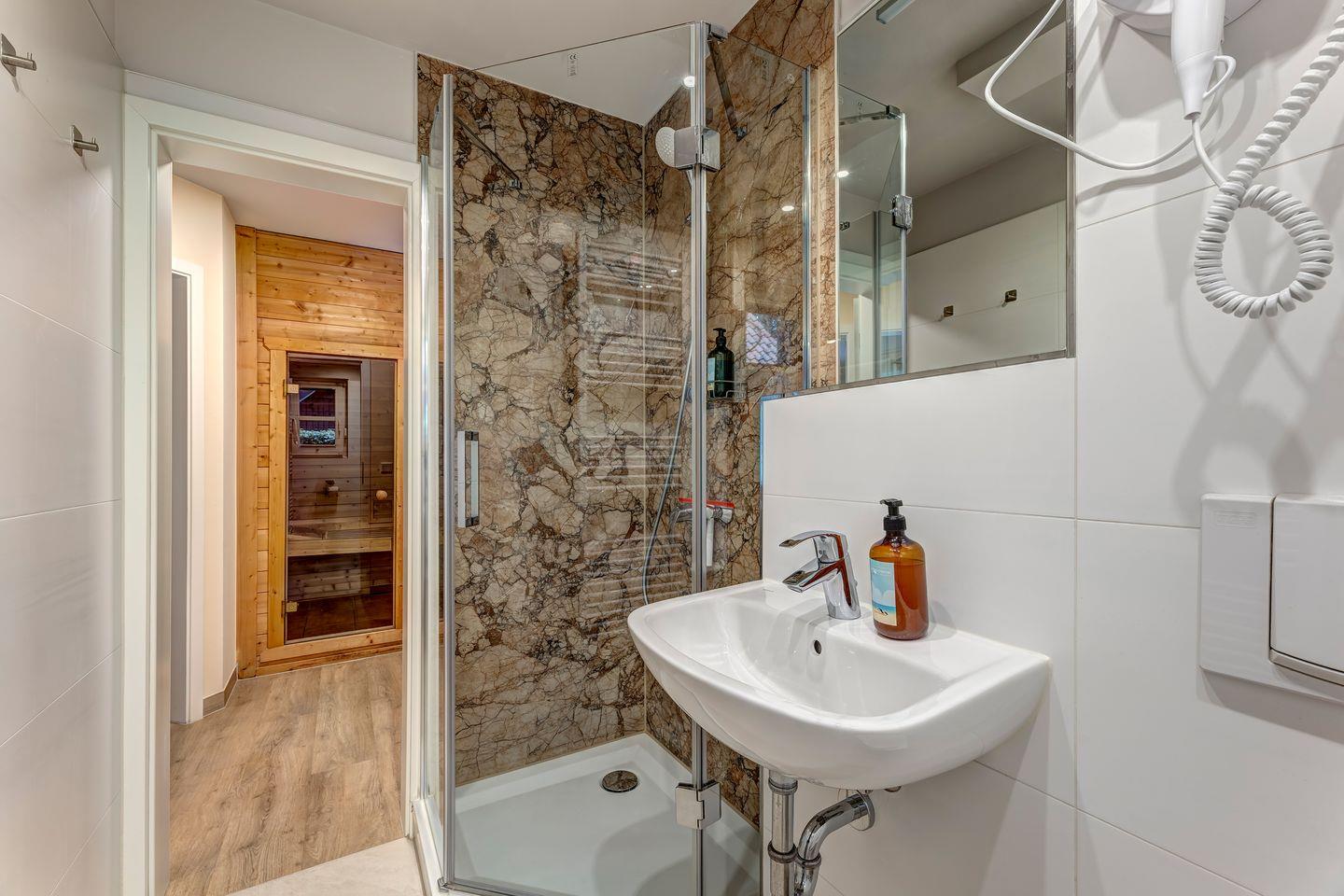 Die 75m² Ferienwohnung liegt im Erdgeschoss und verfügt über einen separaten Eingang .