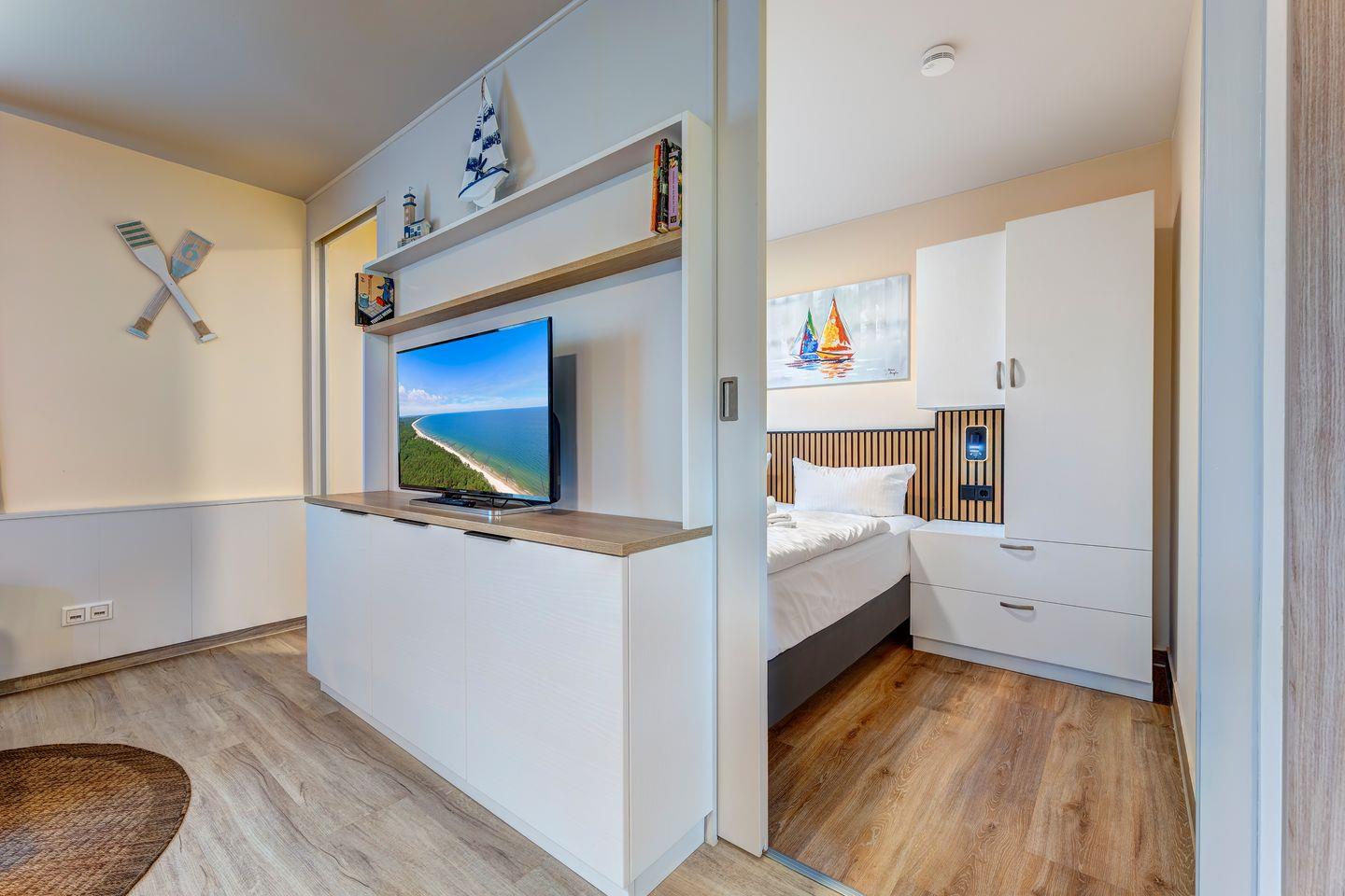 • durch Schiebetüren getrennten Wohn- und Schlafbereich