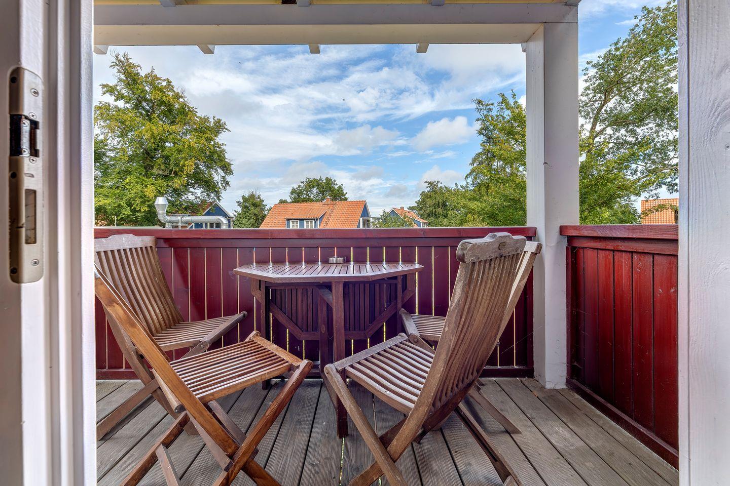 • überdachter Balkon mit Gartenmöbeln