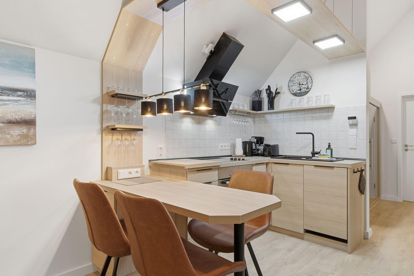 • Backofen, Mikrowelle, Wasserkocher, Cerankochfeld, Kaffeemaschine und Toaster
