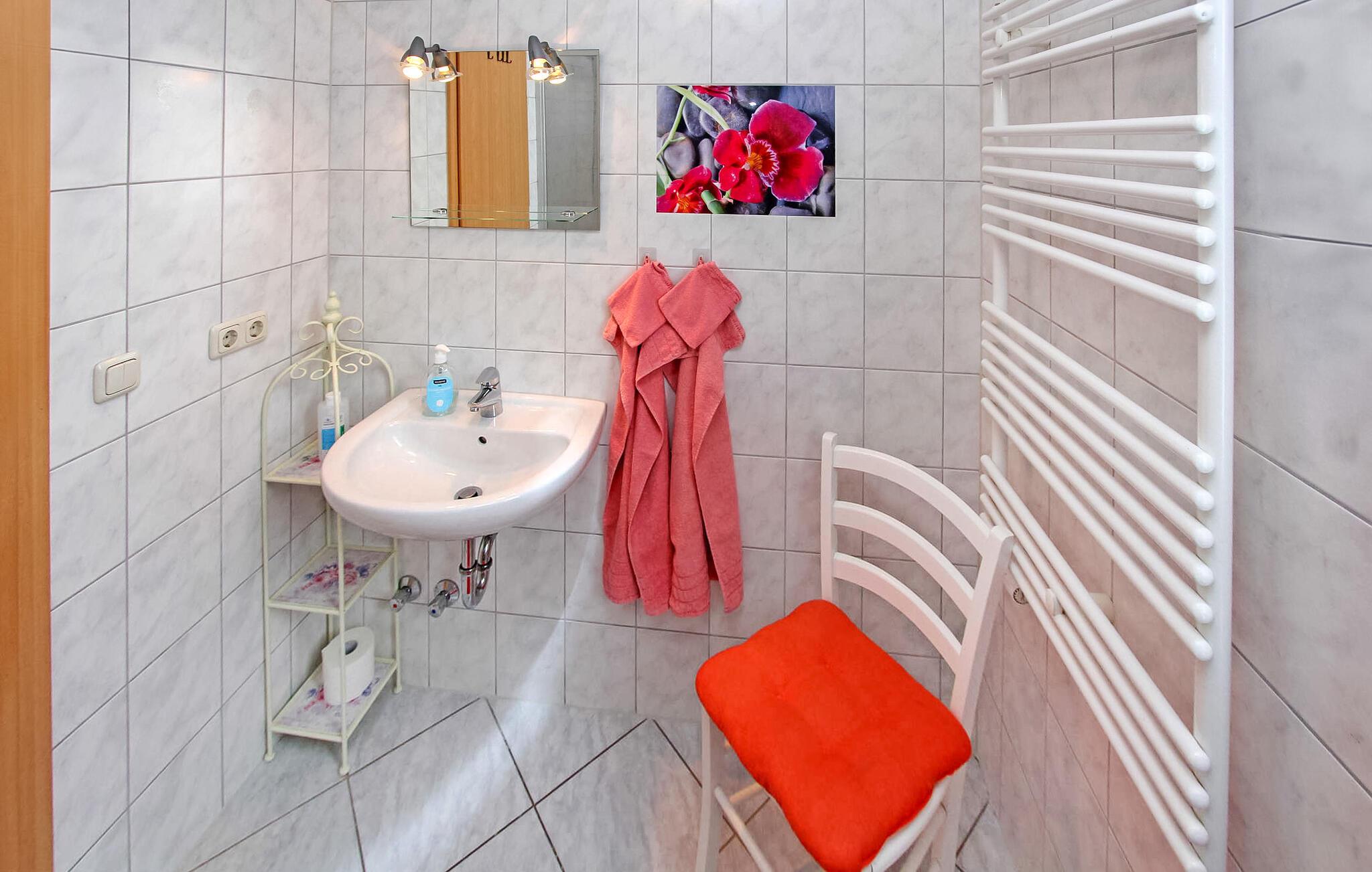 Die Ferienwohnung befindet sich im OG des Ferienhauses. Zugang über separate Außentreppe. Ausstattung mit Wohnraum (Polstersitzecke einschl. Schlafcouch, TV, Radio), Schlafraum (Doppelbett), Küche mit Küchenzeile und Essplatz, DU/WC, Zentralheizung, Sitzecke im Freien. Die Unterkunft ist nicht für Babys oder Kleinkinder geeignet.