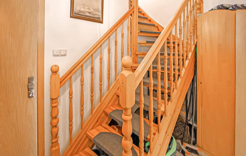 Die Wohnung verfügt über ein Wohnzimmer (Polstermöbel, teilweise mit Schlaffunktion (Erdgeschoss), Flachbildfernseher), ein Schlafzimmer (Doppelbett, Flachbildfernseher). Im Obergeschoss gibt es eine zusätzliche Schlafnische mit 2 Einzelbetten. Die Wohnung verfügt über eine separate Küche (Esstisch, Elektroherd mit Backofen, Kühlschrank mit Gefrierfach, Mikrowelle, diverse Küchengeräte) und ein Badezimmer mit Dusche/WC. Draußen gibt es eine kleine überdachte Sitzecke im Eingangsbereich und einen Strandkorb. Ein privater Parkplatz pro Wohnung, ca. 8 Gehminuten entfernt (3,00 EUR/Tag).
