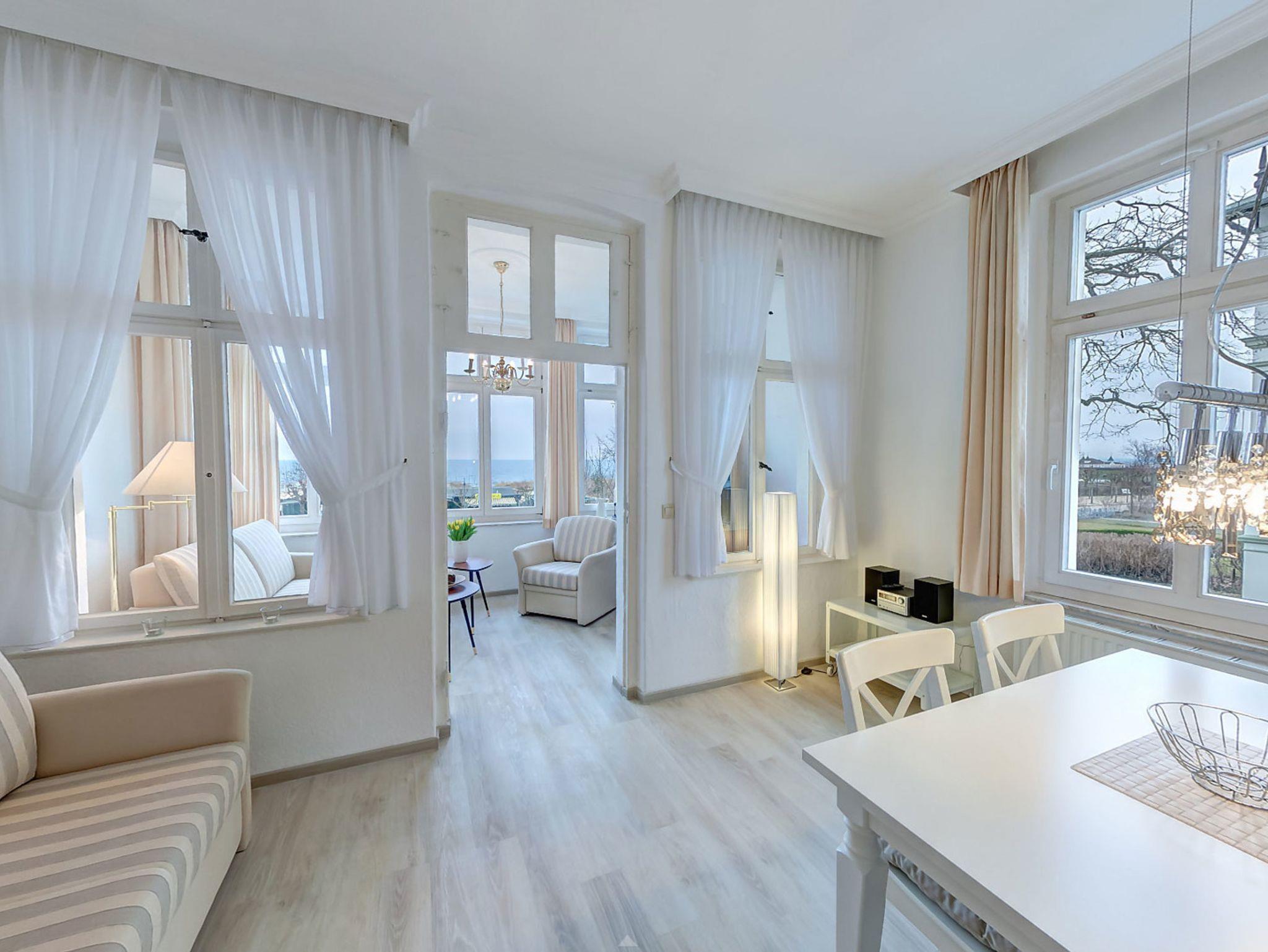 Charmantes Apartment mit Seeblick direkt an der Strandpromenade von Ahlbeck, nur 50 m vom Strand entfernt.