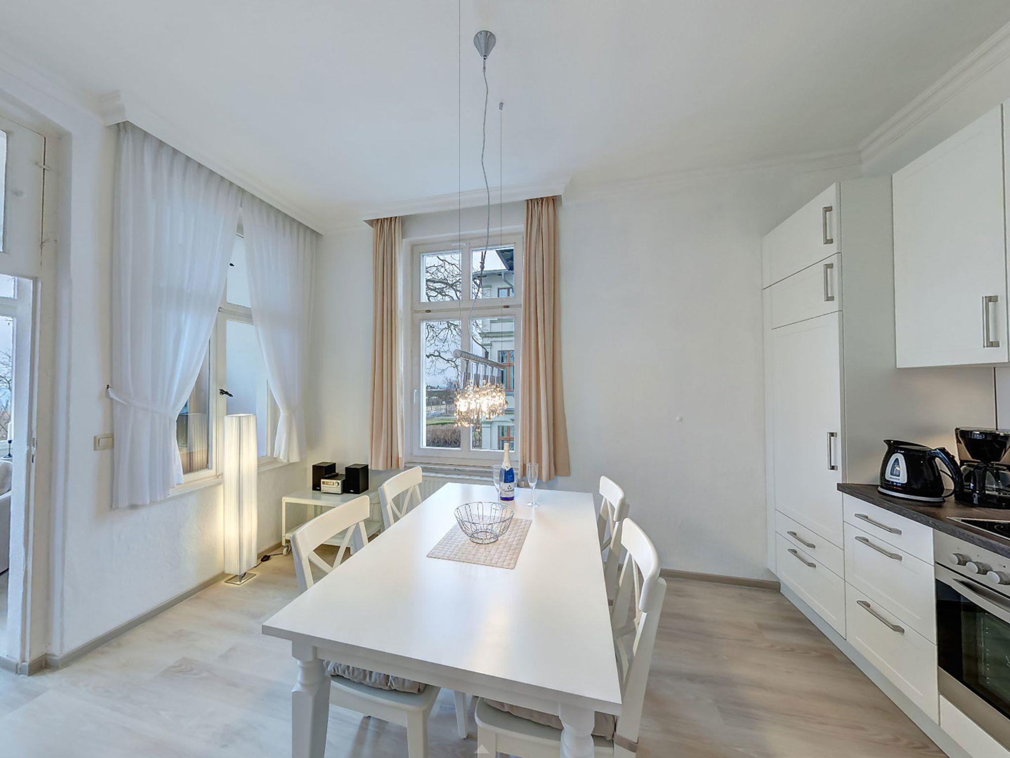 Direkt an der Strandpromenade mit herrlichem SEEBLICK! Chices und geräumiges 2 - Zimmer - Apartment mit moderner, eleganter und guter Ausstattung. Separates Schlafzimmer, große komfortable Küche mit Essplatz, Duschbad, Veranda als Wohnraum mit direktem Seeblick, Südbalkon mit Sonne bis abends. Die Wohnung verfügt über einen Pkw-Stellplatz. In der Garage können Fahrräder und ähnliches untergestellt werden. Im Haus gibt es eine Sauna. Von der Villa Germania aus können Sie das Ortszentrum und die bekannte Ahlbecker Seebrücke in ca. 3 Minuten zu Fuß erreichen. Zum Strand sind es 50 m.