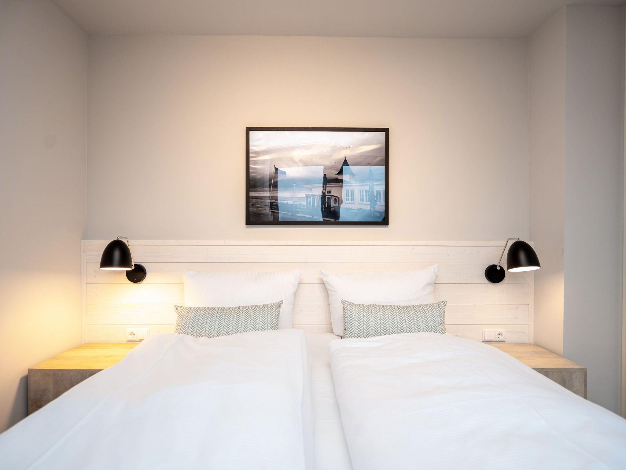 Die 2024 fertig gestellte Strandterrasse liegt direkt an der belebten Strandpromenade und bietet einen einzigartigen Ausblick auf die Grand Dame der historischen Seebrücken sowie die historische Konzertmuschel, einem beliebten Treffpunkt für Kunst und Kultur. Dahinter liegt die Ostsee ? ein Panorama, das zu den schönsten in den Kaiserbädern gehört. Es ist wie das Abtauchen in eine andere Zeit. In eine Zeit, in der man mit Stock, Sonnenschirm und Hut fürs ?Sehen und gesehen werden? über die Promenade schlenderte; aber auch in eine Zeit, in der ? damals wie heute ? Zeit einmal für eine kurze Weile keine Rolle spielt. Weil man angekommen ist im Loslassen, Entspannen und Genießen. Es ist dieser besondere Geruch nach Meeresluft und Freiheit, der in Erinnerung bleibt. Dazu die Bilder, die man mitnimmt. Von langen Strandspaziergängen, vom Lachen in fröhlich schäumenden Ostseewellen, von der Zeit in einem wunderschönen Urlaubsdomizil. Denn genau das ist die Strandterrasse mit ihren 56 modernen und exklusiven Ferienappartements direkt gegenüber der Ahlbecker Seebrücke. Die Ein-, Zwei- oder Dreizimmerwohnungen ? zwischen 40 und 70 Quadratmeter groß ? sind von einer Innenarchitektin gemeinsam mit unserem Erfahrungsschatz an Gästewünschen mit viel Liebe zum Detail und ganz individuell konzipiert worden. Entspannung und Wohlfühlen stehen an erster Stelle. Alles ist aufeinander abgestimmt und sorgt für eine gemütliche Atmosphäre. Wählen Sie zwischen einem Domizil in einem hellen, sandfarbenen Designkonzept oder einem Appartement mit anthrazitfarbenen Farbakzenten. Alle Appartements verfügen gleichermaßen über eine stilvolle und komfortable Einrichtung, die passgenau angefertigt worden ist, sowie über moderne Küchen und Bäder. Jedem Schlafzimmer ist ein eigenes Bad mit Dusche zugeordnet (außer App. B4.5). Die Appartements besitzen fast alle einen Balkon ? viele schauen sogar zur Ostsee hinaus. Die meisten Feriendomizile haben einen Elektrokamin und Infrarotsaunen. Im Erdgeschoss befindet sich ein separater Gemeinschaftsraum für Fahrräder. Außerdem besteht die Möglichkeit, im Gemeinschaftswaschraum 2 Waschmaschinen [&] Trockner zu nutzen. Ergänzt wird das Angebot durch eine Gemeinschaftssauna, die täglich von 11:00 bis 22:00 Uhr nutzbar ist. In der Tiefgarage (Einfahrtshöhe 2,03 Meter) steht für jede Wohnung 1 Pkw-Stellplatz zur Verfügung. Ist alles zur Zufriedenheit untergebracht? Dann kann der Urlaub ja beginnen. Und beim Blick vom Balkon über die Ostsee treffen sich zum Sonnenaufgang das Heute und das Damals. Gelassenheit legt sich beim Gang hinunter an den Strand auf die Seele. Jetzt darf die Zeit stehenbleiben.