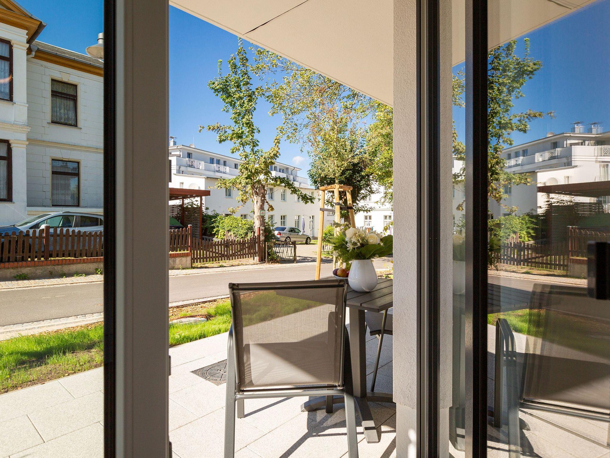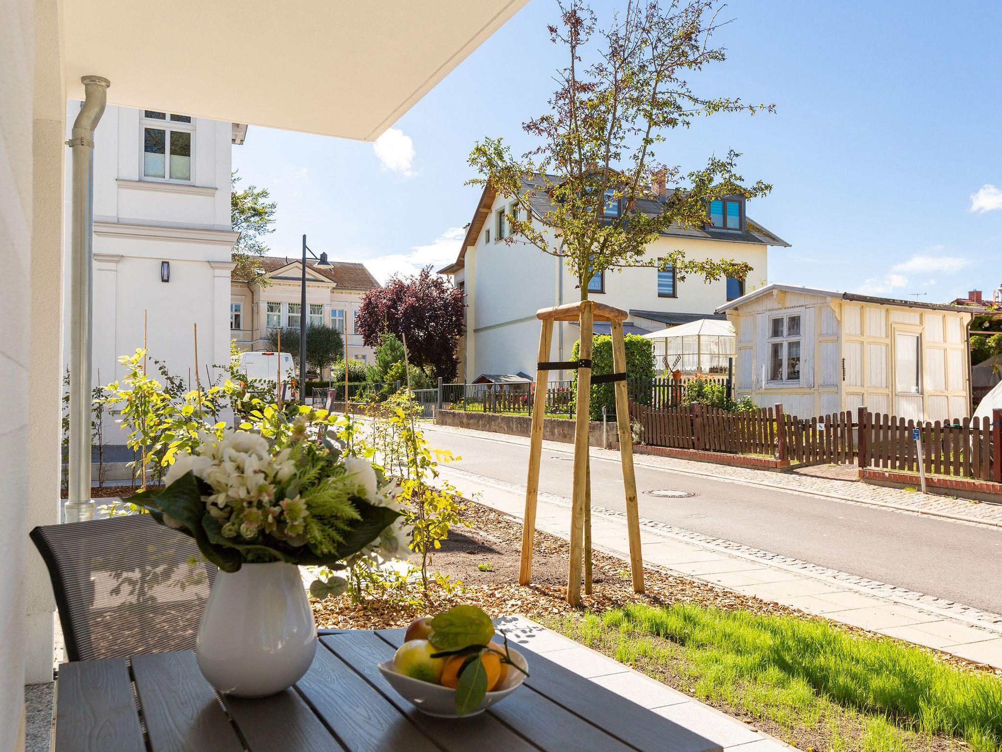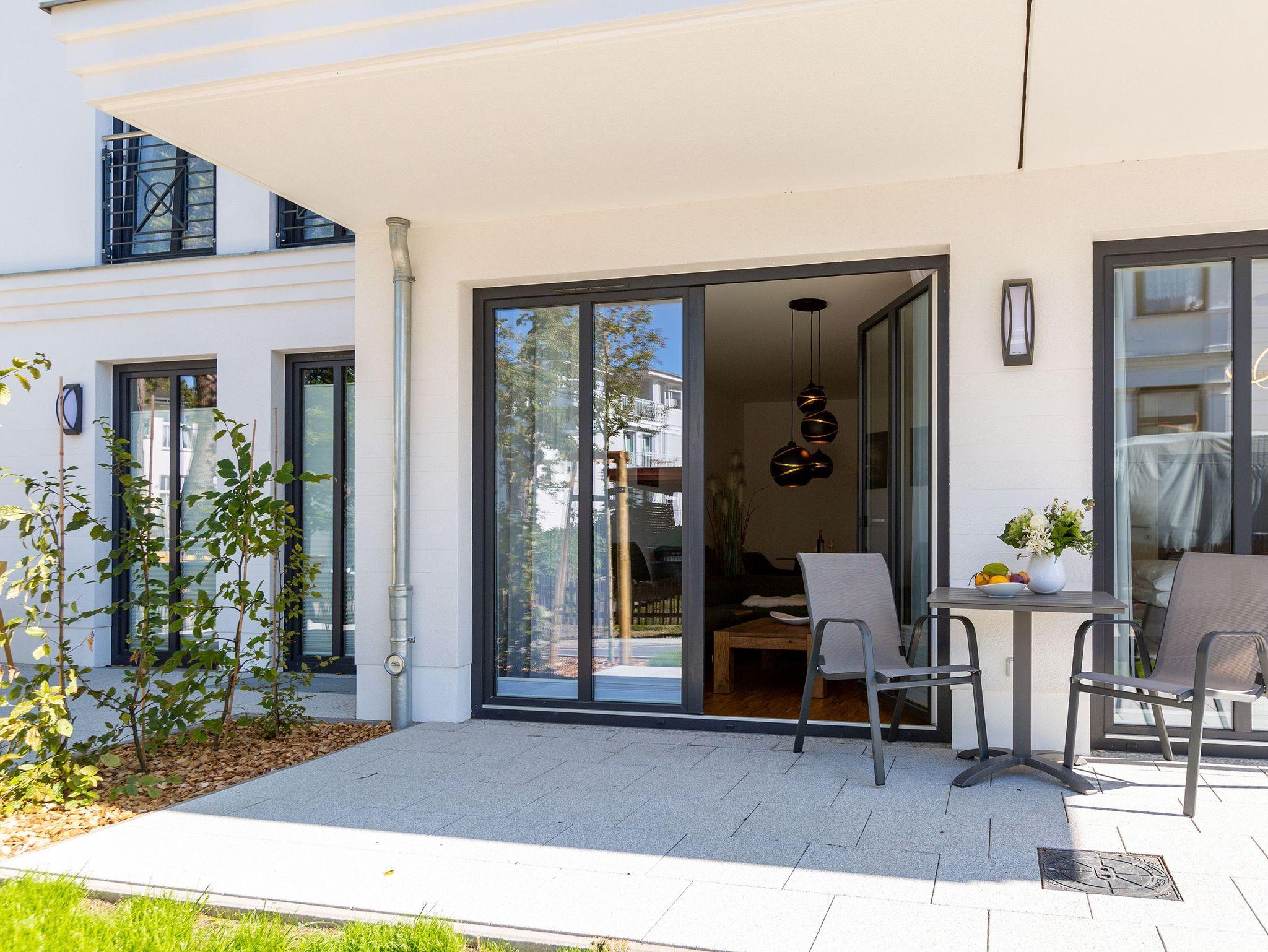 Stilvolles 2-Zimmer-Appartement mit Terrasse, Sauna und Kamin im Herzen von Ahlbeck, nur 300 m vom Strand entfernt.