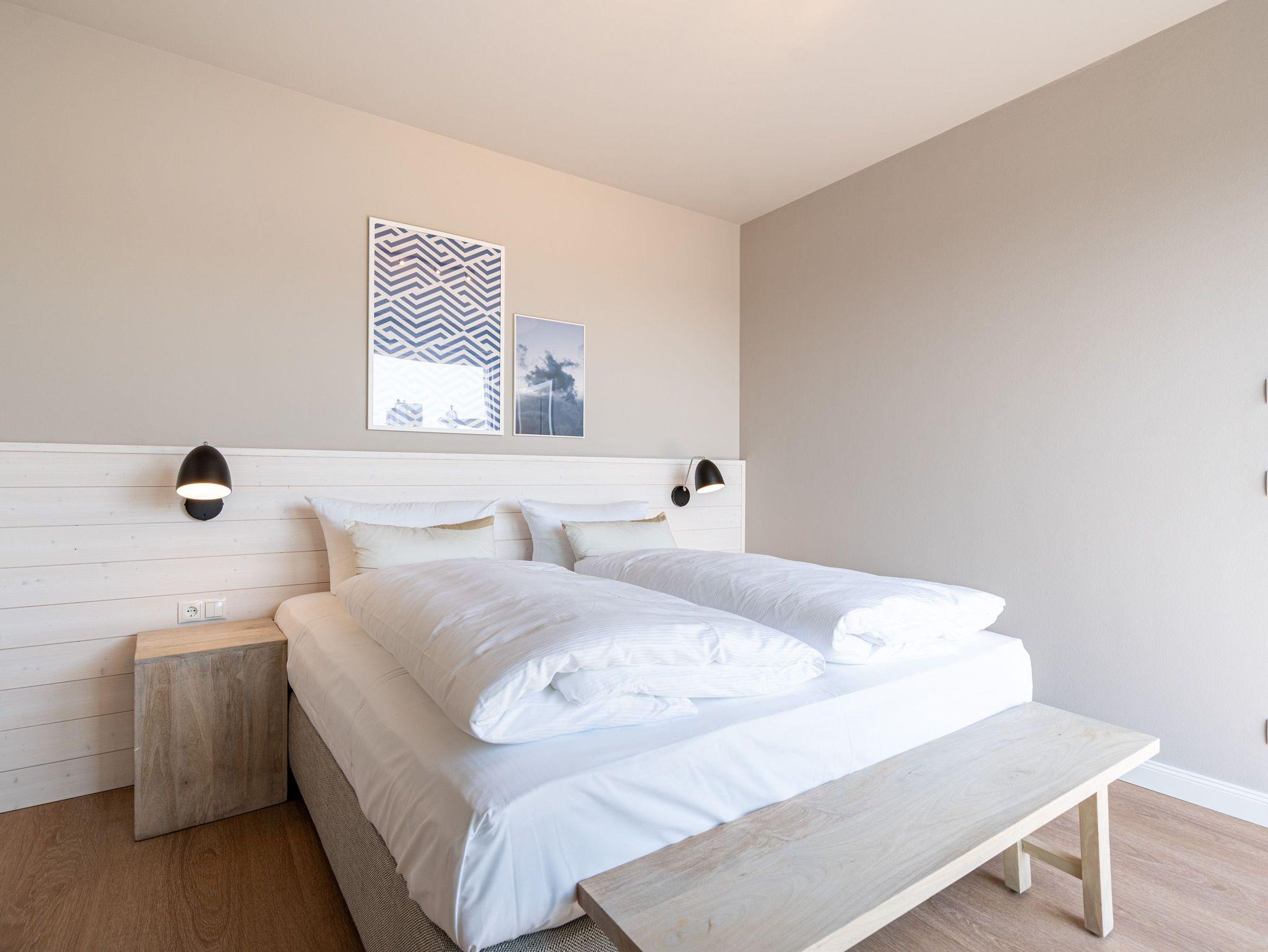 Die 2024 fertig gestellte Strandterrasse liegt direkt an der belebten Strandpromenade und bietet einen einzigartigen Ausblick auf die Grand Dame der historischen Seebrücken sowie die historische Konzertmuschel, einem beliebten Treffpunkt für Kunst und Kultur. Dahinter liegt die Ostsee ? ein Panorama, das zu den schönsten in den Kaiserbädern gehört. Es ist wie das Abtauchen in eine andere Zeit. In eine Zeit, in der man mit Stock, Sonnenschirm und Hut fürs „Sehen und gesehen werden“ über die Promenade schlenderte; aber auch in eine Zeit, in der ? damals wie heute ? Zeit einmal für eine kurze Weile keine Rolle spielt. Weil man angekommen ist im Loslassen, Entspannen und Genießen. Es ist dieser besondere Geruch nach Meeresluft und Freiheit, der in Erinnerung bleibt. Dazu die Bilder, die man mitnimmt. Von langen Strandspaziergängen, vom Lachen in fröhlich schäumenden Ostseewellen, von der Zeit in einem wunderschönen Urlaubsdomizil. Denn genau das ist die Strandterrasse mit ihren 56 modernen und exklusiven Ferienappartements direkt gegenüber der Ahlbecker Seebrücke. Die Ein-, Zwei- oder Dreizimmerwohnungen ? zwischen 40 und 70 Quadratmeter groß ? sind von einer Innenarchitektin gemeinsam mit unserem Erfahrungsschatz an Gästewünschen mit viel Liebe zum Detail und ganz individuell konzipiert worden. Entspannung und Wohlfühlen stehen an erster Stelle. Alles ist aufeinander abgestimmt und sorgt für eine gemütliche Atmosphäre. Wählen Sie zwischen einem Domizil in einem hellen, sandfarbenen Designkonzept oder einem Appartement mit anthrazitfarbenen Farbakzenten. Alle Appartements verfügen gleichermaßen über eine stilvolle und komfortable Einrichtung, die passgenau angefertigt worden ist, sowie über moderne Küchen und Bäder. Jedem Schlafzimmer ist ein eigenes Bad mit Dusche zugeordnet (außer App. B4.5). Die Appartements besitzen fast alle einen Balkon ? viele schauen sogar zur Ostsee hinaus. Die meisten Feriendomizile haben einen Elektrokamin und Infrarotsaunen. Im Erdgeschoss befindet sich ein separater Gemeinschaftsraum für Fahrräder. Außerdem besteht die Möglichkeit, im Gemeinschaftswaschraum 2 Waschmaschinen [&] Trockner zu nutzen. Ergänzt wird das Angebot durch eine Gemeinschaftssauna, die täglich von 11:00 bis 22:00 Uhr nutzbar ist. In der Tiefgarage (Einfahrtshöhe 2,03 Meter) steht für jede Wohnung 1 Pkw-Stellplatz zur Verfügung. Ist alles zur Zufriedenheit untergebracht? Dann kann der Urlaub ja beginnen. Und beim Blick vom Balkon über die Ostsee treffen sich zum Sonnenaufgang das Heute und das Damals. Gelassenheit legt sich beim Gang hinunter an den Strand auf die Seele. Jetzt darf die Zeit stehenbleiben.