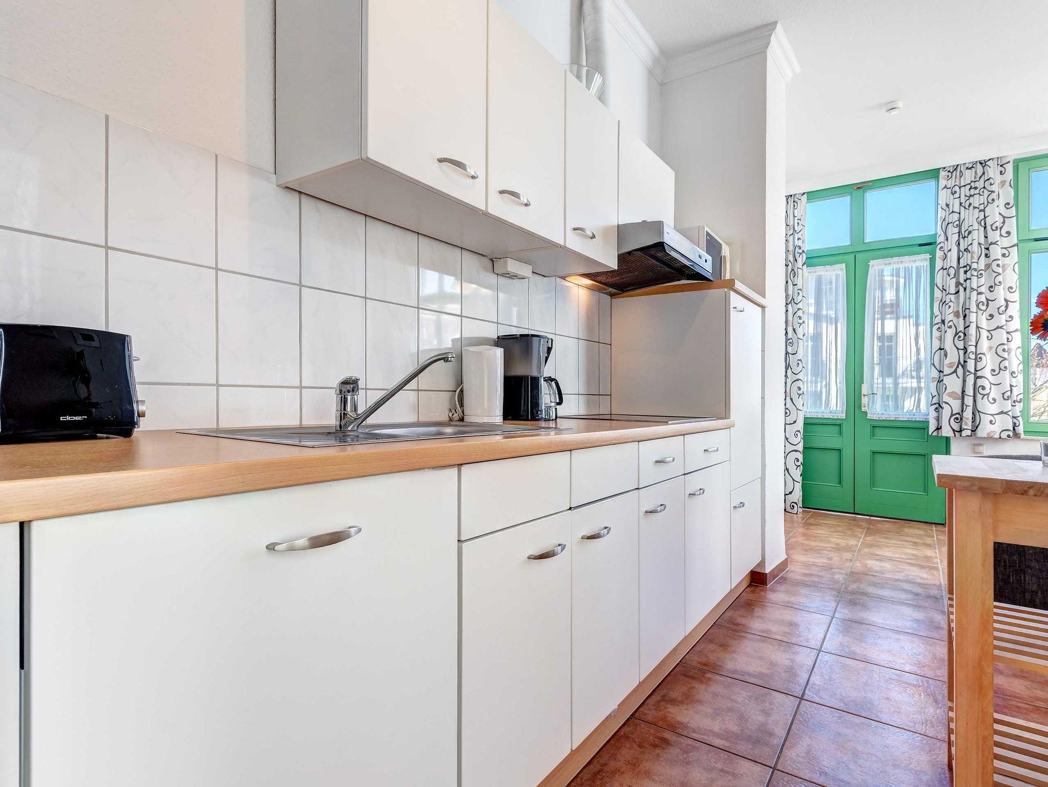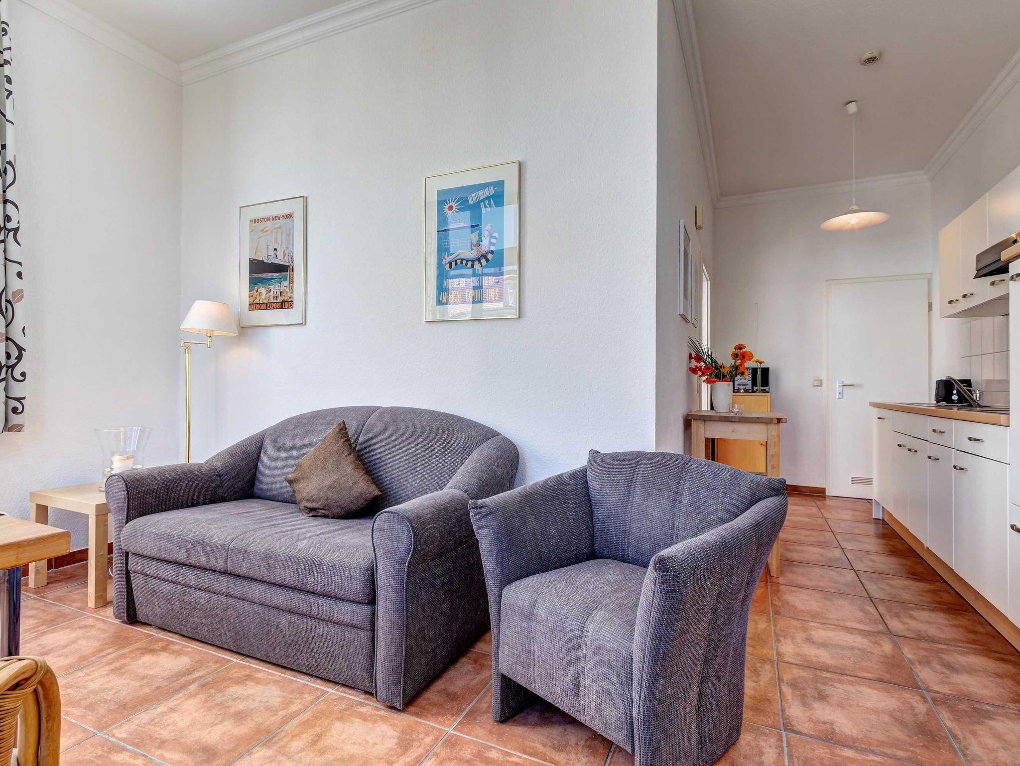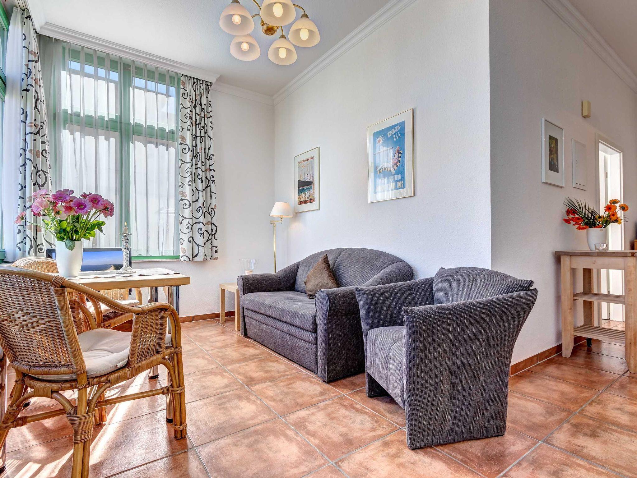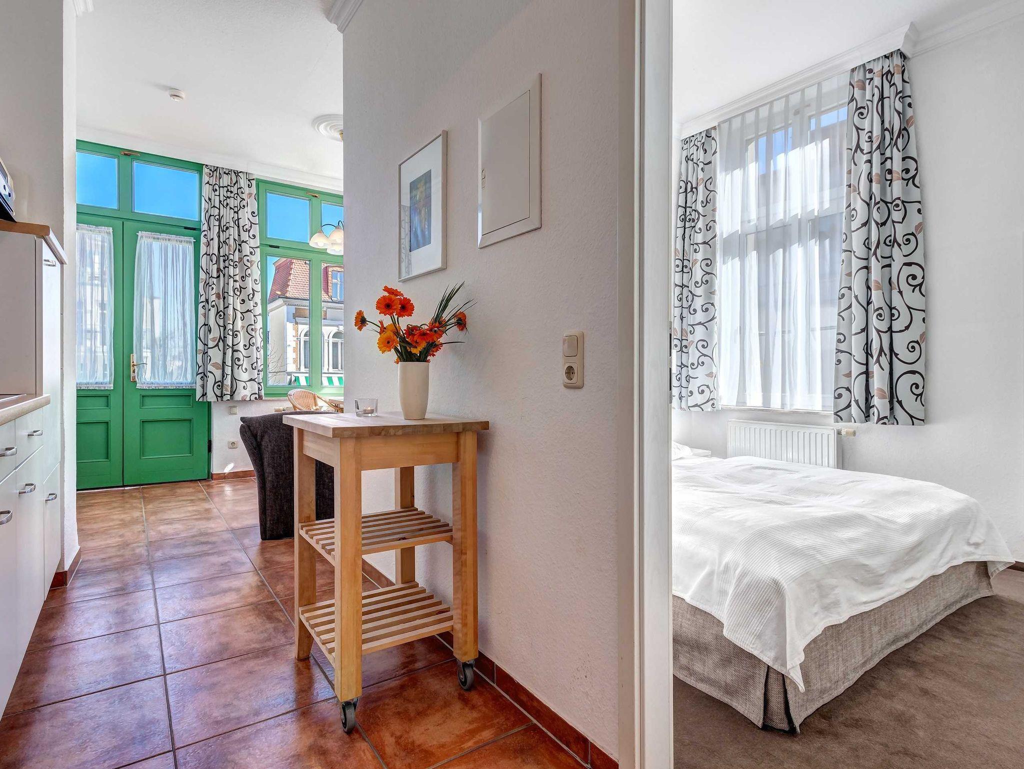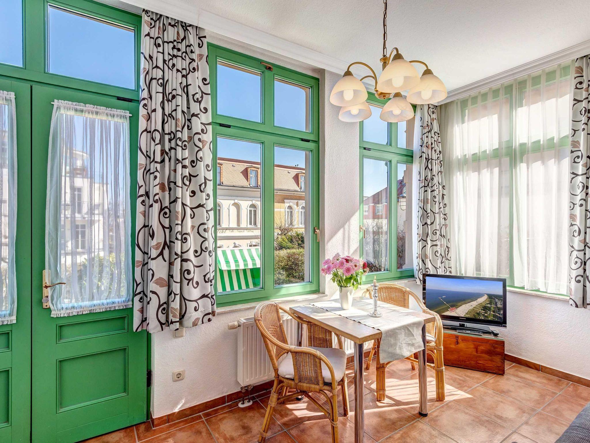 Das gemütliche 2-Zimmer-Appartement Nr. 5 hat einen separaten Eingang und befindet sich im Erdgeschoss der Villa Ostseewarte im Seebad Ahlbeck nur 2 Minuten vom Ostseestrand entfernt. Es verfügt über ein separates Schlafzimmer mit einem Doppelbett und einen Wohnbereich mit gemütlicher Sitzgruppe, auf welcher eine Aufbettung für eine dritte Person vorgenommen werden kann. Die integrierte Küchenzeile ist mit Geschirrspüler, Mikrowelle, Kaffeemaschine, Wasserkocher und Toaster ausgestattet. Das Bad verfügt über Dusche und WC. Zum Appartement gehört darüber hinaus eine große Terrasse mit Gartenmöbeln und einem Strandkorb. Ein Pkw-Stellplatz steht Ihnen auf dem Grundstück kostenfrei zur Verfügung und Ihre Fahrräder können Sie ebenfalls auf dem Grundstück in einem separaten Abstellraum unterbringen. Alle Wohnungen in der Villa Ostseewarte haben passwortgeschütztem DSL-WLAN Internetzugang (gerätegebunden, Euro 1,50 pro Tag und Gerät). Eine Waschmaschine können Sie gegen Gebühr gern nutzen (Münzgerät).