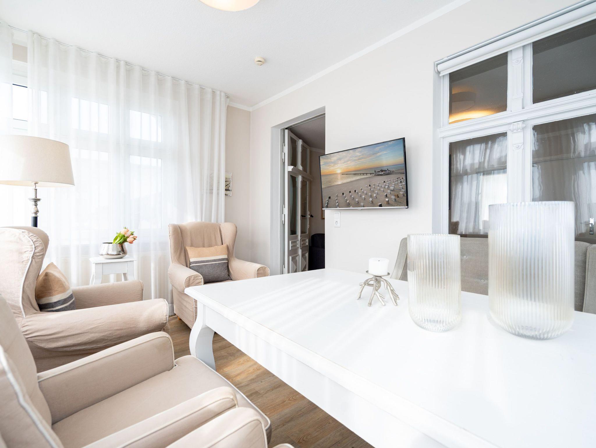 Moderne 2-Zimmer-Ferienwohnung mit Meerblick in der Villa Albertine, nur 20m von der Strandpromenade Ahlbeck entfernt.