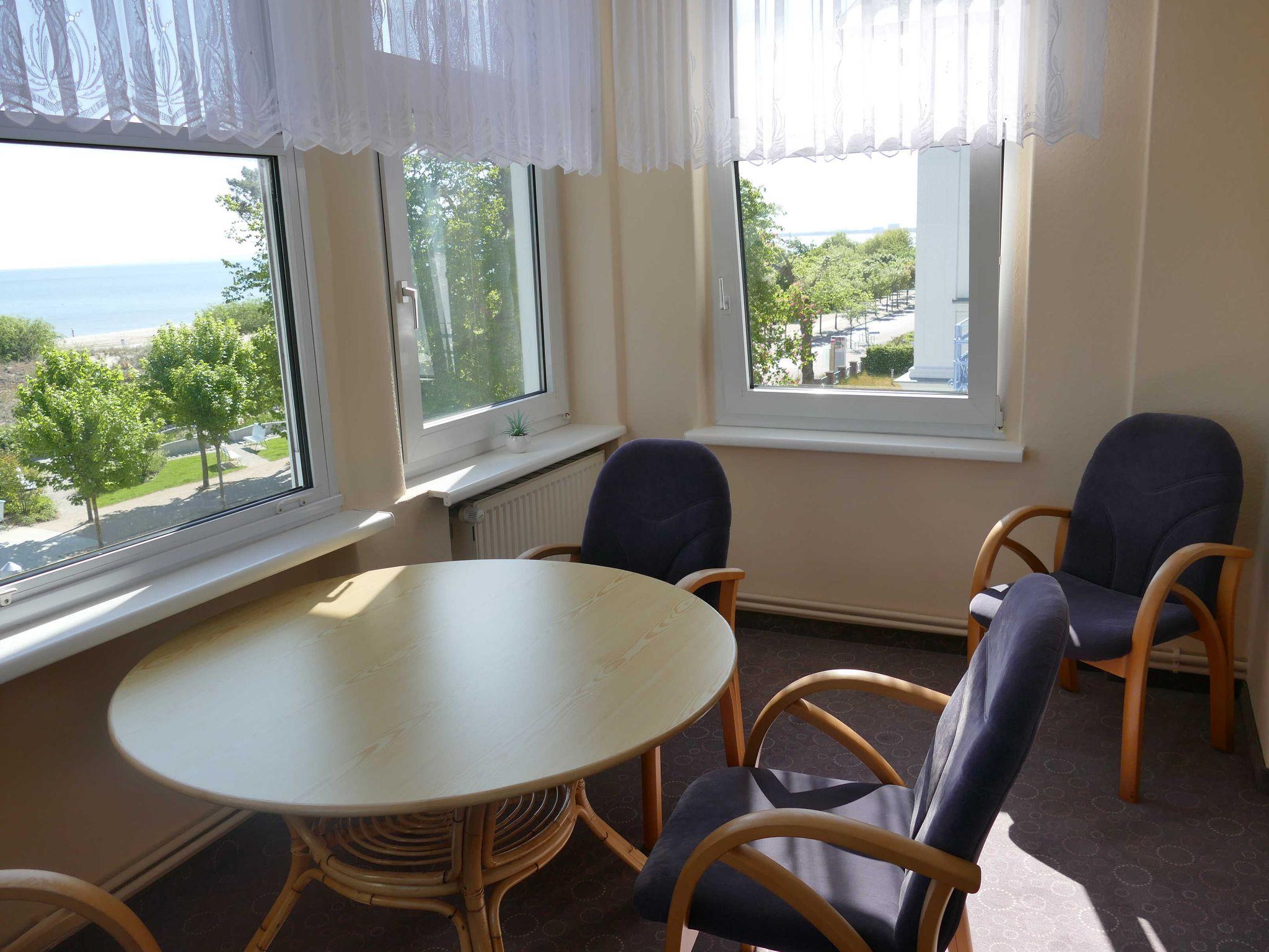 Genießen Sie die großzügige Wohnung Haus Feldmann direkt an der Ahlbecker Strandpromenade mit Meerblick und Balkon.