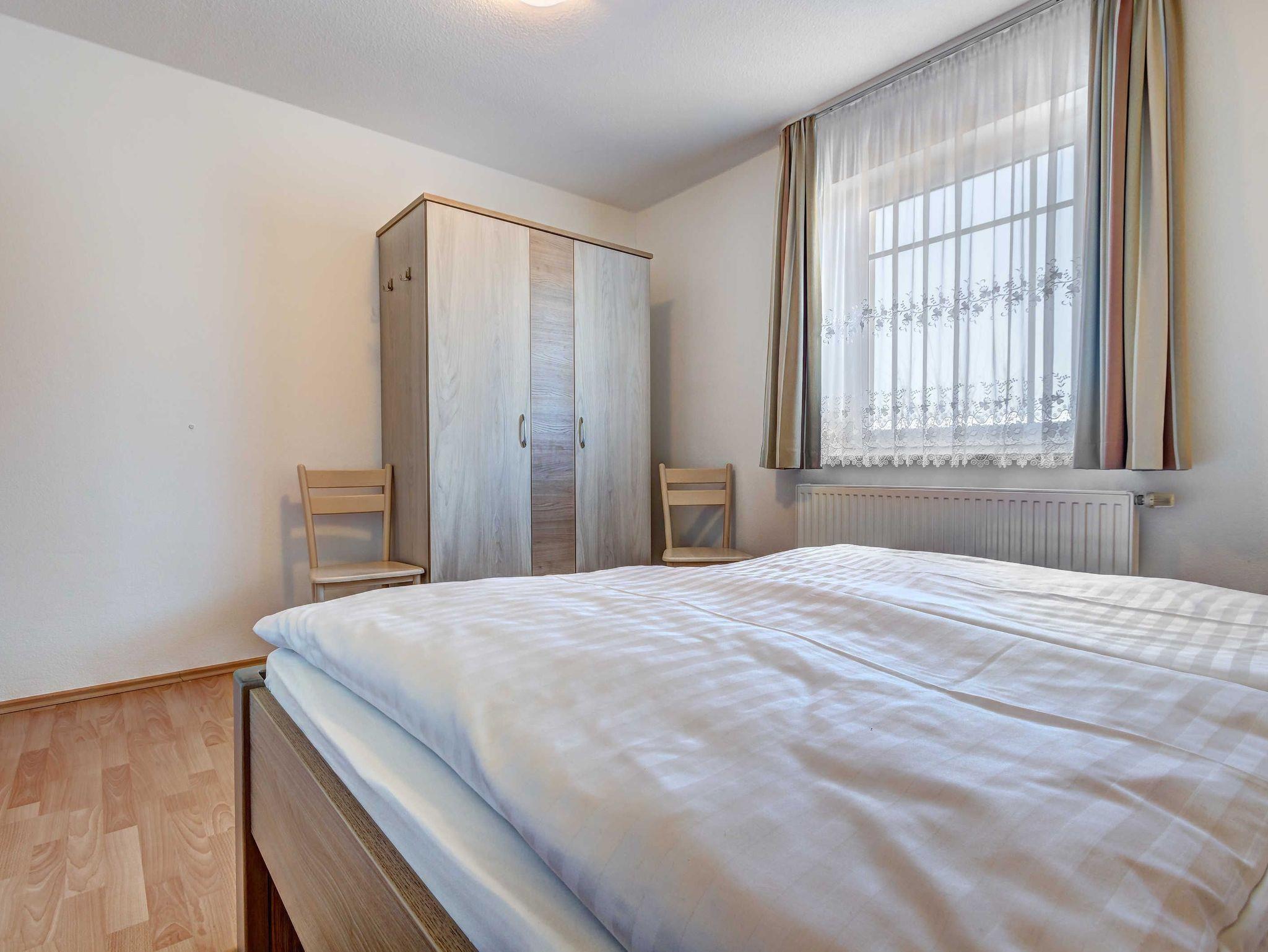 Die Ferienwohnung ?Claudia? befindet sich im 2. Obergeschoss mit Blick in den Garten und ist ca. 72m² groß. Im gemütlichen Wohnbereich befinden sich neben der Couch und dem Flachbildfernseher auch die offene Küchenzeile mit Backofen, Herd, Kühl-/Gefrierschrank, Mikrowelle, Kaffeemaschine, Toaster, Wasser- und Eierkocher und der Essbereich. Vom Wohnzimmer aus erreichen Sie den möblierten Balkon. Im Schlafzimmer befinden sich ein Doppelbett und ein Kleiderschrank mit Tresor für Ihre Wertsachen. Über eine Raumspartreppe erreichen Sie das 2. Schlafzimmer mit Doppelbett, einem Kleiderschrank sowie einen kleinen Tisch mit 2 Stühlen. Das Badezimmer ist mit einer Dusche, einem Fön und einem Kosmetikspiegel ausgestattet, die Fußbodenheizung sorgt für angenehme Wärme. Die Erstausstattung Bettwäsche und Handtücher sind bereits im Preis enthalten. Die Ferienwohnung verfügt über Internetzugang via W-LAN ist kostenfrei nutzbar.