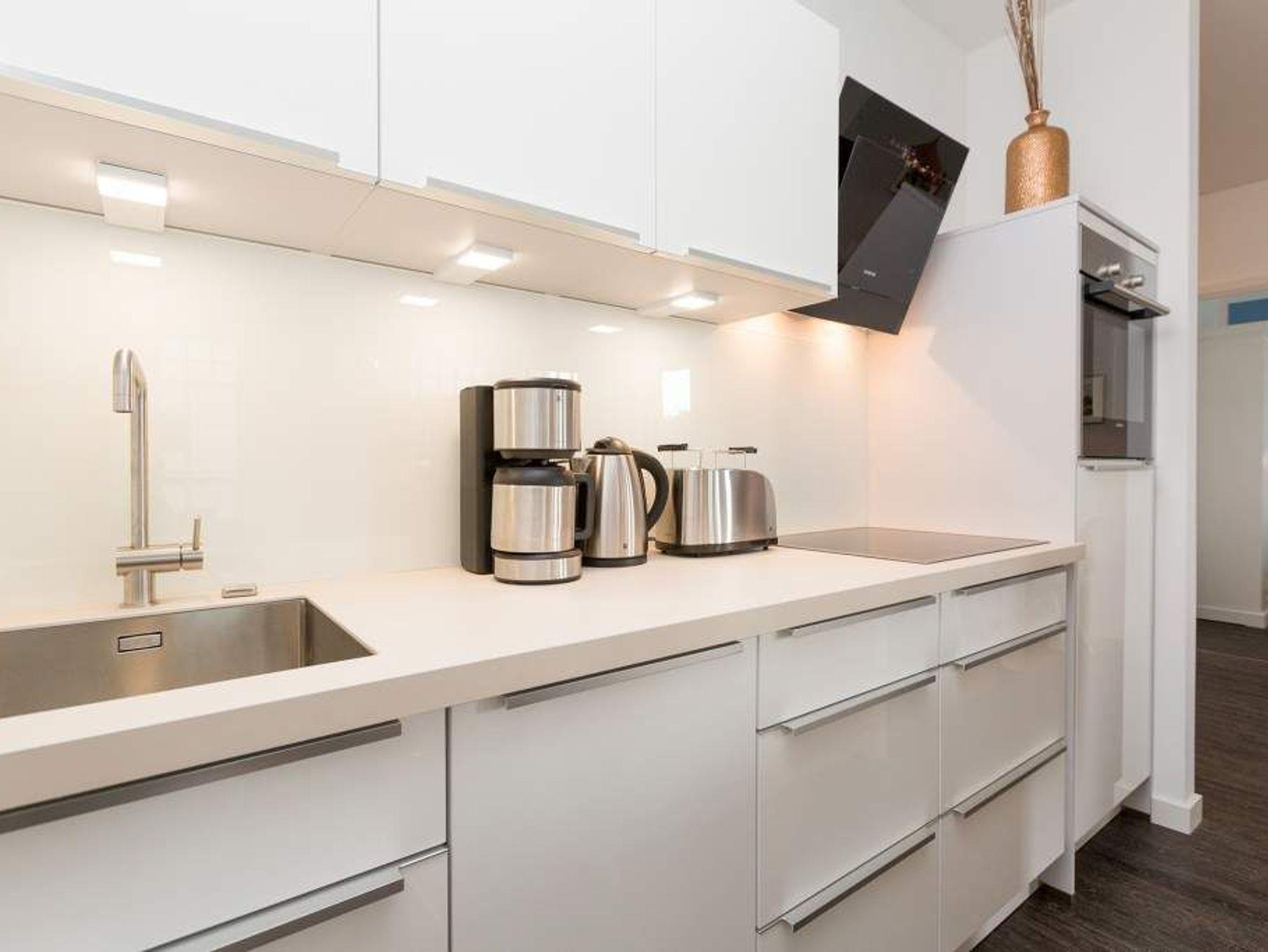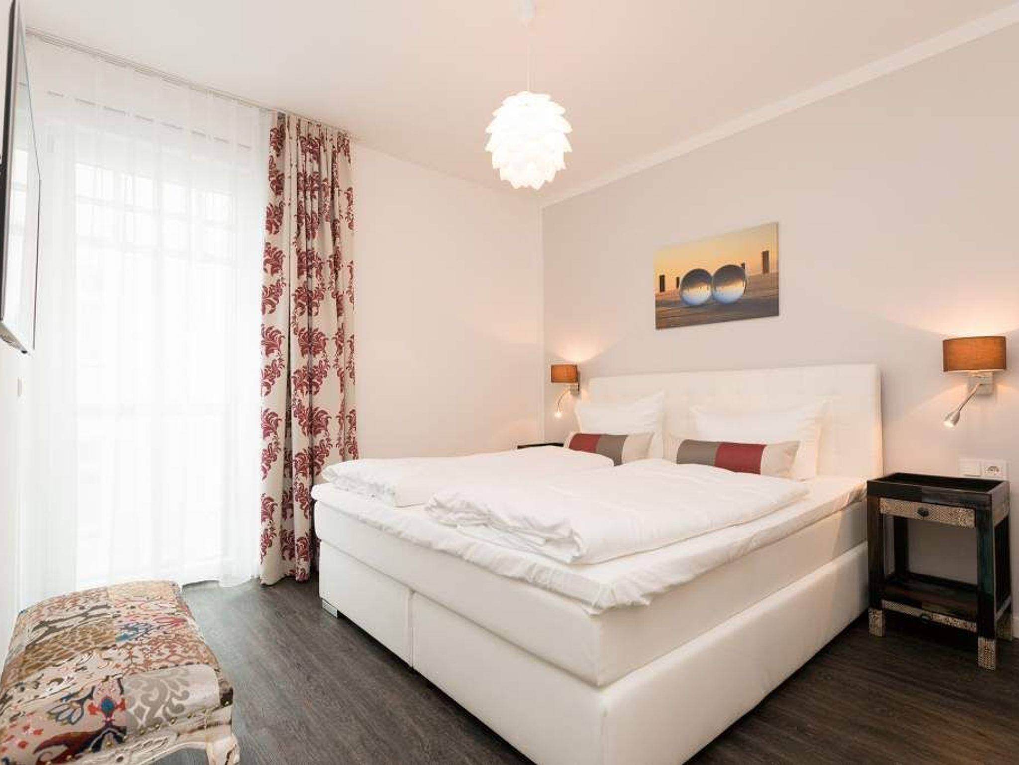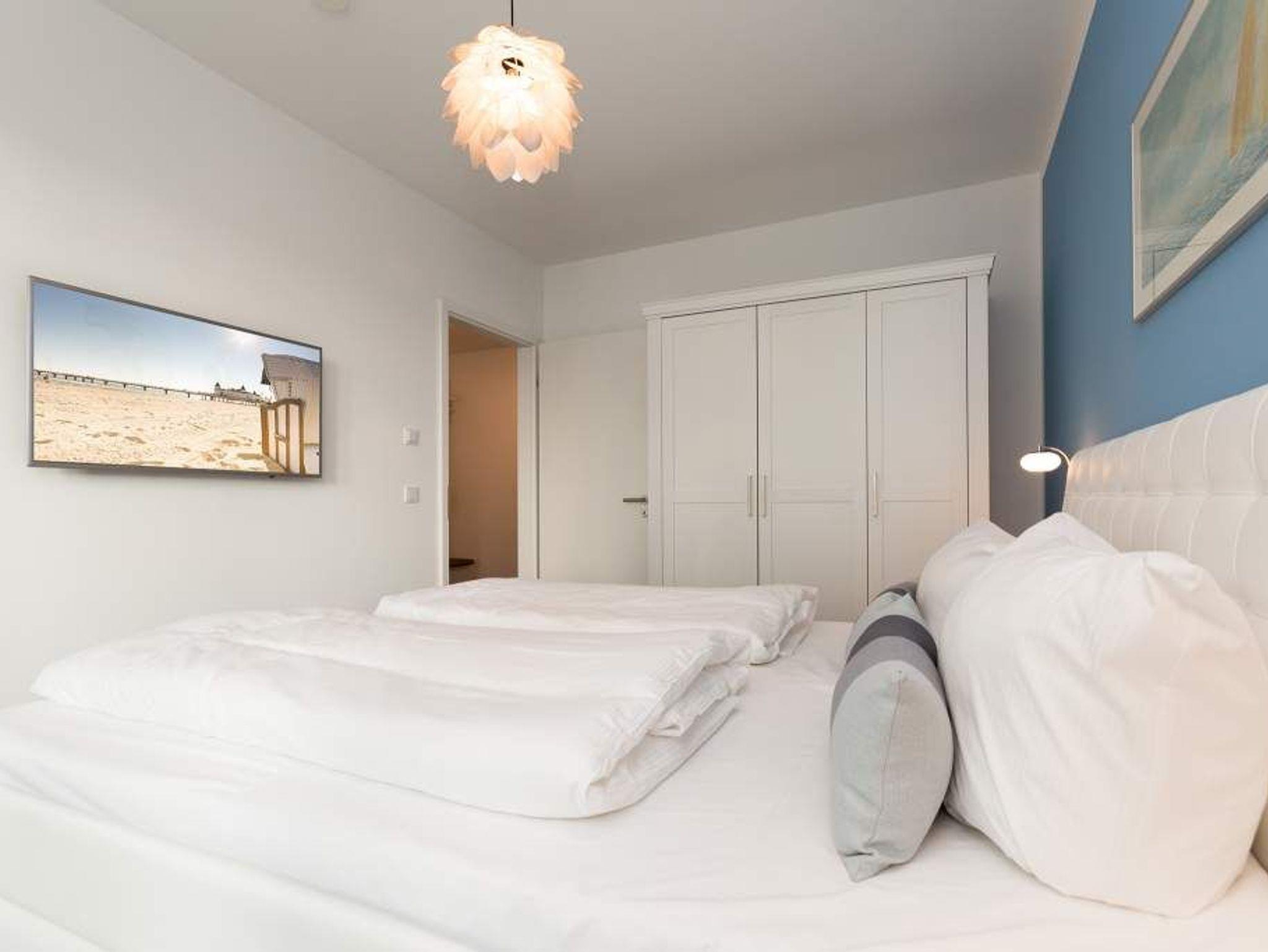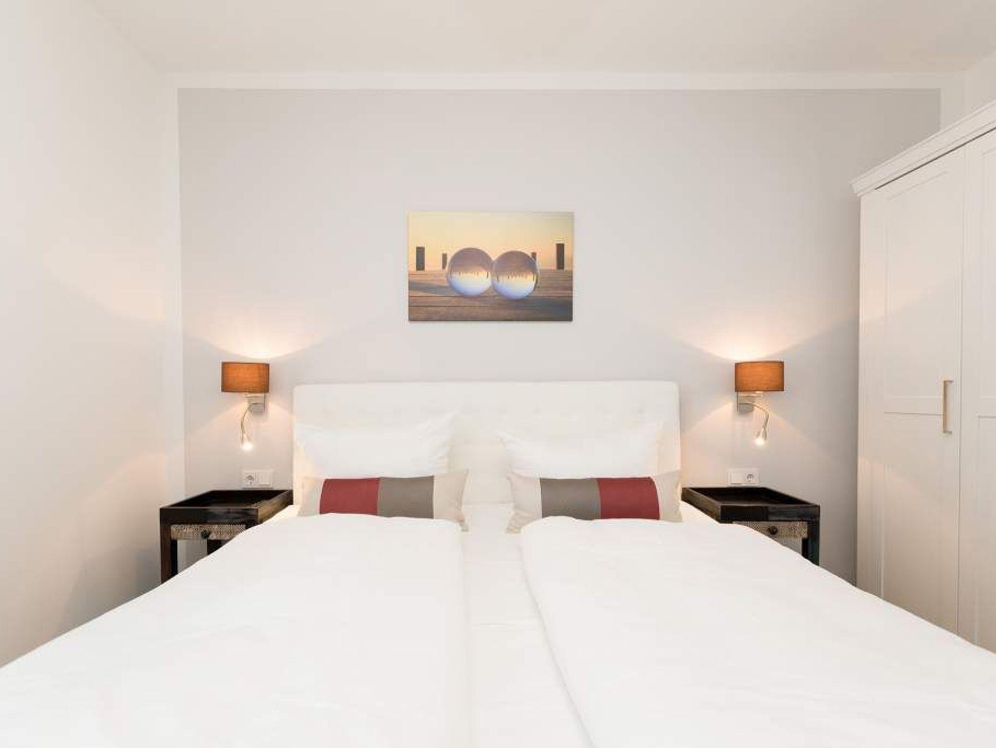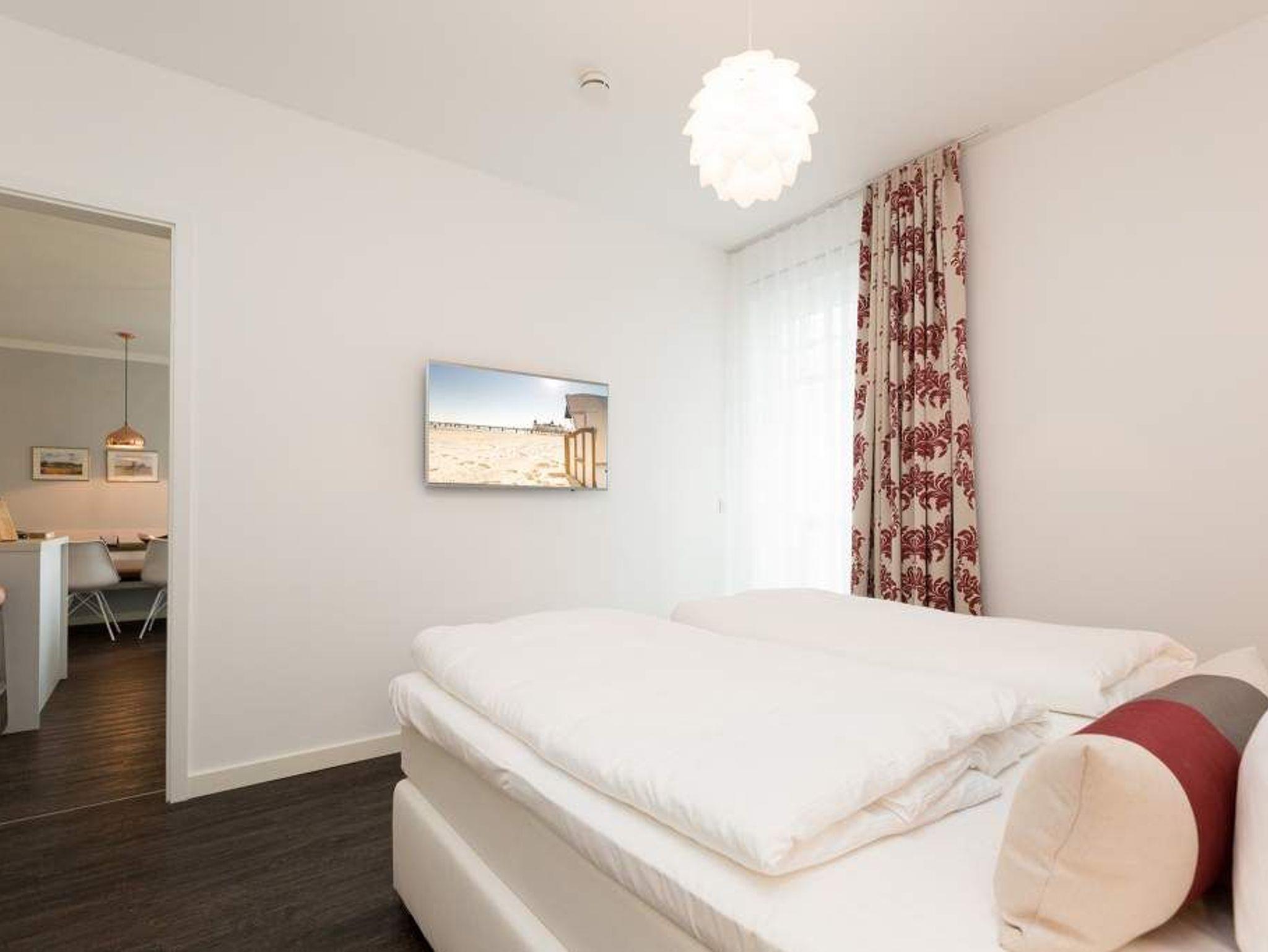 Schon beim Frühstück auf dem schönen Balkon legt sich das Morgenglitzern der Ostsee wie tausend Diamanten in Ihren Tag. Luxus pur. Und das direkt vor der Haustür. Lichtdurchflutet und hell sind die 73 Quadratmeter im ersten Obergeschoss der Villa Westend, machen Ihren Urlaub zu einer exklusiven Auszeit. Hier fühlt man sich angekommen. Ab der ersten Minute. In diesem 3-Zimmer-Appartement können sich vier Erwachsene eine wunderschöne Zeit machen. Dafür sorgt auch das luftige Wohn-Ess-Zimmer. Hier können Sie auf den beiden gemütlichen und kuscheligen Sofas mit Blick auf den großen Flat-TV oder den Elektrokamin einfach mal die Seele baumeln lassen. Denn was gibt es schöneres als dem Flammenspiel zuzuschauen. Der Essbereich wartet mit einem Echtholztisch und stylischen Vintage-Schalenstühlen nur darauf, Ihnen das Beisammensitzen so bequem wie möglich zu machen. Die offene Küche ist komplett ausgestattet. Hochwertige Geräte erleichtern Ihnen den Küchendienst. Ganz modern und angesagt ? die freistehende Arbeitsplatz-Insel mit Keramikplatte. Hier findet das gemütliche Beisammensein seinen Höhepunkt. In den beiden Schlafzimmern gibt es in den Kleiderschränken viel Fläche zur Aufbewahrung. Und die beiden Doppelboxspringbetten (1,80 m x 2,00 m) machen nicht nur beim Schlafen Spaß. Die Wohnung verfügt über zwei Bäder. Wobei das Masterbad ein kleines Highlight besitzt: Eine Panorama-Sauna. Ansonsten bieten beide Bäder je eine Tropen-Dusche, große Waschtische und Toiletten. Für eine exklusive Auszeit sind die Betten bezogen und Handtücher liegen bereit. In der Tiefgarage steht der Stellplatz Nr. 17 zur Verfügung.