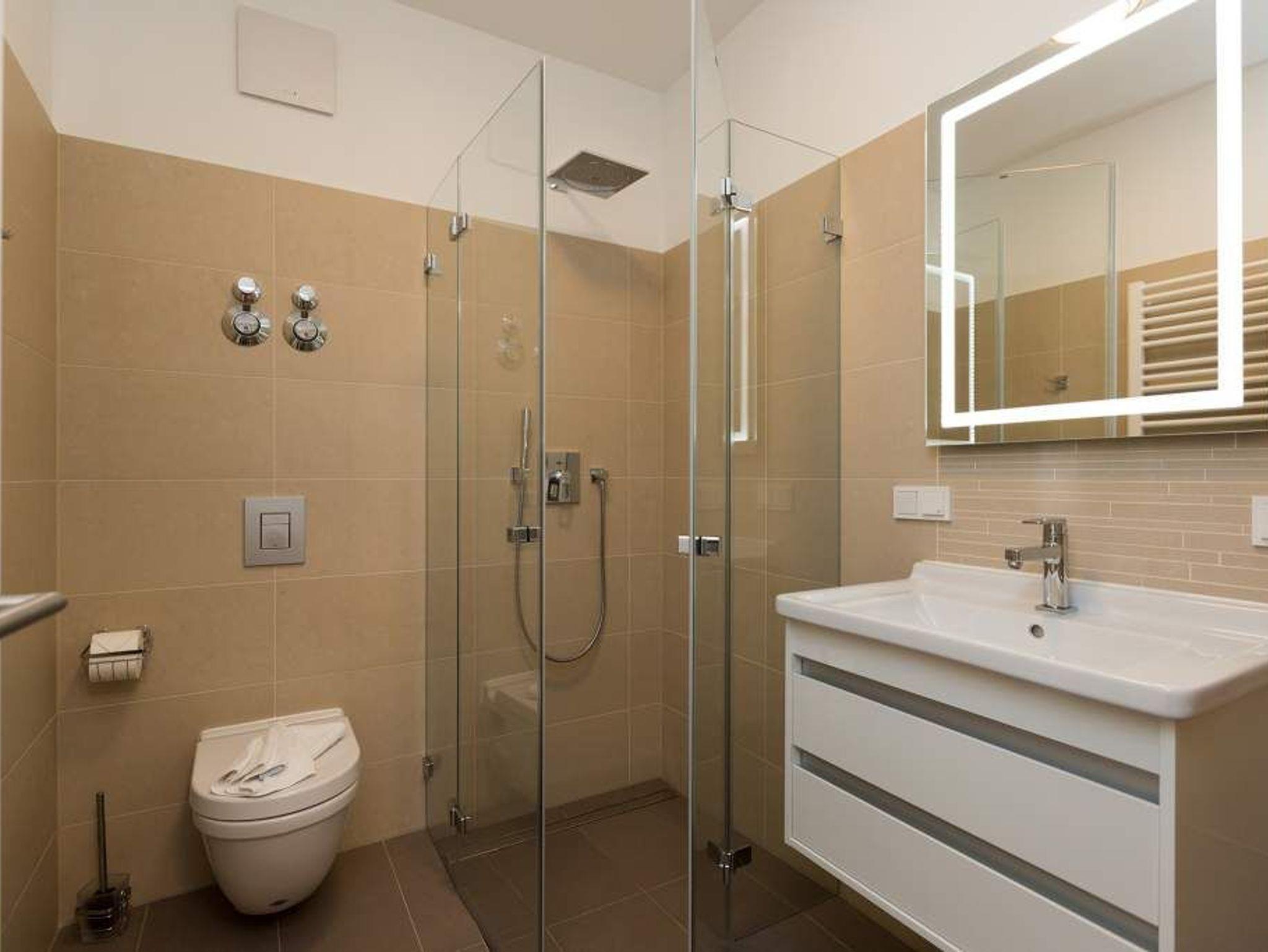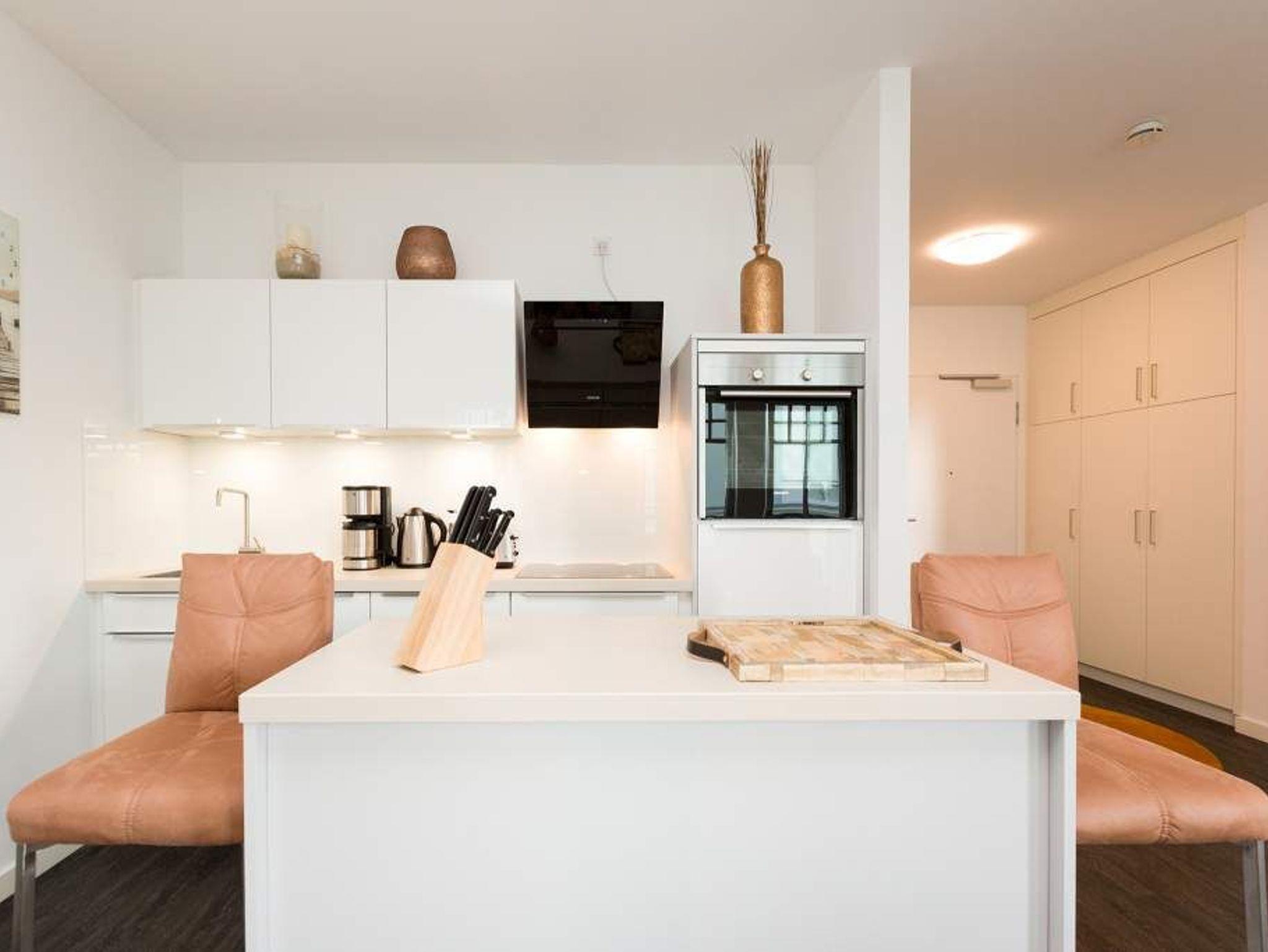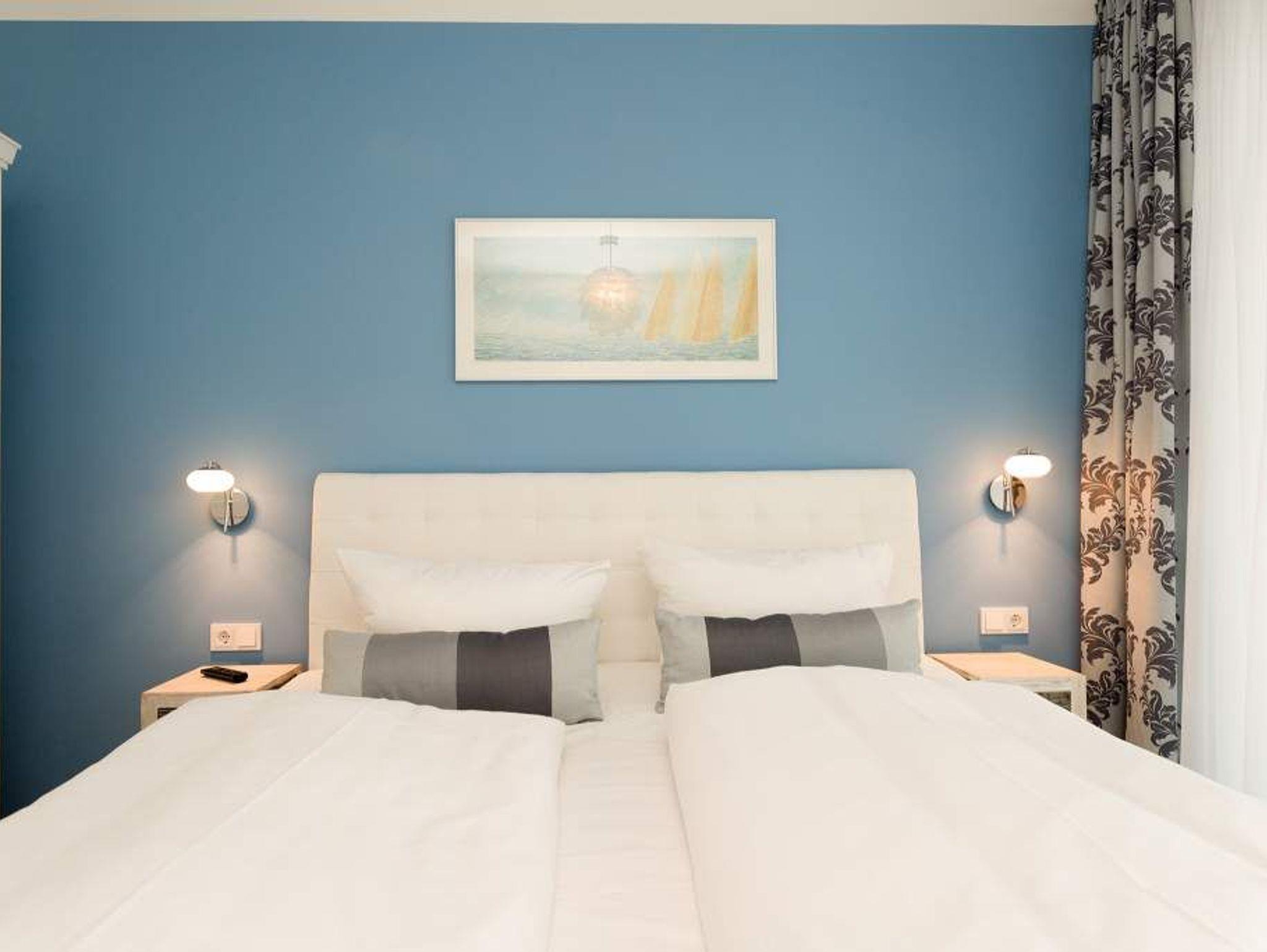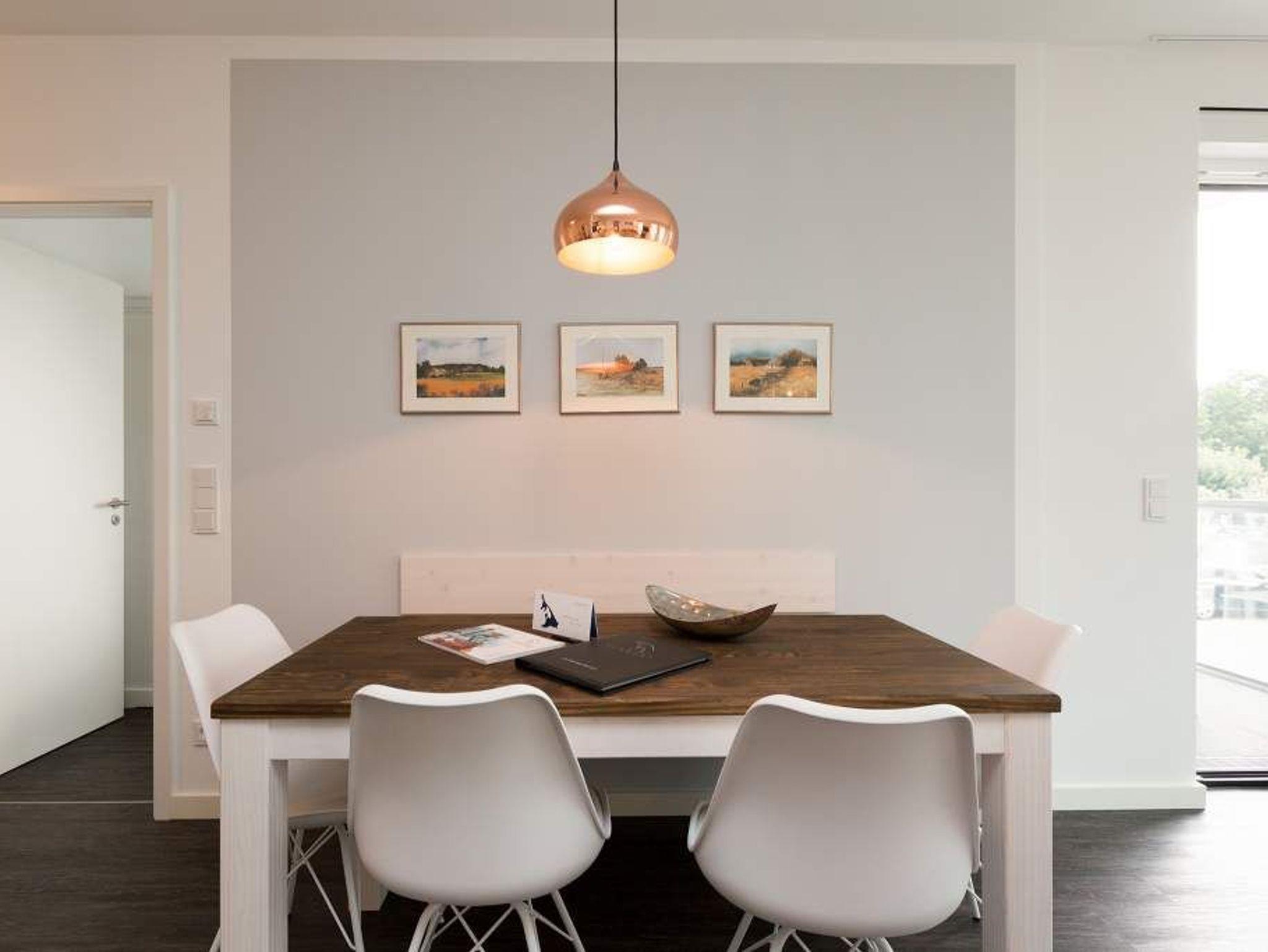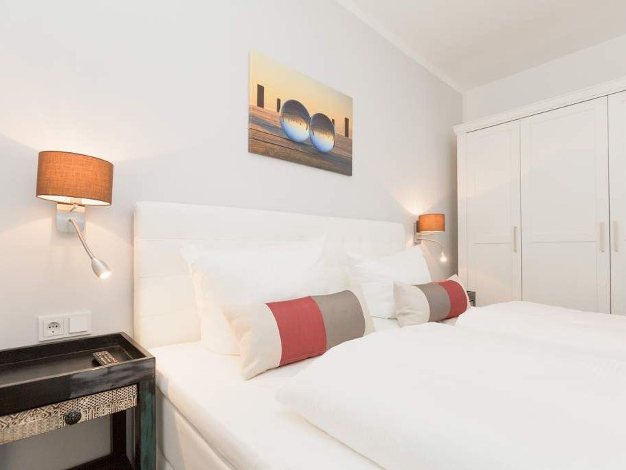 Schon beim Frühstück auf dem schönen Balkon legt sich das Morgenglitzern der Ostsee wie tausend Diamanten in Ihren Tag. Luxus pur. Und das direkt vor der Haustür. Lichtdurchflutet und hell sind die 73 Quadratmeter im ersten Obergeschoss der Villa Westend, machen Ihren Urlaub zu einer exklusiven Auszeit. Hier fühlt man sich angekommen. Ab der ersten Minute. In diesem 3-Zimmer-Appartement können sich vier Erwachsene eine wunderschöne Zeit machen. Dafür sorgt auch das luftige Wohn-Ess-Zimmer. Hier können Sie auf den beiden gemütlichen und kuscheligen Sofas mit Blick auf den großen Flat-TV oder den Elektrokamin einfach mal die Seele baumeln lassen. Denn was gibt es schöneres als dem Flammenspiel zuzuschauen. Der Essbereich wartet mit einem Echtholztisch und stylischen Vintage-Schalenstühlen nur darauf, Ihnen das Beisammensitzen so bequem wie möglich zu machen. Die offene Küche ist komplett ausgestattet. Hochwertige Geräte erleichtern Ihnen den Küchendienst. Ganz modern und angesagt ? die freistehende Arbeitsplatz-Insel mit Keramikplatte. Hier findet das gemütliche Beisammensein seinen Höhepunkt. In den beiden Schlafzimmern gibt es in den Kleiderschränken viel Fläche zur Aufbewahrung. Und die beiden Doppelboxspringbetten (1,80 m x 2,00 m) machen nicht nur beim Schlafen Spaß. Die Wohnung verfügt über zwei Bäder. Wobei das Masterbad ein kleines Highlight besitzt: Eine Panorama-Sauna. Ansonsten bieten beide Bäder je eine Tropen-Dusche, große Waschtische und Toiletten. Für eine exklusive Auszeit sind die Betten bezogen und Handtücher liegen bereit. In der Tiefgarage steht der Stellplatz Nr. 17 zur Verfügung.