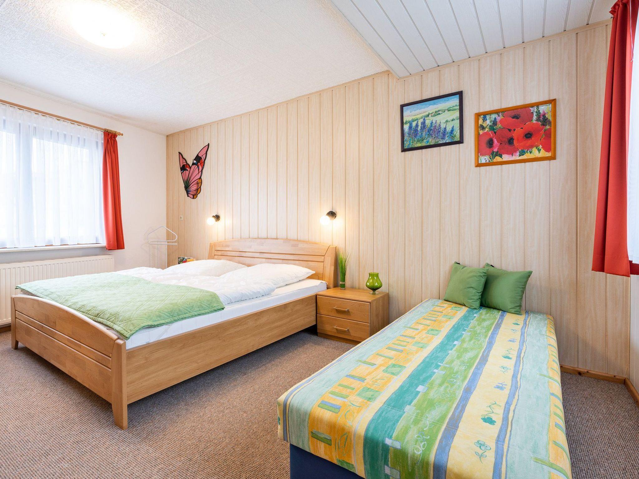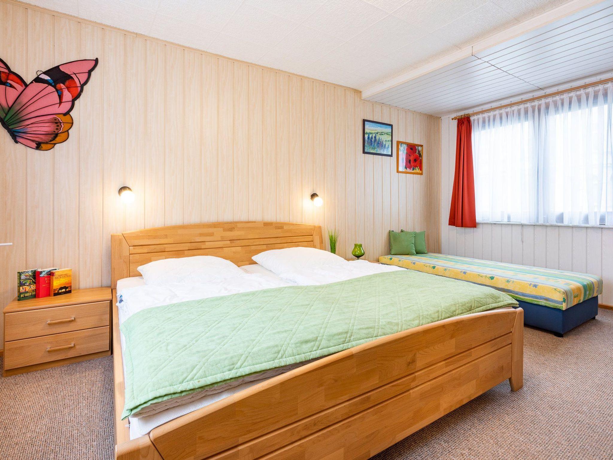 Im Schlafzimmer, welches für maximal 3 Personen ausgelegt ist, haben Sie ein Doppelbett ( 200x200 ) und eine Schlafcouch, einen großen Kleiderschrank, Leselampen über den Betten. Eine Dusche mit Absatz & WC verfügt über Tageslicht und auch ein Föhn ist vorhanden.