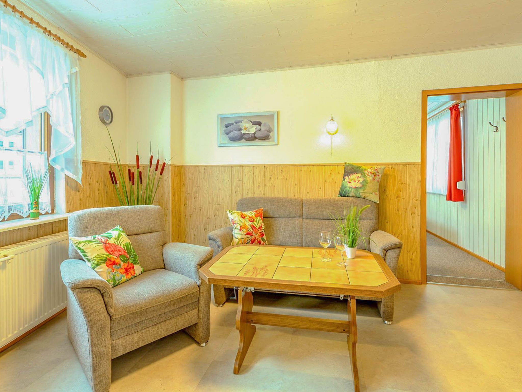 Alle Wohnungen haben separate Eingänge und sind vom tiefergelegenen Hof zu betreten (nicht barrierefrei). Das Grundstück ist umgeben mit Mauer und Zaun. Hier befindet sich eine kleine Gemeinschaftsterrasse, mit Tisch und Sitzgelegenheiten im Sommer, zum Teil überdacht und einer Raucherzone. Das Rauchen in der Ferienwohnung und das Mitbringen von Haustieren sind nicht gestattet.