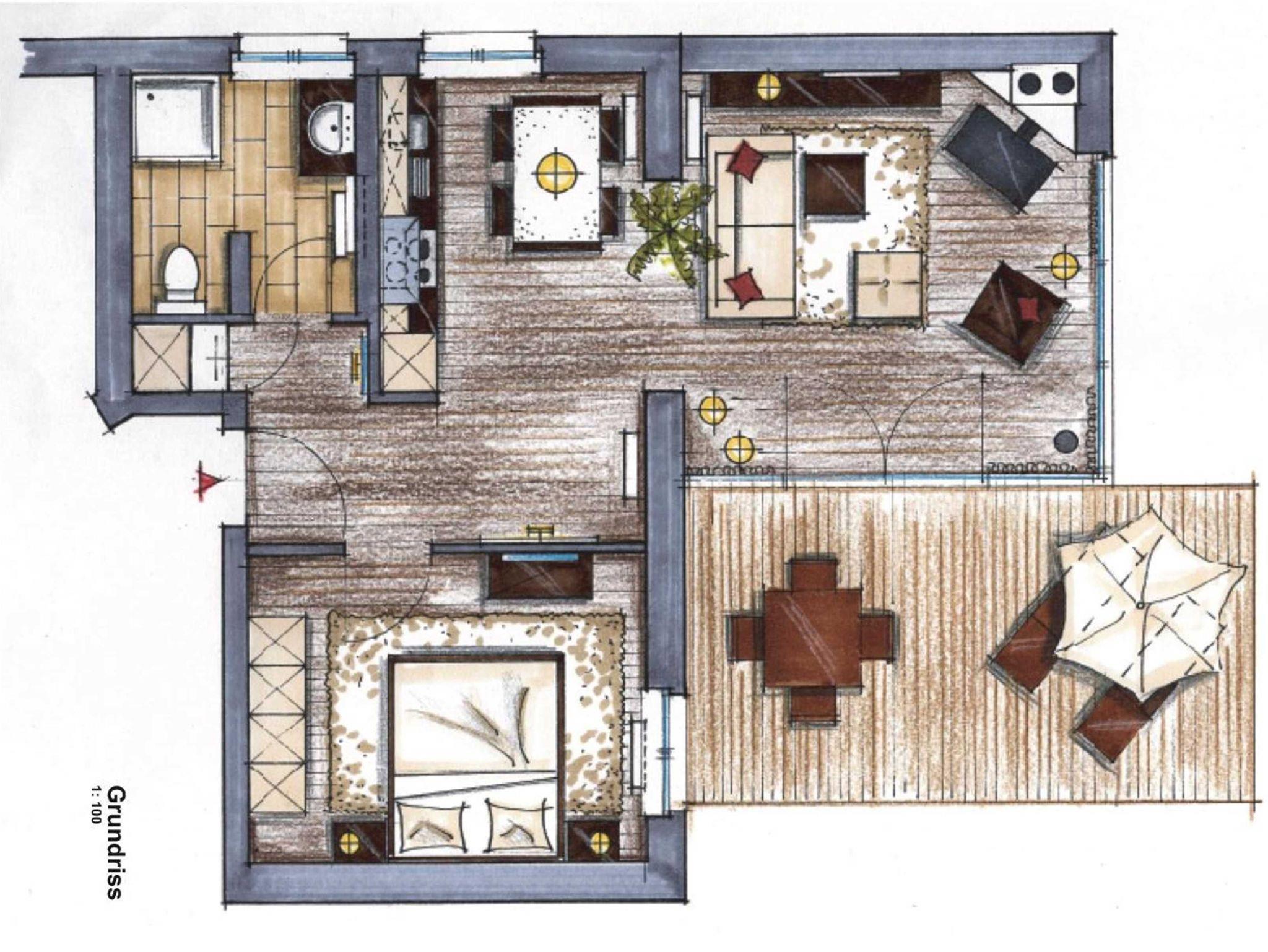 Historische Villa - moderne Ferienwohnung! Eine gekonnt designte Wohnung erwartet Sie im Erdgeschoss des Hauses und bietet Platz für 2 Erwachsene und 1 Kleinkind (bis 3 Jahre) im Reisebett. Der lichtdurchflutetete Wohnbereich mit Kamin und Blick auf die umlaufende Südwestterrasse lädt zum Relaxen ein. Der angrenzende Küchen- und Essbereich ist komplett ausgestattet. Im Schlafzimmer mit Doppelbett ( 1,80m x 2m) finden Sie einen zweiten Flat-TV vor. Ergänzt wird dies durch das Bad mit Dusche und WC. Ein Kinderreisebett kann in dieser Wohnung nur im Wohnbereich aufgestellt werden. Auf Wunsch stellen wir für unsere kleinen Gäste ein Kinderreisebett (ohne zusätzliche Matratze & Bettzeug) und einen Kinderhochstuhl zur Verfügung. Für Ihren Komfort sind die Betten bei der Anreise bezogen und Handtücher liegen bereit. Zu jeder Ferienwohnung steht ein Stellplatz zur Verfügung. Im Keller des Hauses stehen eine Waschmaschine und ein Trockner gegen Gebühr zur Verfügung. Das WLAN-Netz in der Wohnung ist ist kostenlos nutzbar.