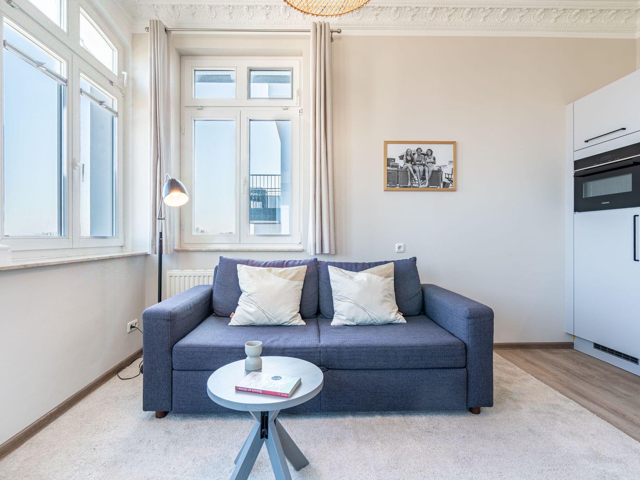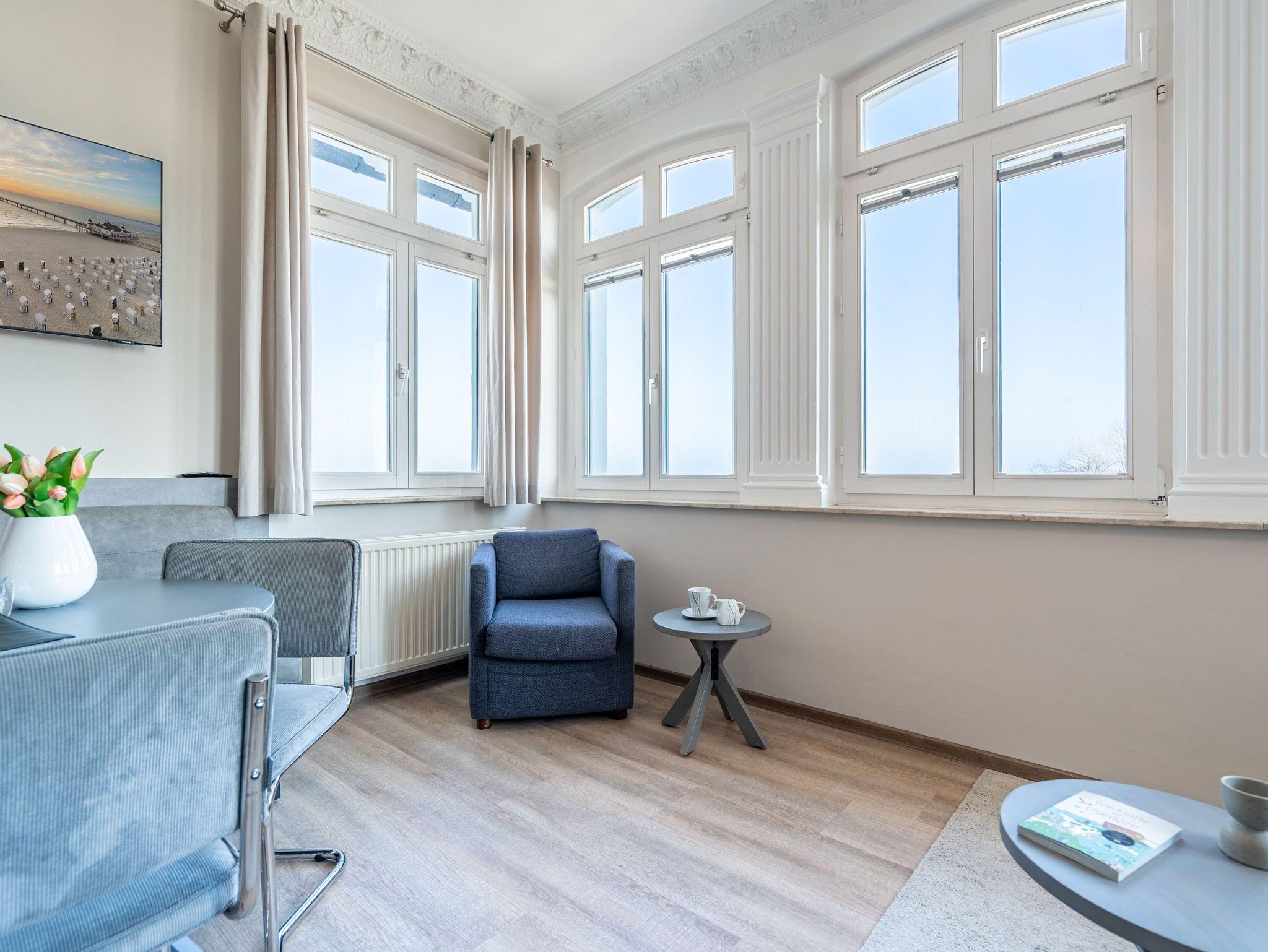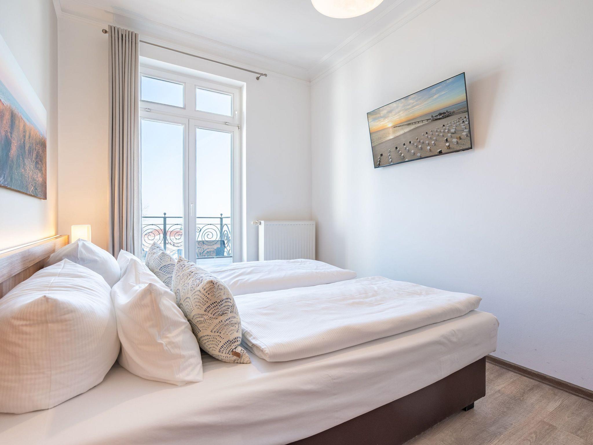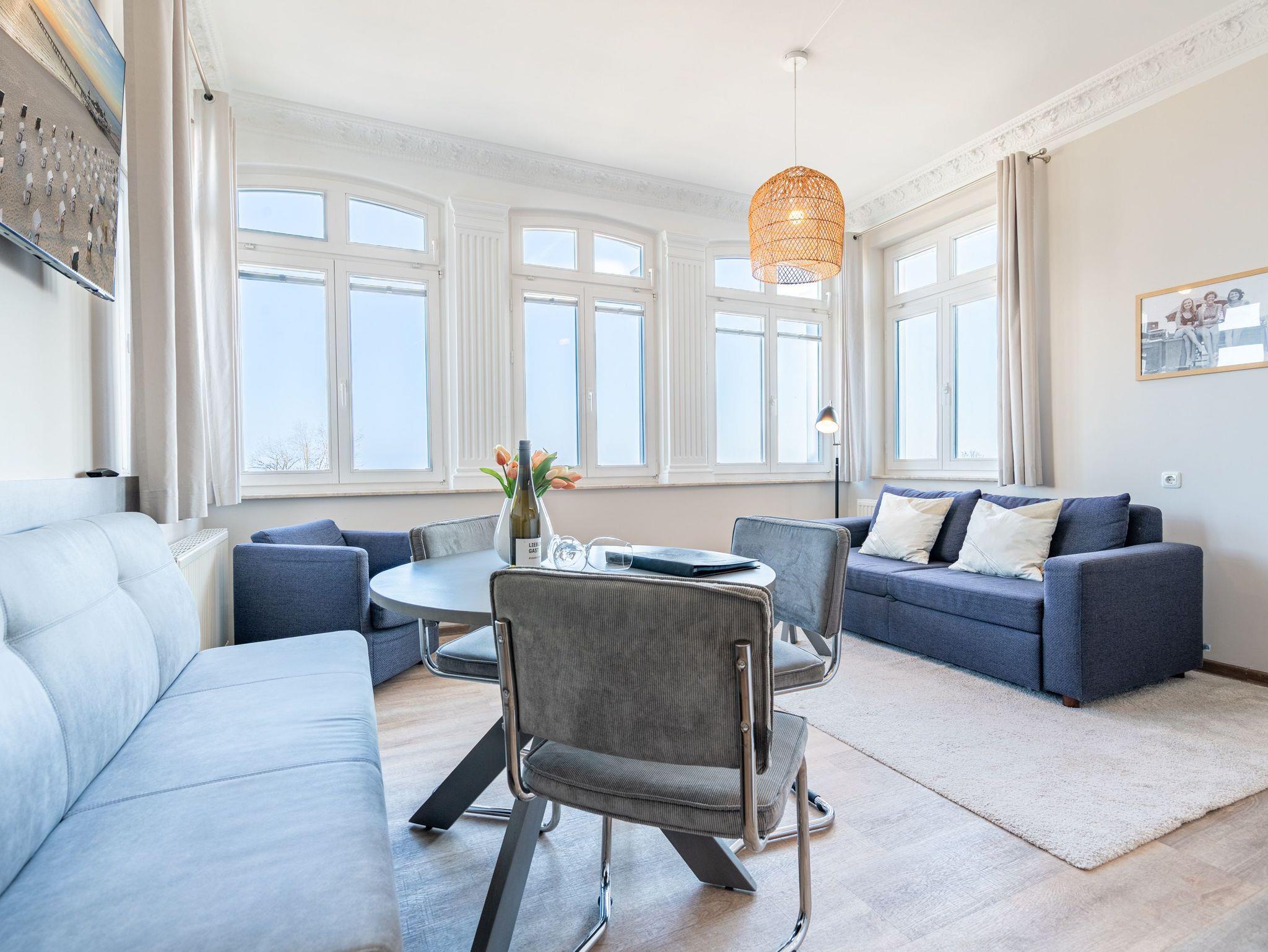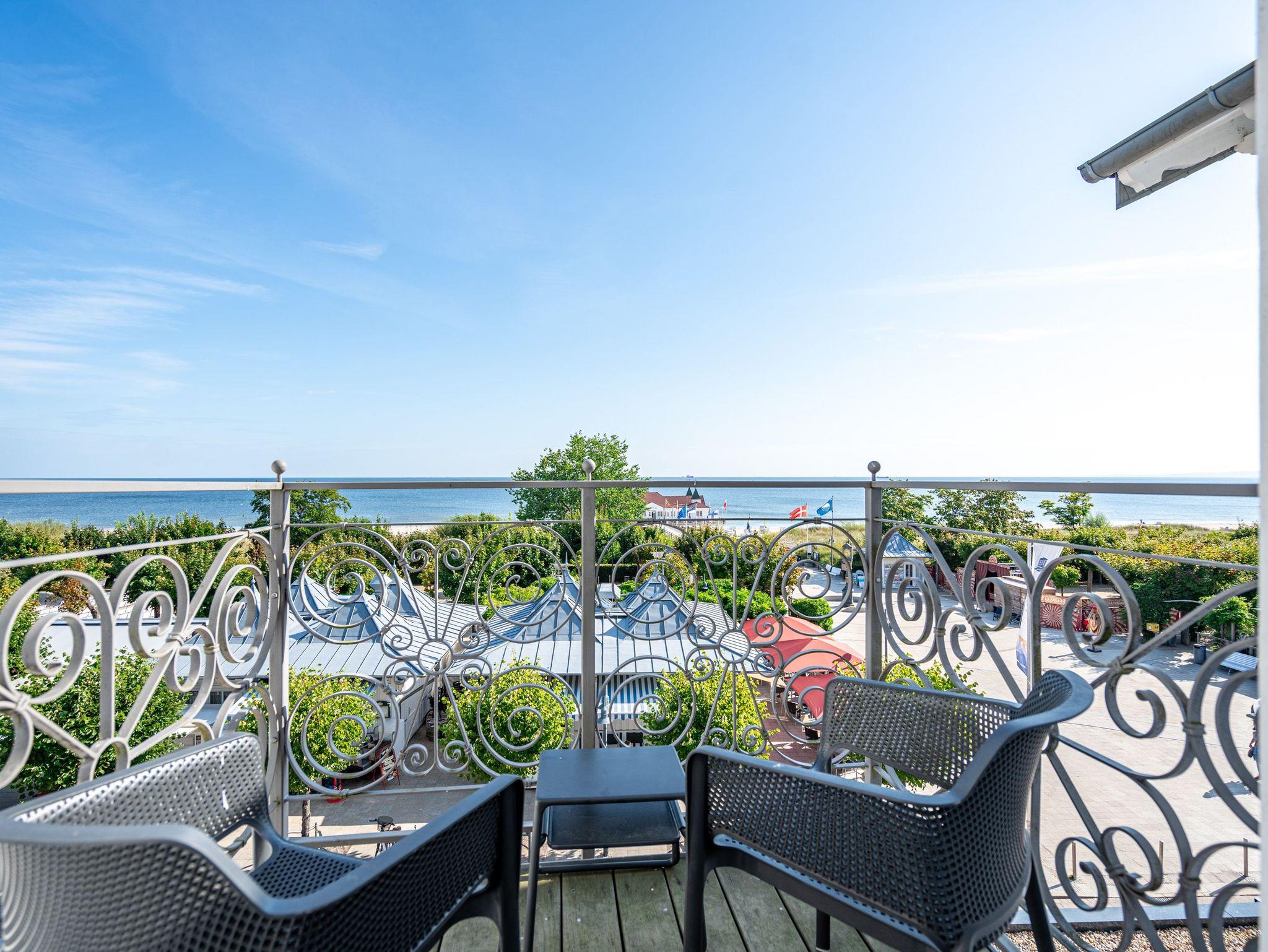 Die Ferienwohnung C12 in der Villa Seedüwel bietet Meerblick, Balkon und moderne Ausstattung direkt an der Ahlbecker Seebrücke.